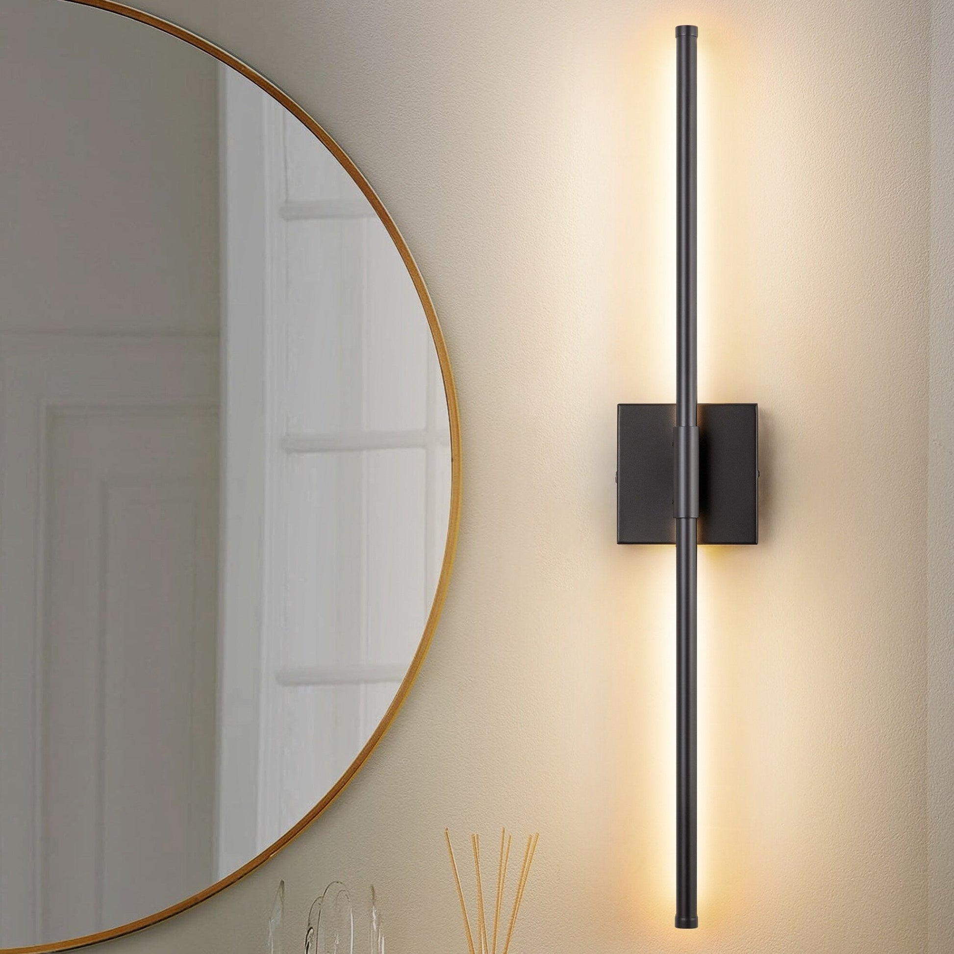 Feature with linear configuration LED lamp body, this gold/ black LED wall light has clean silhouetting and shows sophisticated minimalism, which will bring chic transitional into your space. The dimmable LED bathroom vanity light over mirror can be installed vertical or horizontally according to your need. It is made of metal and silicone strips, not easy to be rust or fall down, can use as a modern artistic decor in your house. Flex your elegant style with this modern linear and vintage LED bathroom wall light. Perfectly for your bathroom, bedroom, make-up mirror, living room, dining room, doorway, den, hallway etc.