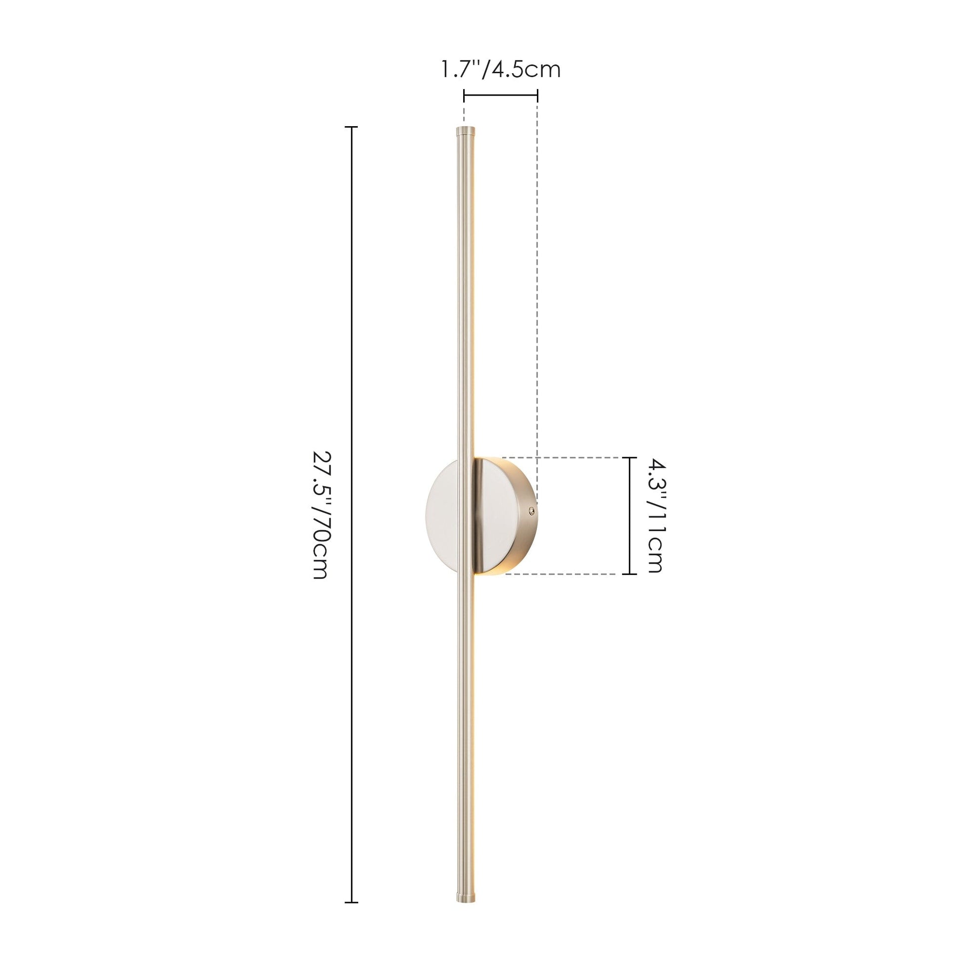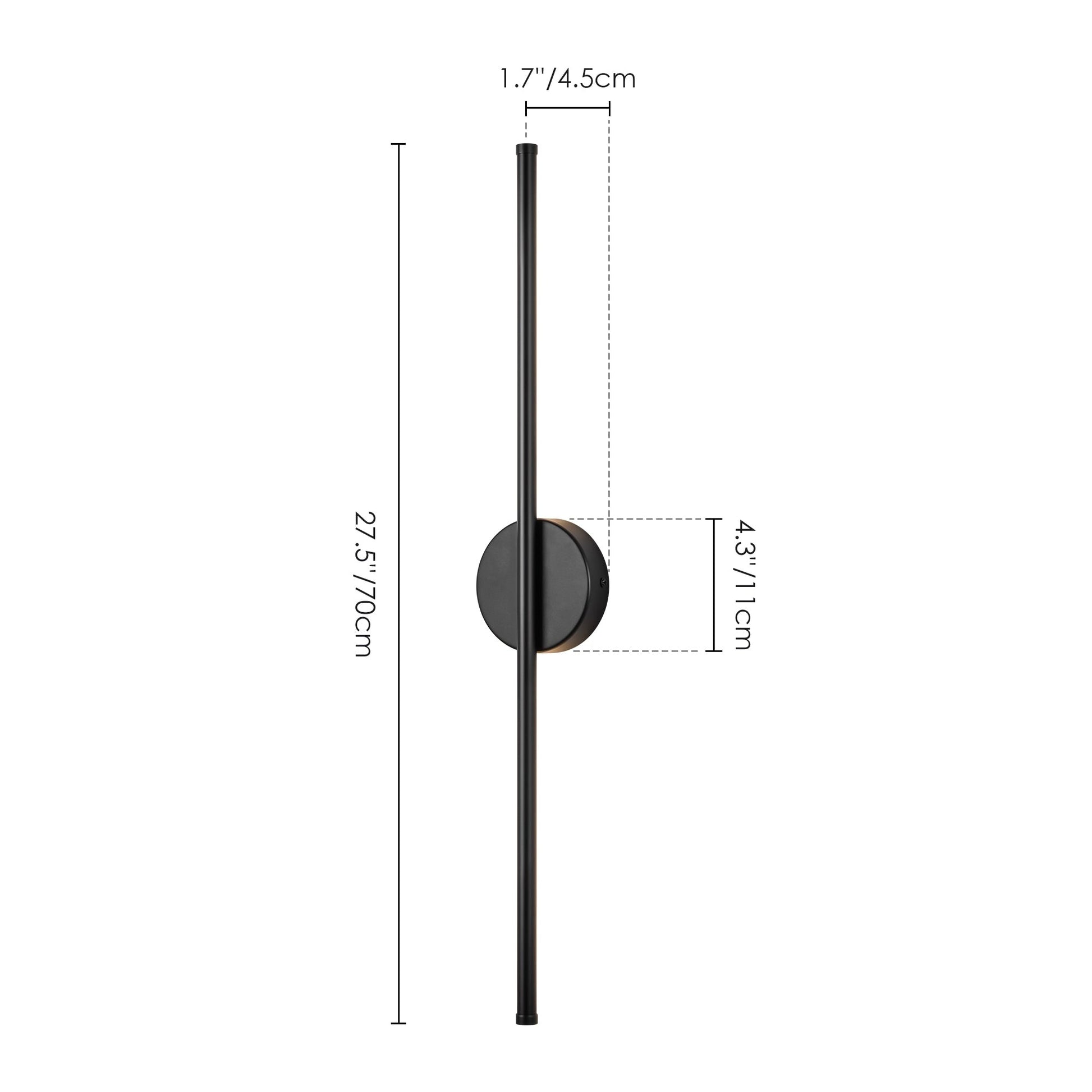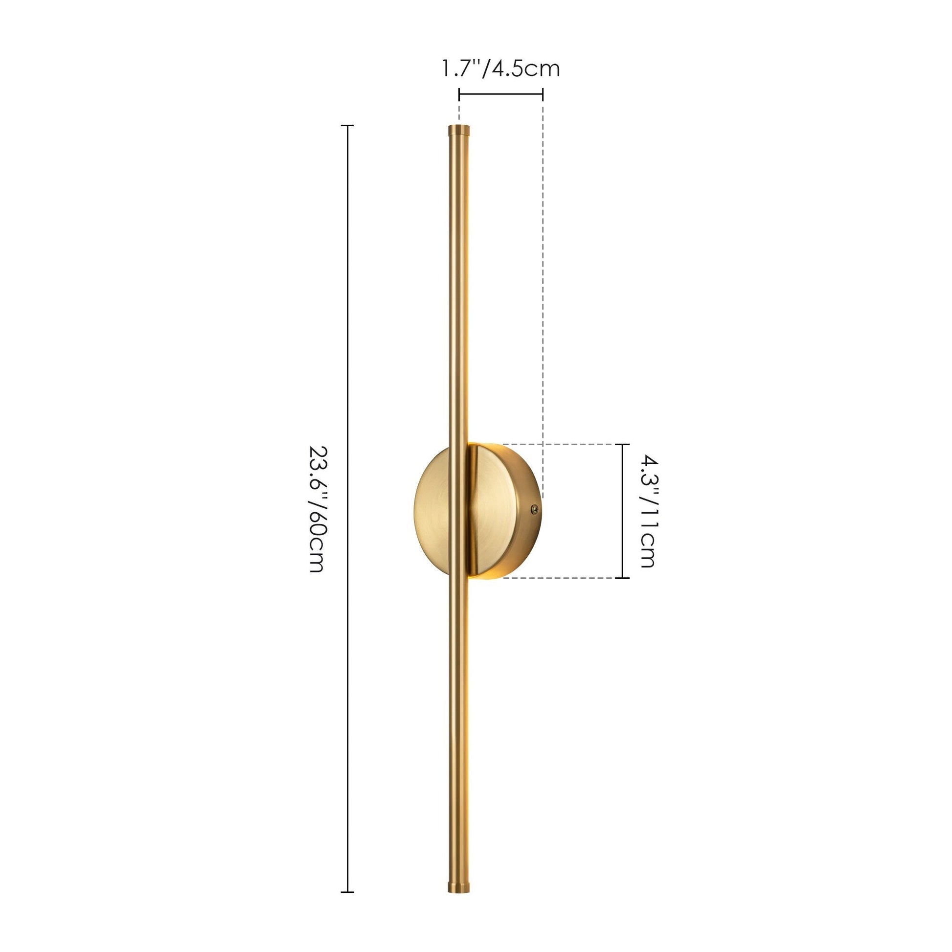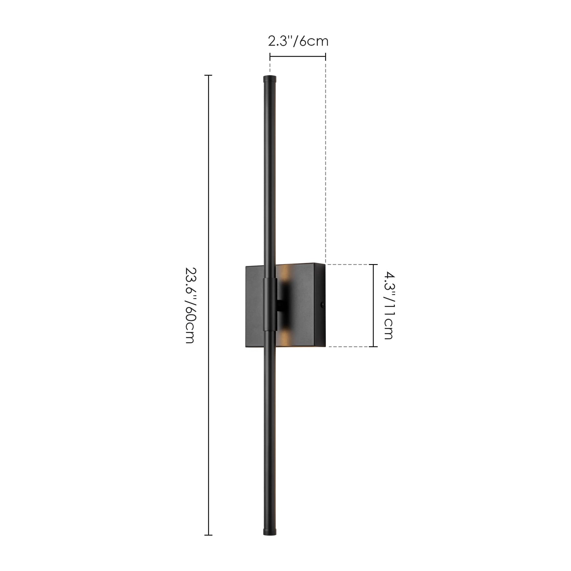 • Fixture: 23.6 in. W x 1.7 in. H x 1.7 in. D/ 23.6 in. W x 2.3 in. H x 2.3 in. D (extend from the wall)