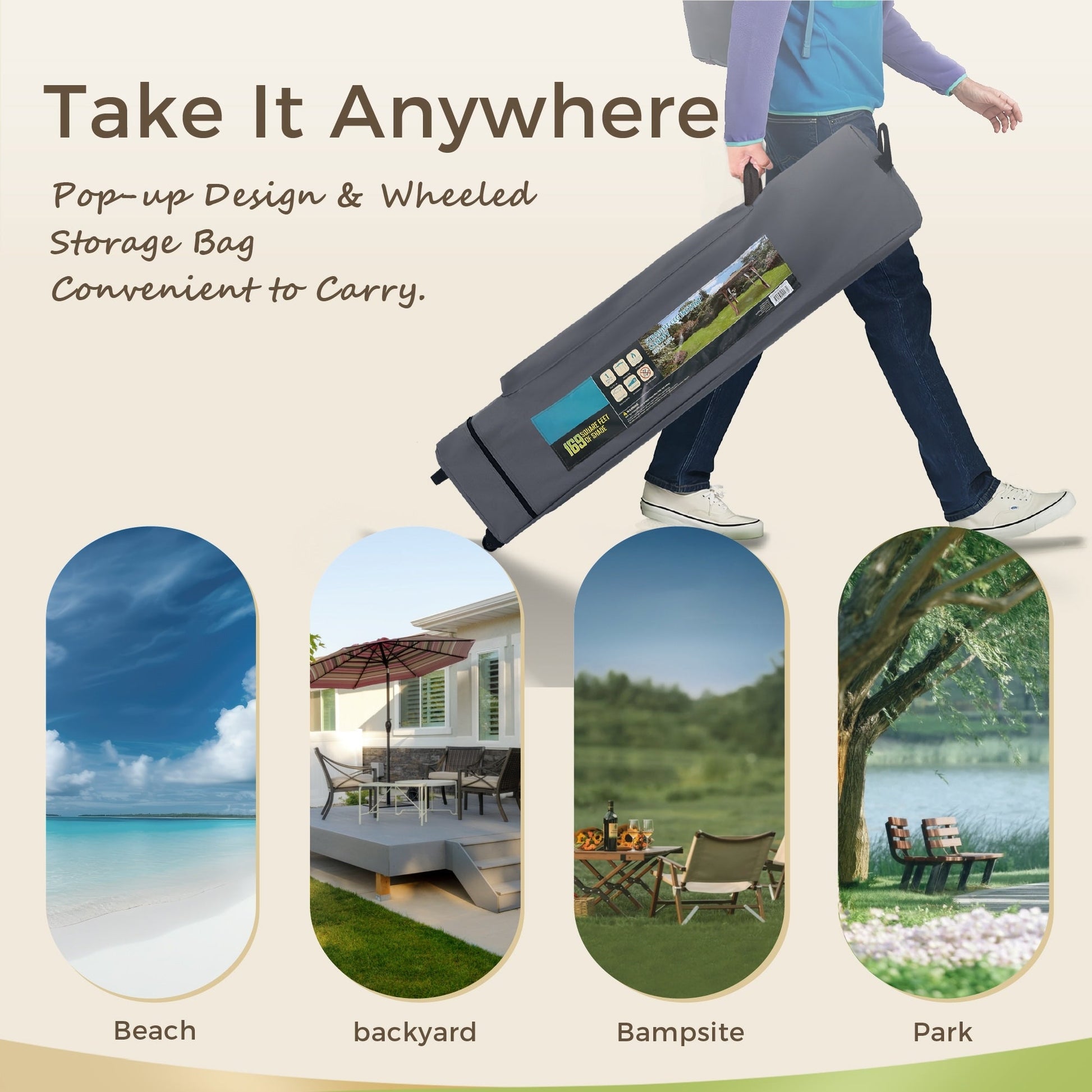 【3 hauteurs différentes disponibles】 : Chaque pied est équipé de boutons anti-pincement. Il suffit de les régler pour obtenir la couverture d'ombre souhaitée. Le cadre en acier thermolaqué offre une résistance et une durabilité optimales.