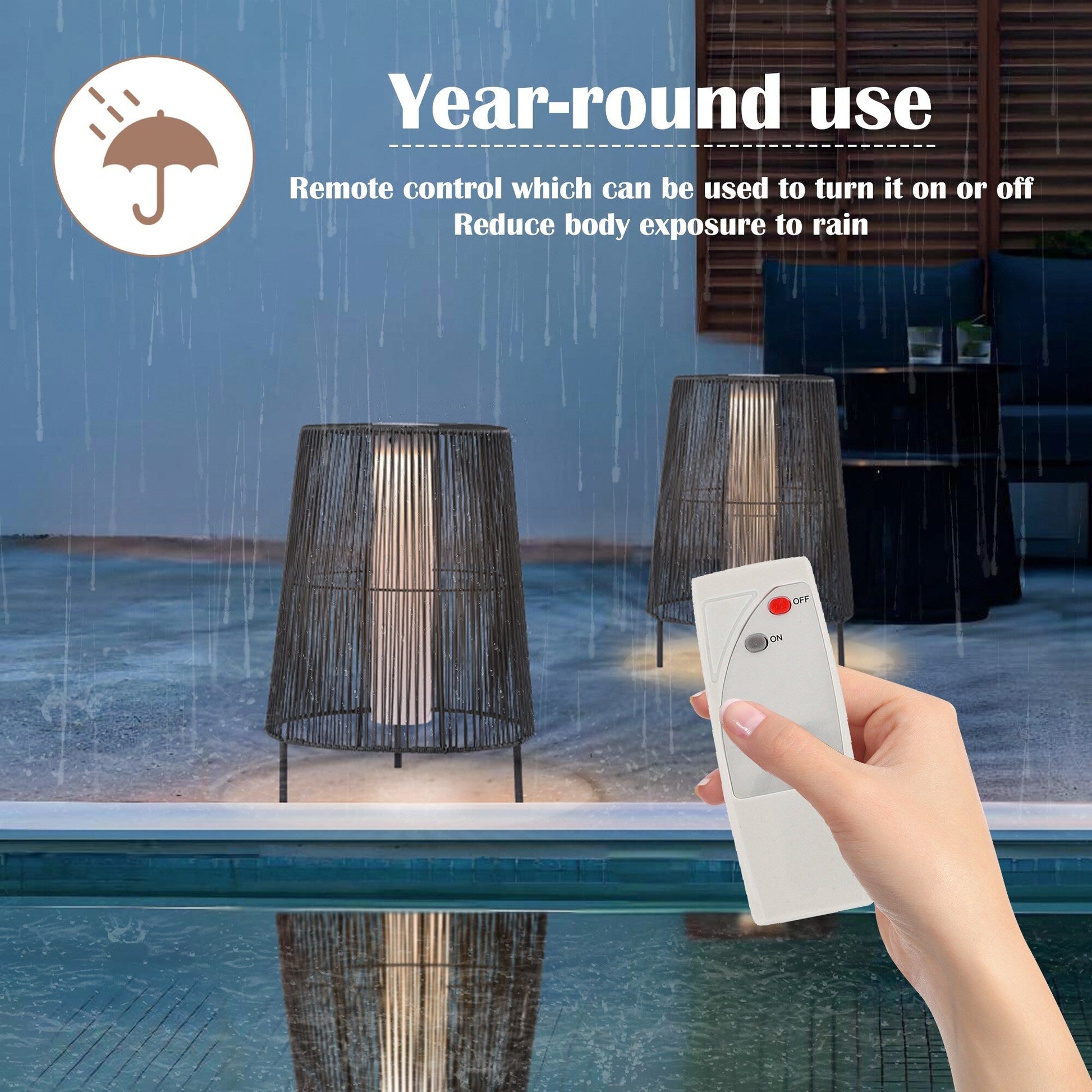 This floor lamp adopts beautiful open weave wicker pattern, creating unique landscape for your garden. Polycrystalline solar panel provide bright and soft glow, gives you a charming and romantic atmosphere for your patio, path, deck, garden at night. Our resin wicker handwoven on the e-coating and powder coated steel frame, combined with IP65 rated waterproof design, providing more durability and extreme resistance to harsh outdoor conditions, such as UV rays, rain, and snow. With 8-12 hours of charging in direct sunlight, your garden lights will shine for 6-12 hours (specific time charging efficiency to decide). the built-in sensor can turn the light on automatically at dusk, offering you a warmer and brighter glow well into the night. This solar lantern height 27 inches, the large size fulfills your demand. It can be used as an exquisite night lighting decoration lamp, also perfect as a gift for your family and friends.