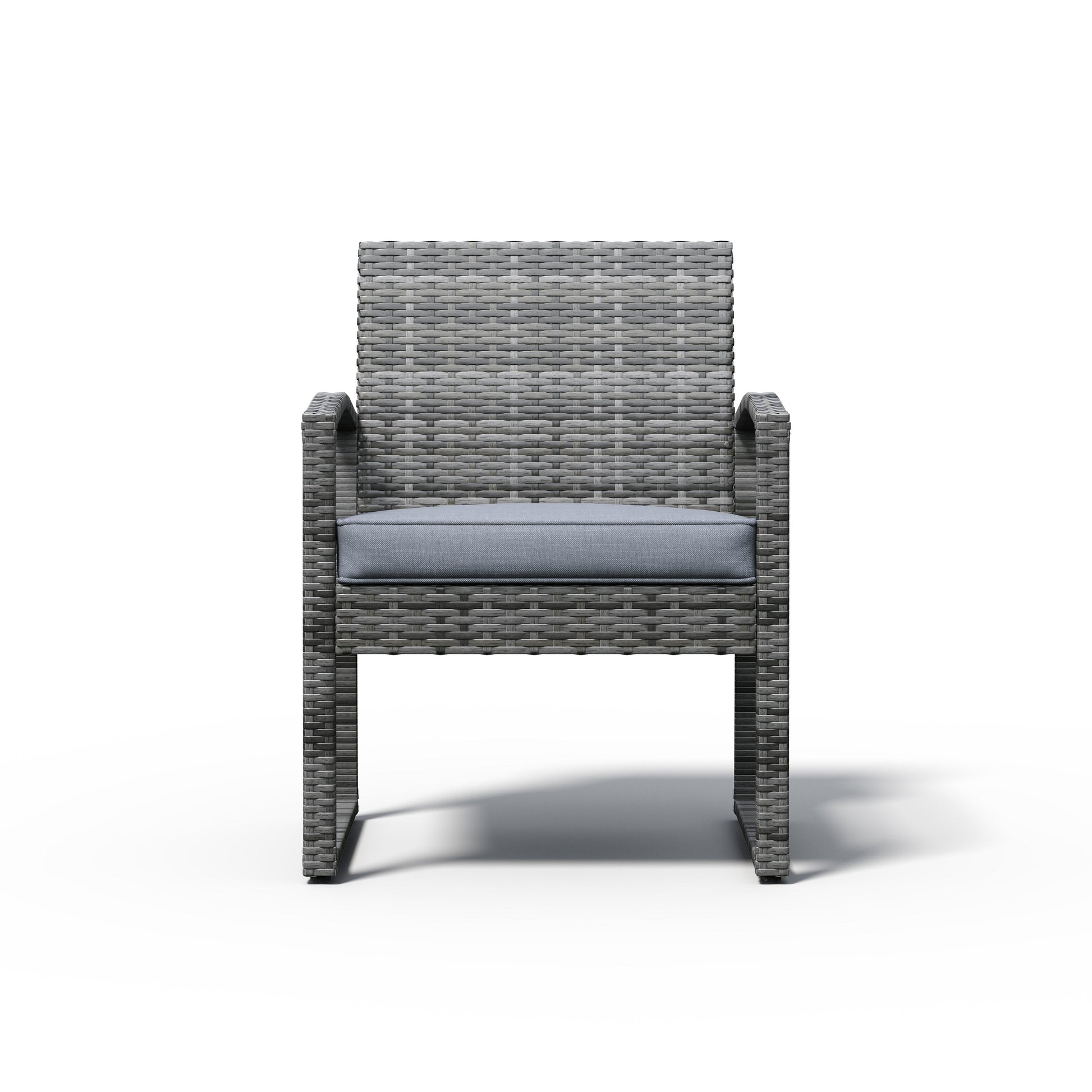 Relax in style with this 3-pc. Outdoor Cushioned Wicker Chat Set. The steel frame, polyethylene wicker, sponge poly foam, and glass construction of this set ensure long-lasting durability and comfort. The set includes two cushioned chairs and a coffee table, perfect for outdoor lounging. The thick, sponged cushions are soft and washable for easy maintenance. The rust-resistant steel and UV-resistant PE rattan construction make it ideal for any outdoor environment. With ergonomic, curved armrests for supreme support and tempered silk print glass table top, this set is perfect for any outdoor gathering.