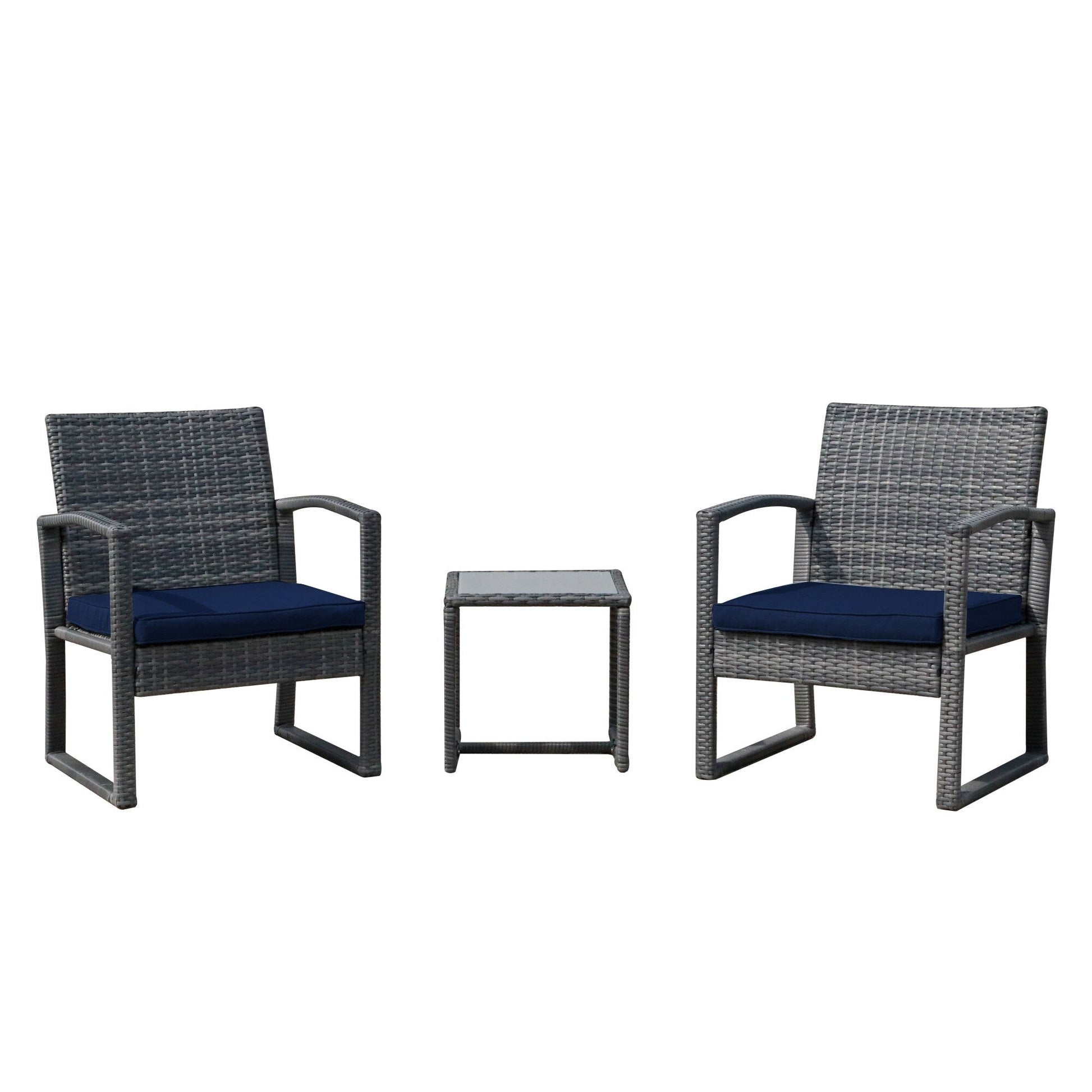 - 3-piece set includes 2 chairs and 1 coffee table (pillows not included)