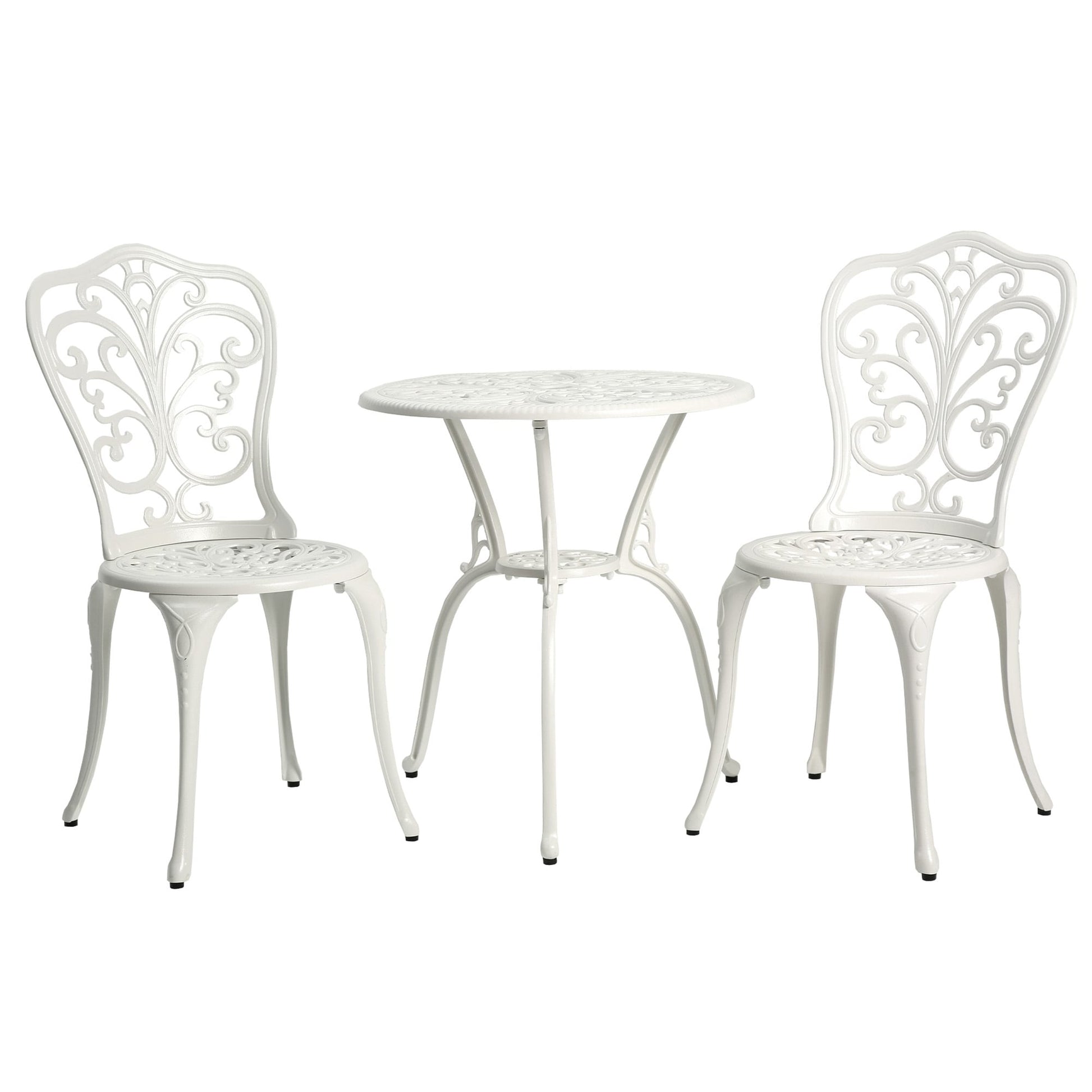 Profitez de votre espace extérieur avec cet ensemble de table bistrot 3 pièces en aluminium, orné de magnifiques sculptures de papillons et de finitions en cuivre antique. Fabriqué en fonte d'aluminium robuste avec traitement antirouille et résistant aux intempéries, cet ensemble est adapté à une utilisation par tous les temps et résiste à l'oxydation. Grâce à son trou pour parasol intégré de 4,4 cm, vous pouvez y ajouter un parasol de 2,3 m (non inclus) pour vous protéger du soleil et de la pluie. Facile à nettoyer et à assembler, cet ensemble est parfait pour décorer votre cour, votre piscine, votre terrasse, votre jardin ou votre véranda.