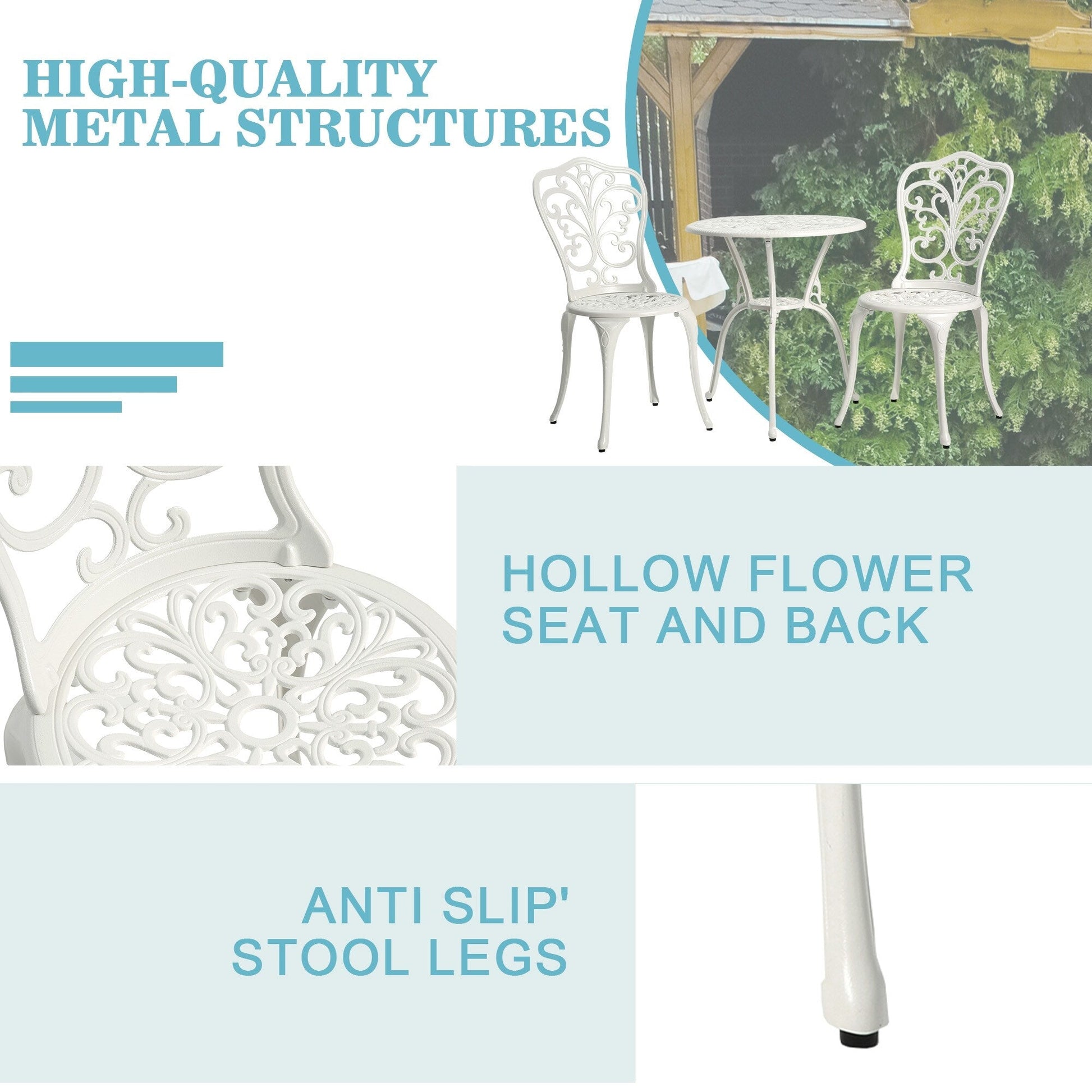 - Fonte d'aluminium durable avec traitement antirouille et résistant aux intempéries