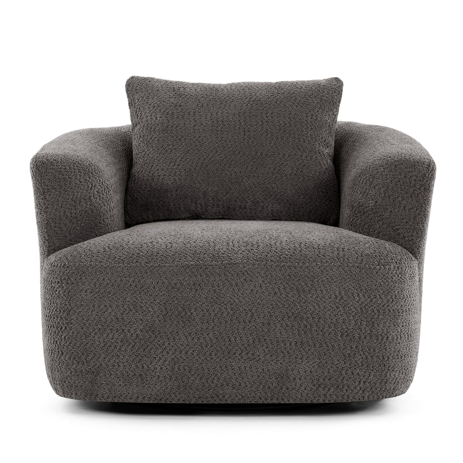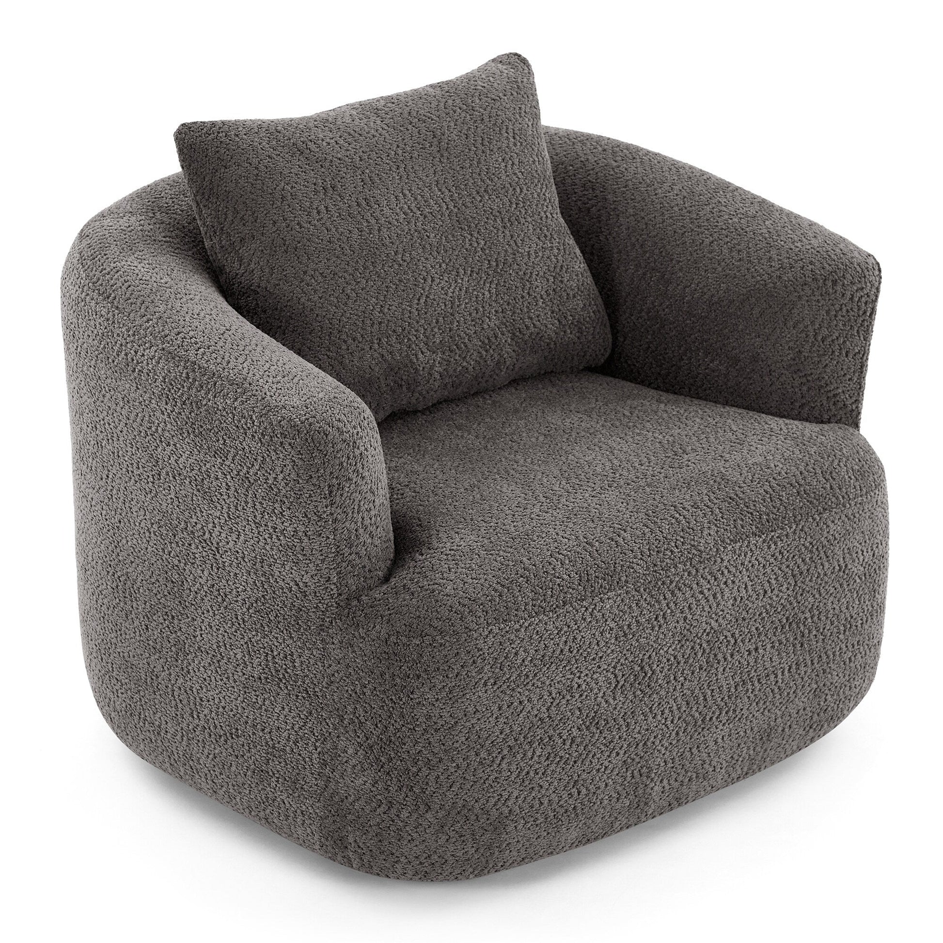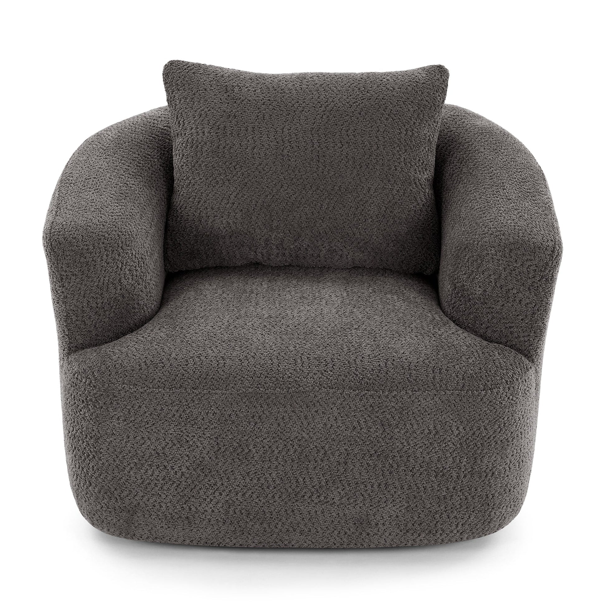 Fauteuil pivotant à 360°, fauteuil d'appoint Boucle 38,2" avec coussin décoratif, fauteuil rembourré en forme de tonneau avec accoudoirs incurvés