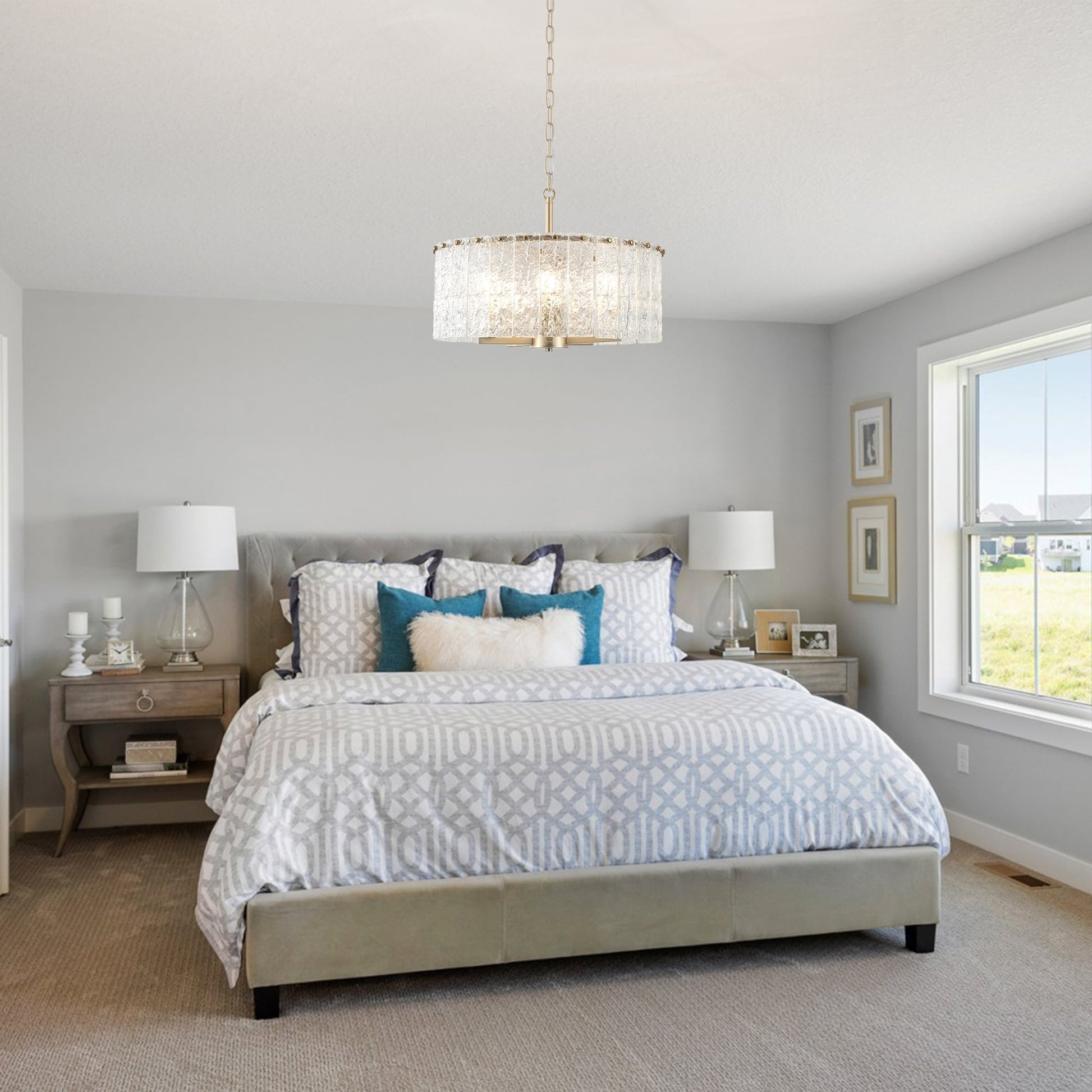 • Design élégant : doté d'une forme de tambour sophistiquée et d'accents en cristal, ce luminaire ajoute une touche de luxe à n'importe quel espace.