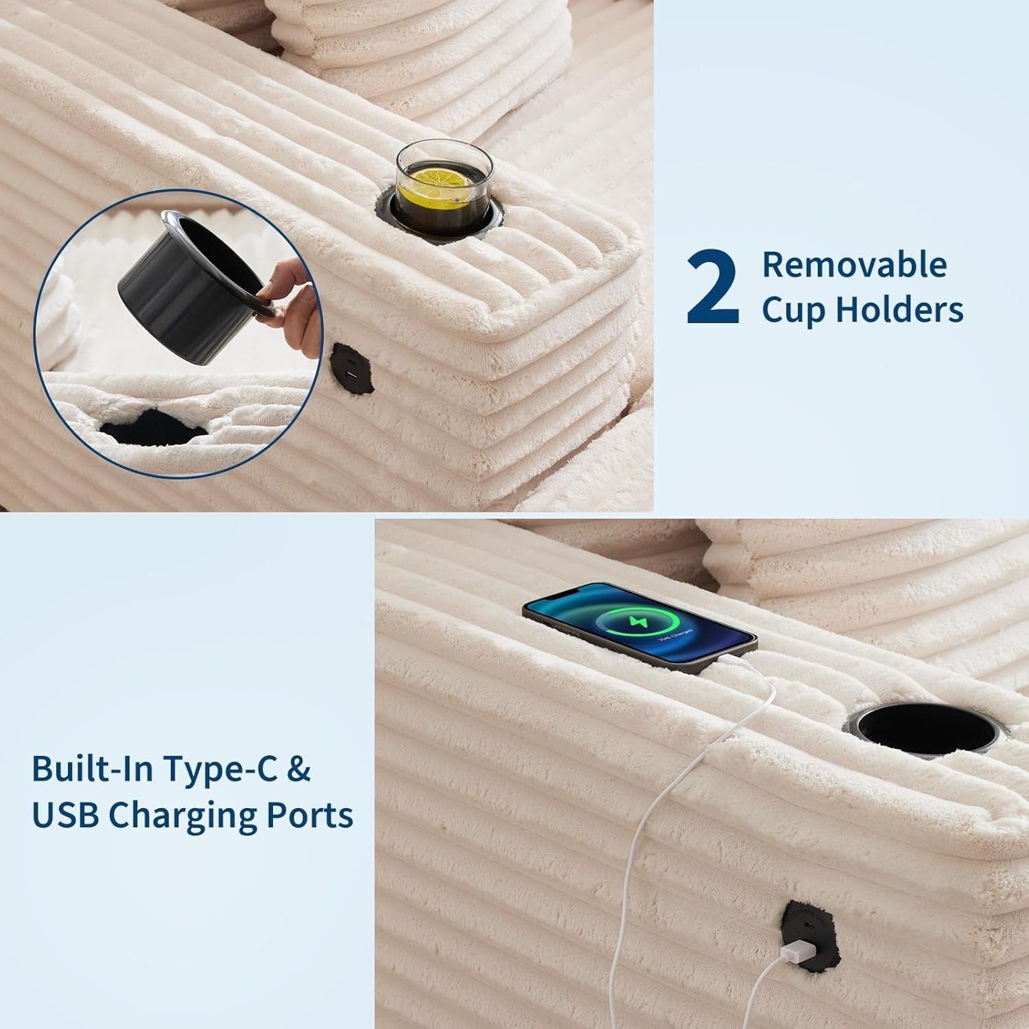 [Confort et espace détente] Profitez d'une détente exceptionnelle avec cette chaise longue surdimensionnée, dotée d'une largeur généreuse de 137 cm et d'une profondeur d'assise de 119 cm. Idéale pour la lecture, la sieste ou les soirées cinéma, elle offre un espace généreux pour vous et vos proches afin de vous détendre confortablement. Son design spacieux garantit une assise haut de gamme, ce qui en fait un ajout idéal aux salons, chambres et espaces de divertissement. [Revêtement en velours côtelé durable et de qualité supérieure] Fabriqué en velours côtelé respirant de haute qualité, ce canapé-lit allie luxe et durabilité. Sa texture douce procure une sensation de confort, tandis que la mousse haute densité et les ressorts ensachés à l'intérieur maintiennent la forme du fauteuil et offrent un soutien moelleux. Que vous jouiez, vous détendiez ou vous reposiez, le revêtement haut de gamme offre un confort et un style durables. [Soutien ergonomique complet] Conçue pour votre confort, cette chaise longue surdimensionnée est dotée d'une assise profonde et ergonomique qui soutient tout votre corps. Ce fauteuil favorise la détente pour lire, méditer ou se détendre après une journée bien remplie. Sa structure favorise une posture saine et réduit la fatigue, vous procurant une sensation de fraîcheur et de confort même en utilisation prolongée. [Pratique et pratique] Restez connecté sans effort grâce aux ports de charge intégrés au fauteuil convertible, qui vous permettent de recharger vos appareils tout en restant allongé. Les porte-gobelets amovibles sont pratiques et vous permettent de savourer vos boissons préférées sans avoir besoin de meubles supplémentaires. Ces fonctionnalités bien pensées optimisent votre détente, idéales pour lire ou regarder la télévision. [Assemblage simple et design moderne et élégant] Cette chaise longue moderne est facile à installer et à assembler, vous permettant de vous détendre rapidement. Son design élégant et contemporain s'intègre à une variété de styles d'intérieur, apportant sophistication et confort à tout espace. Que ce soit dans un salon, un bureau ou une chambre, c'est une solution d'assise élégante et pratique.