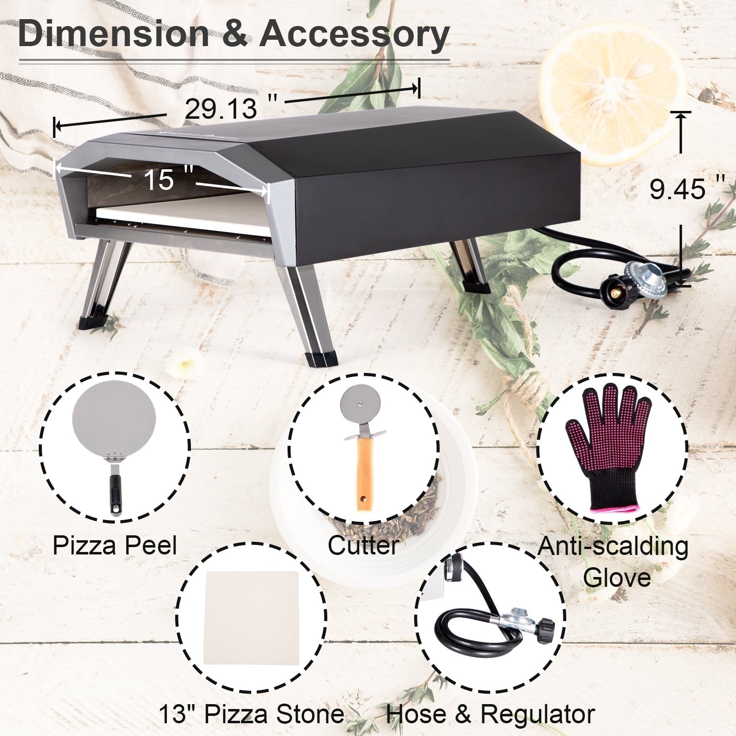 - Grill Accessory Included: Comes with a 13' x 13' pizza stone, a scald-proof glove, an SS430 pizza peel, an SS430 cutter& a pellet peel.