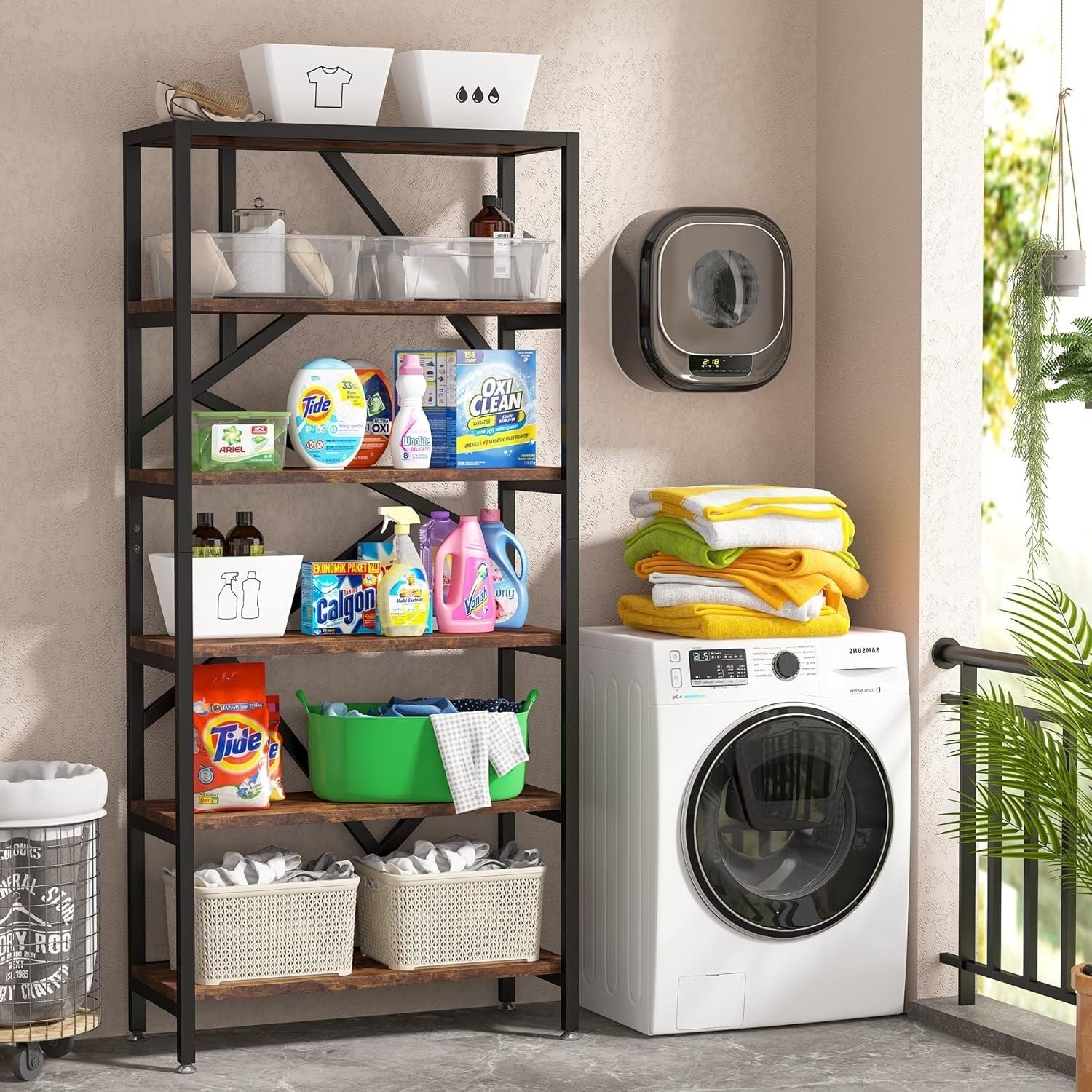 Bibliothèque industrielle de 71 pouces, étagère à 6 étagères, étagère de rangement ouverte et autonome, étagère en bois pour chambre, bureau, salon