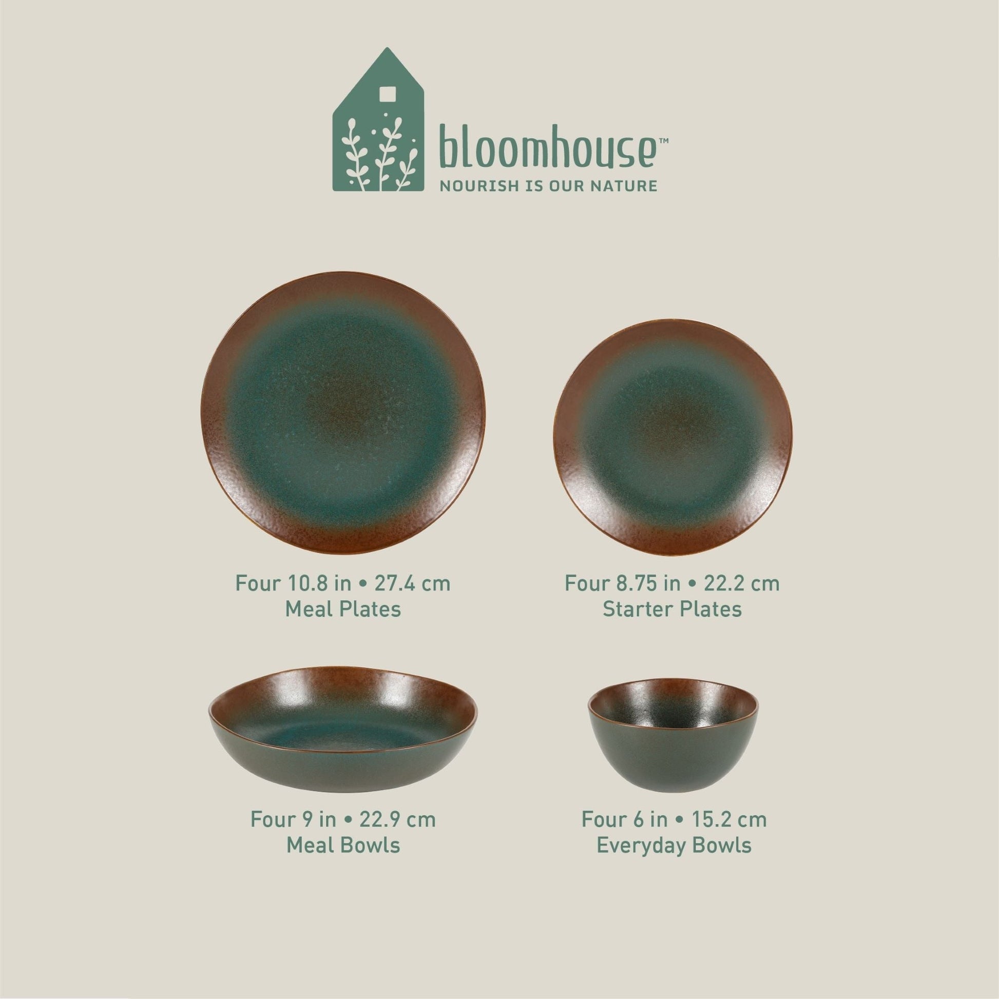 Bloomhouse Palermo Sun Service de table 16 pièces en grès émaillé réactif avec assiettes et bols à double bol