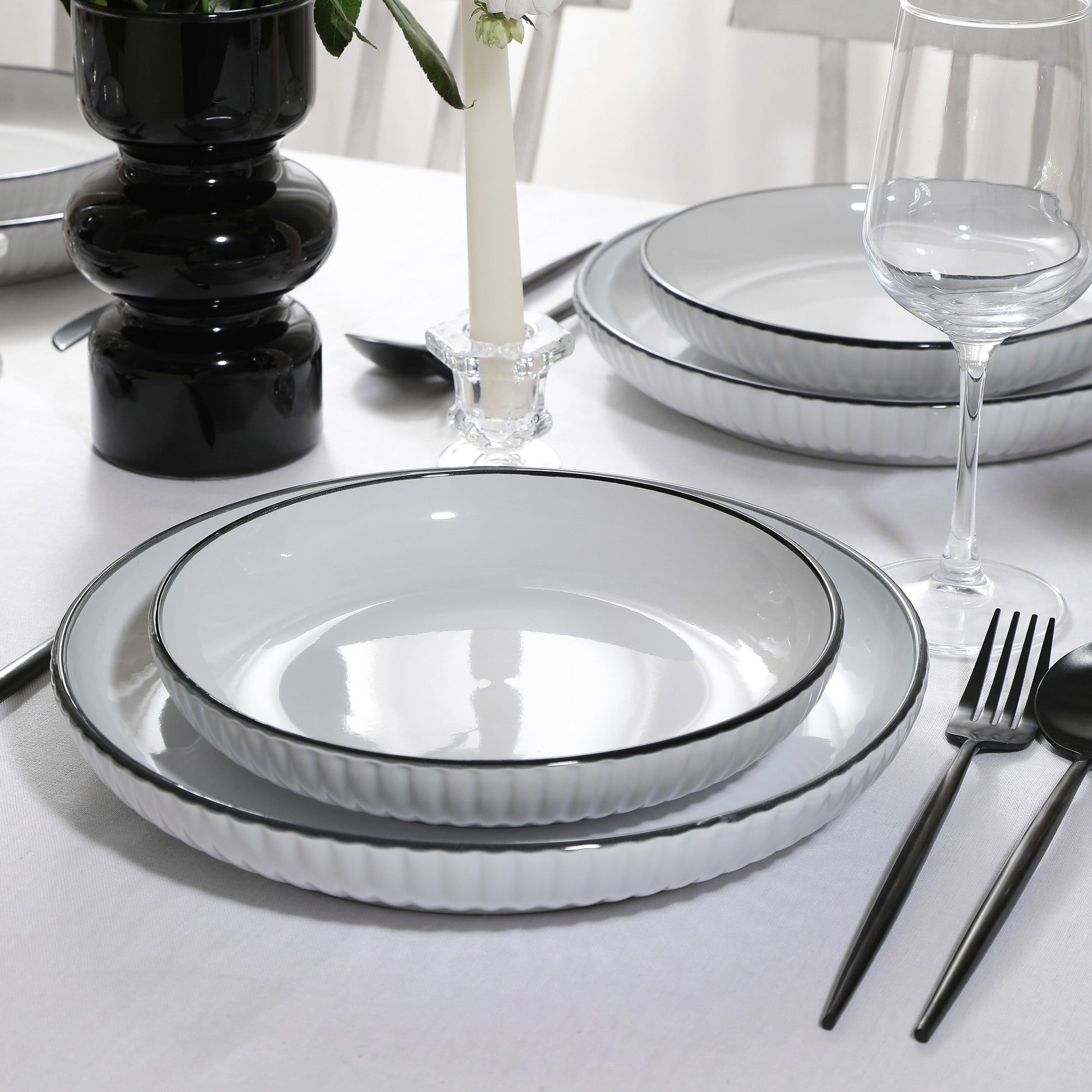 - Bord blanc-noir : Le grès blanc est classique, tandis que le bord noir fin ajoute une touche d'intrigue et d'intérêt visuel.