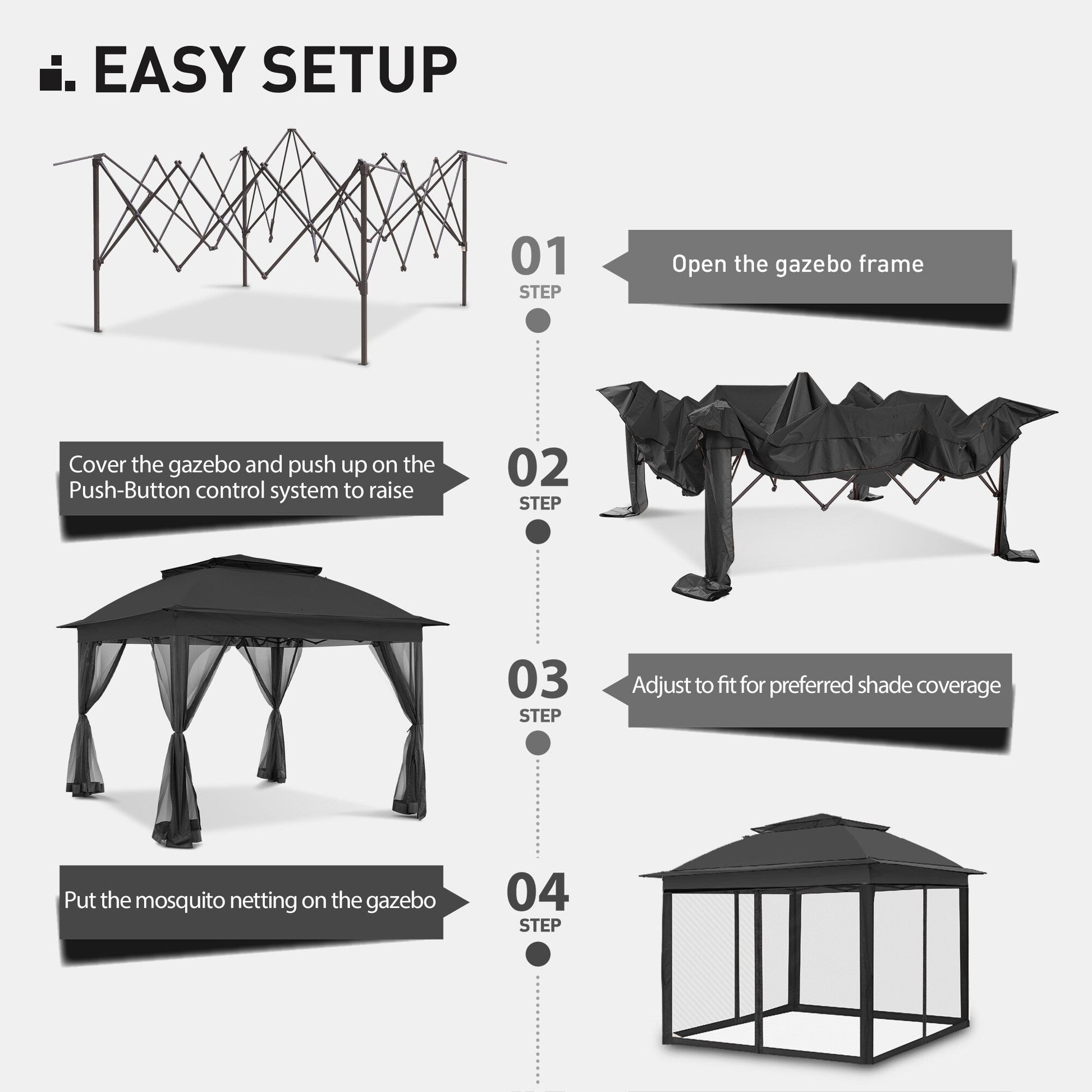 - INSTALLATION FACILE ET SANS EFFORT - La tonnelle pliante COZYWOR est dotée d'un mécanisme breveté « dépliage par simple pression » et de poteaux robustes en acier thermolaqué à hauteur réglable, pour une installation rapide et sans tracas (consultez le manuel : le montage prend moins de 10 minutes). Il est conseillé de travailler à deux.