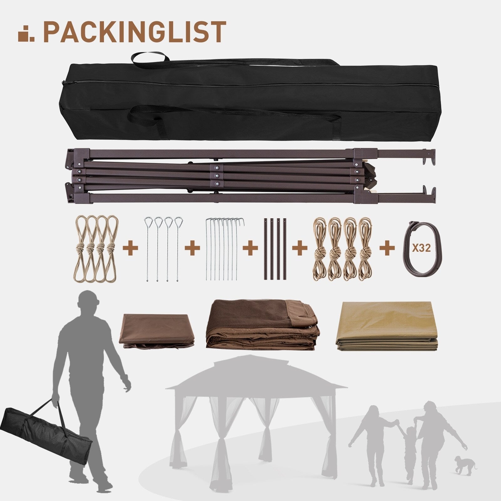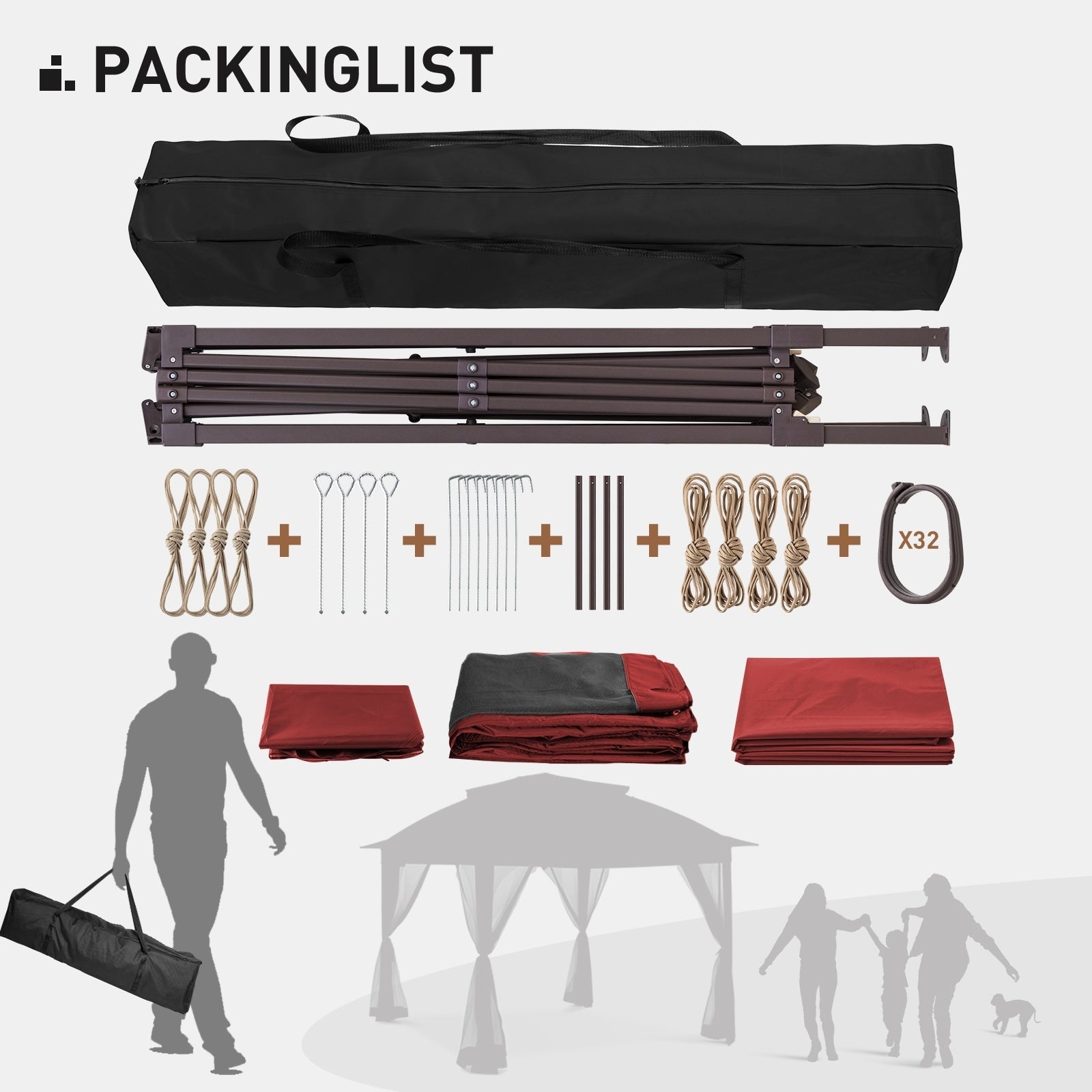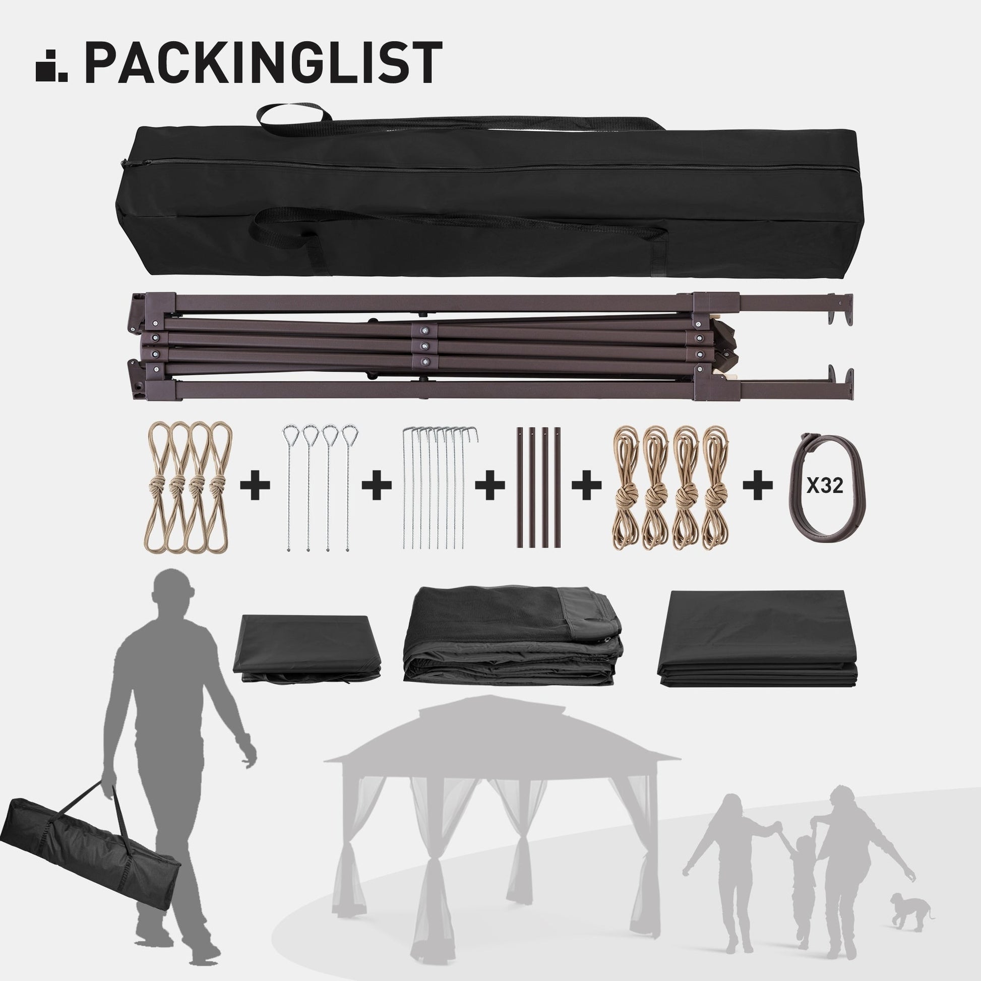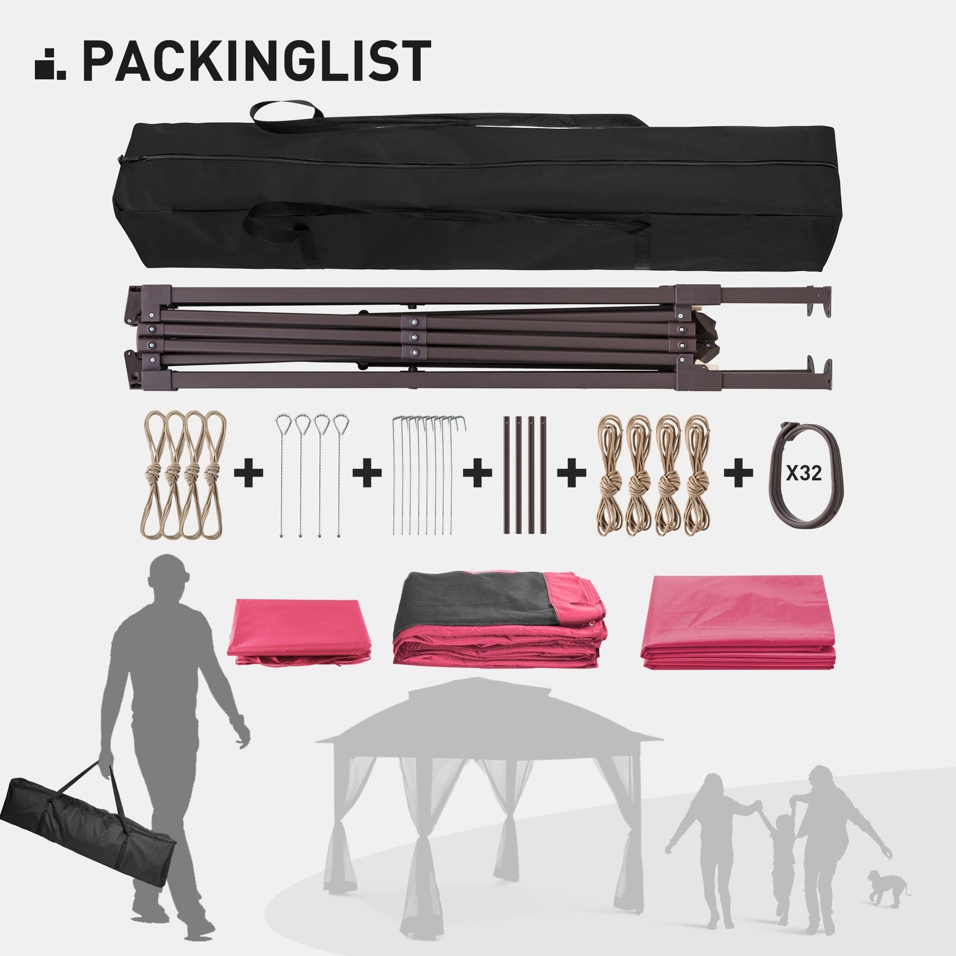 - STRUCTURE ROBUSTE - Cette tonnelle pliante est étonnamment robuste et légère. La structure est en acier haute qualité et thermolaquée pour une meilleure résistance à la rouille. Elle est composée de plusieurs barres de renfort qui se tordent fermement et résistent aux déformations. (Piquets et cordes d'ancrage inclus.)