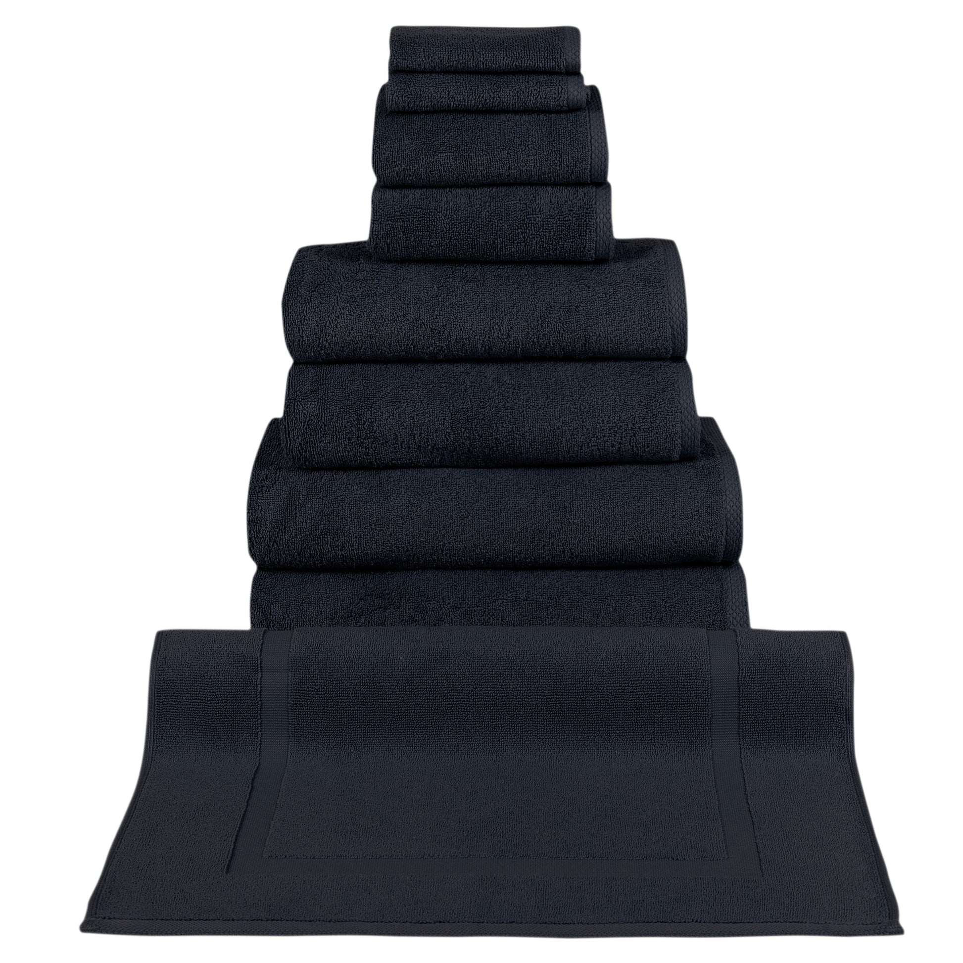 - 9 Piece Set includes: 2 washcloths, 2 hand towels, 2 bath towels, 2 bath sheets, 1 Bathmat