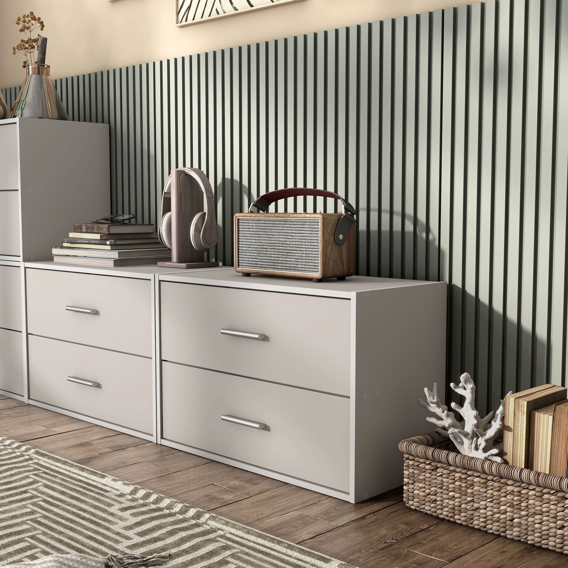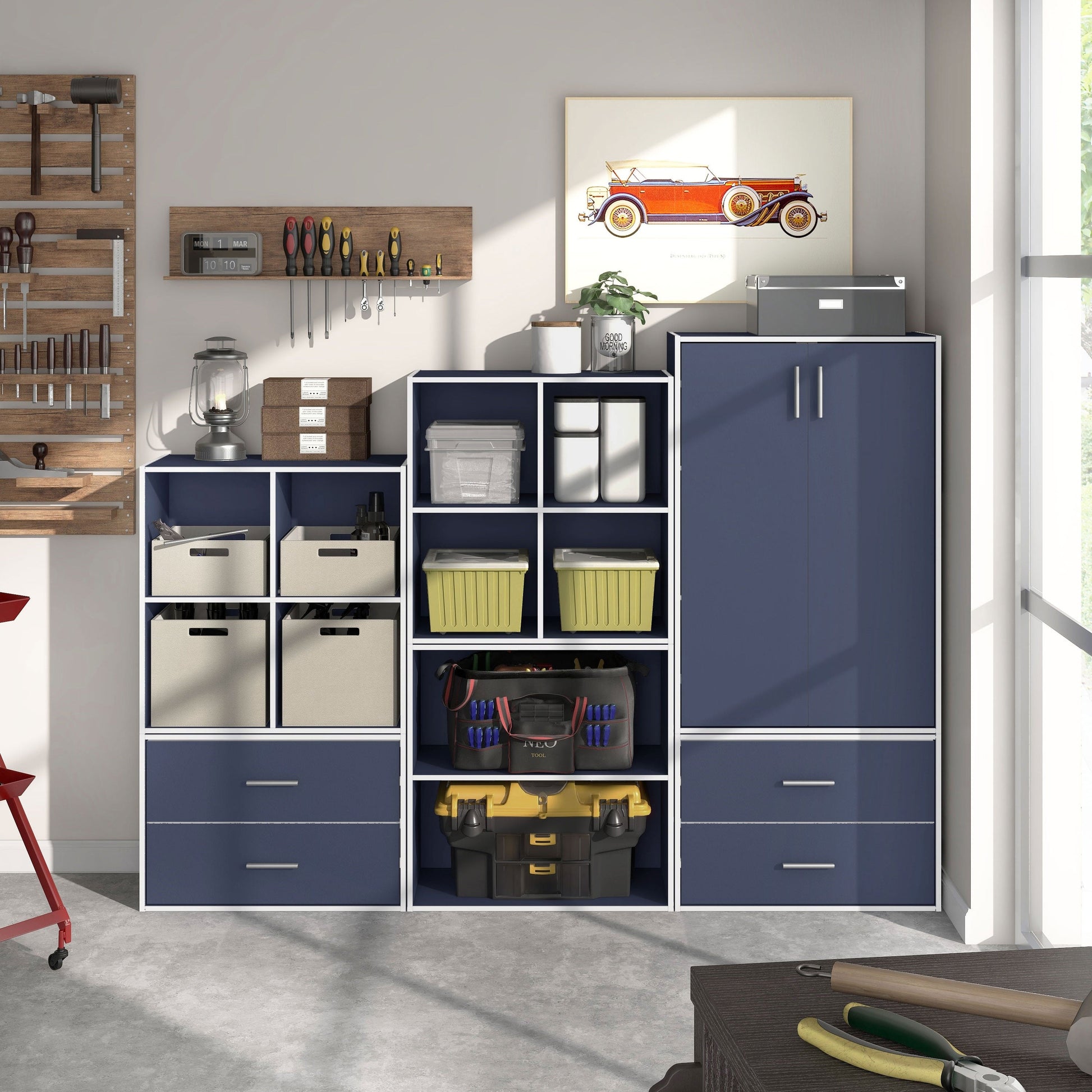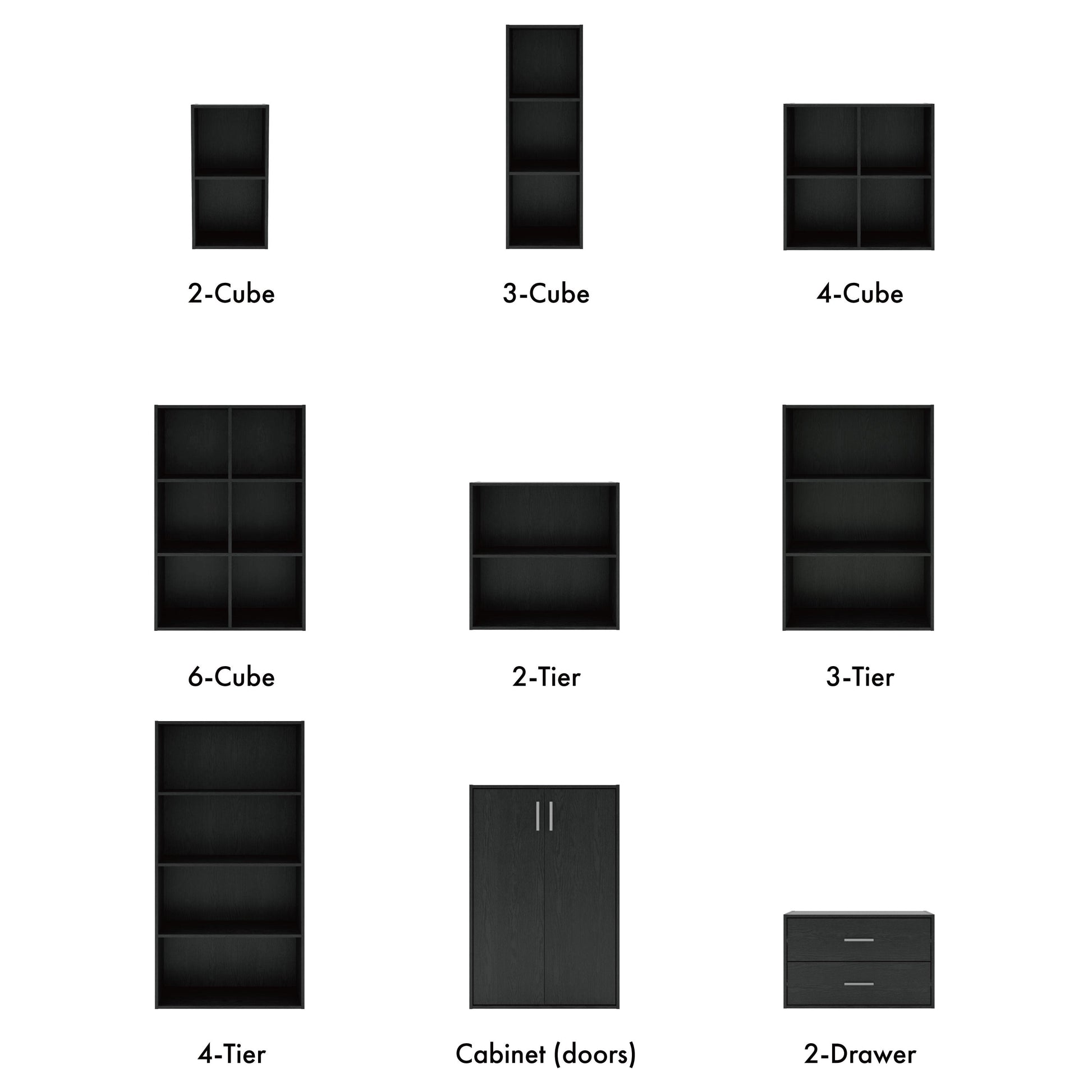 - Stackable 24' wide options (combine freely): 4-cube, 6-cube, 2-tier, 3-tier, 4-tier, 3-tier cabinet, and 2-drawer