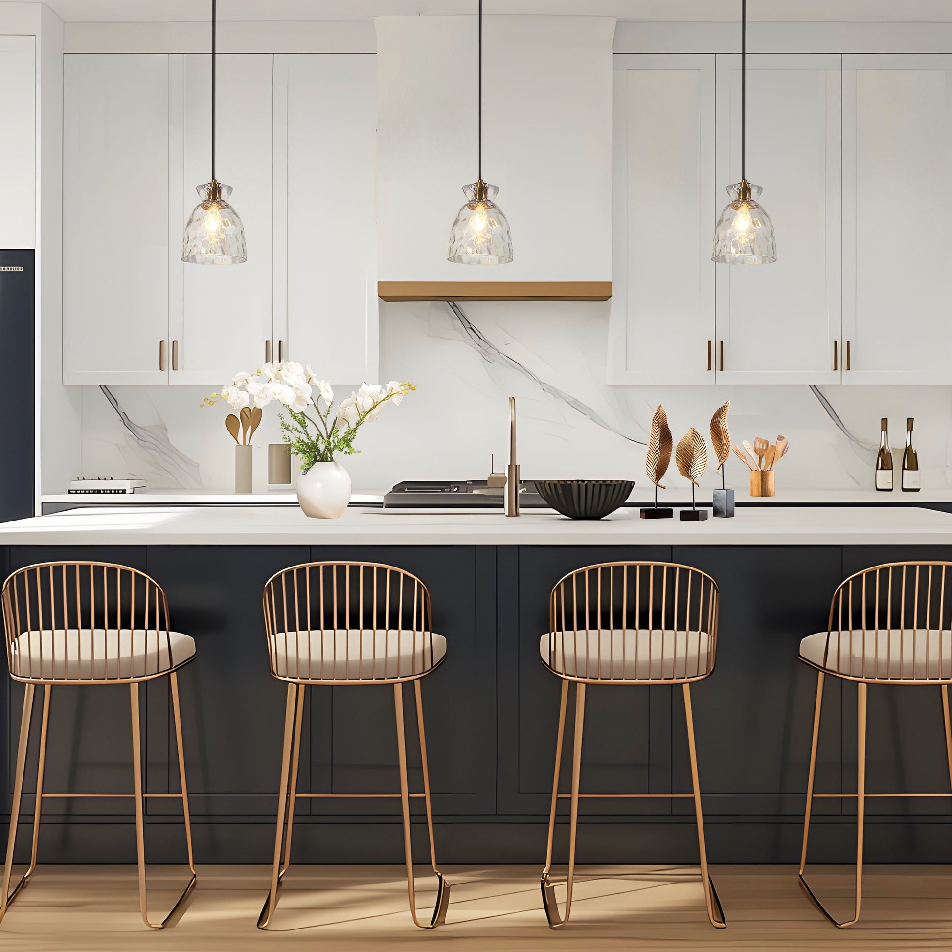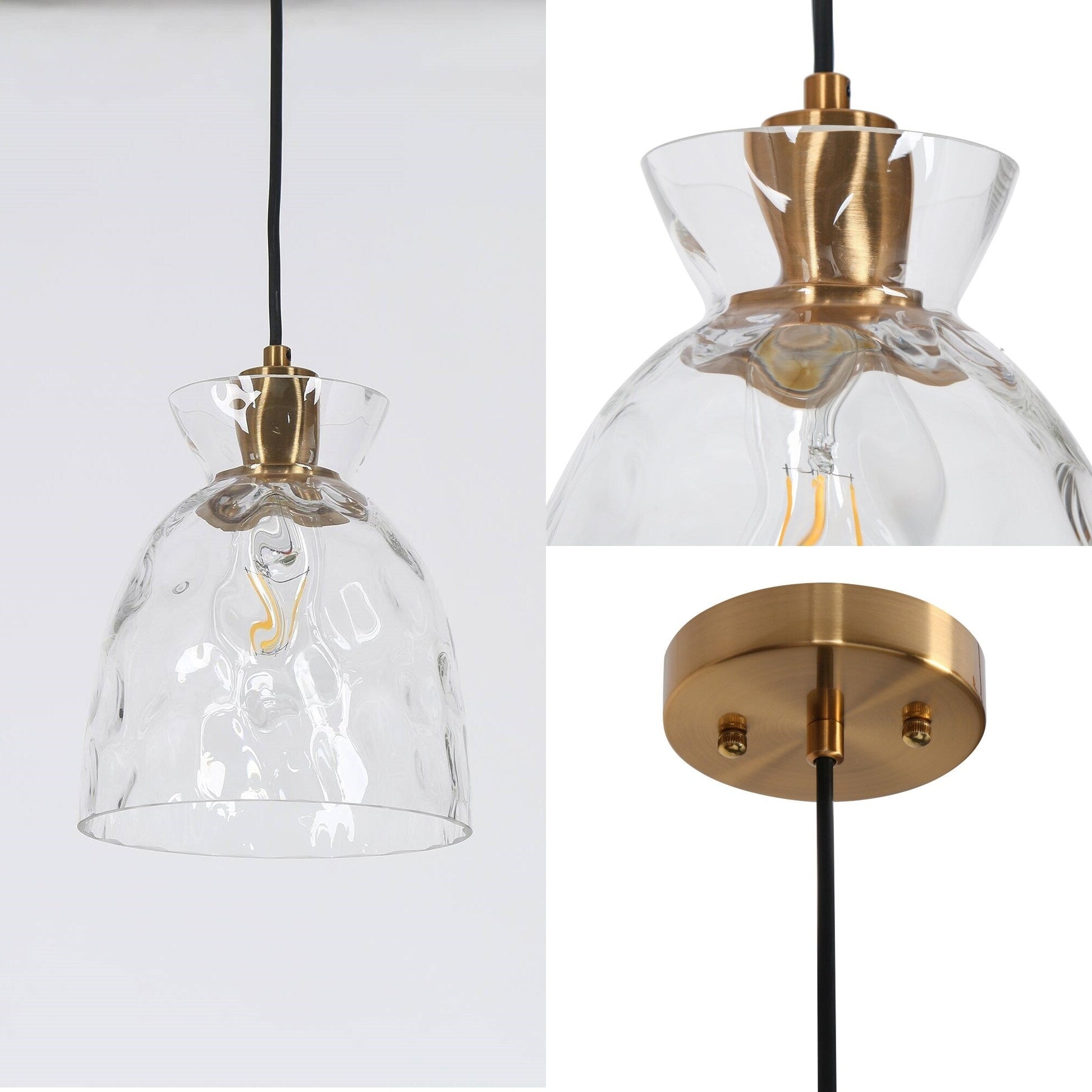 Suspension moderne du milieu du siècle Elisie à 1 ampoule en verre martelé avec dôme en cascade pour cuisine, îlot de cuisine, salle à manger