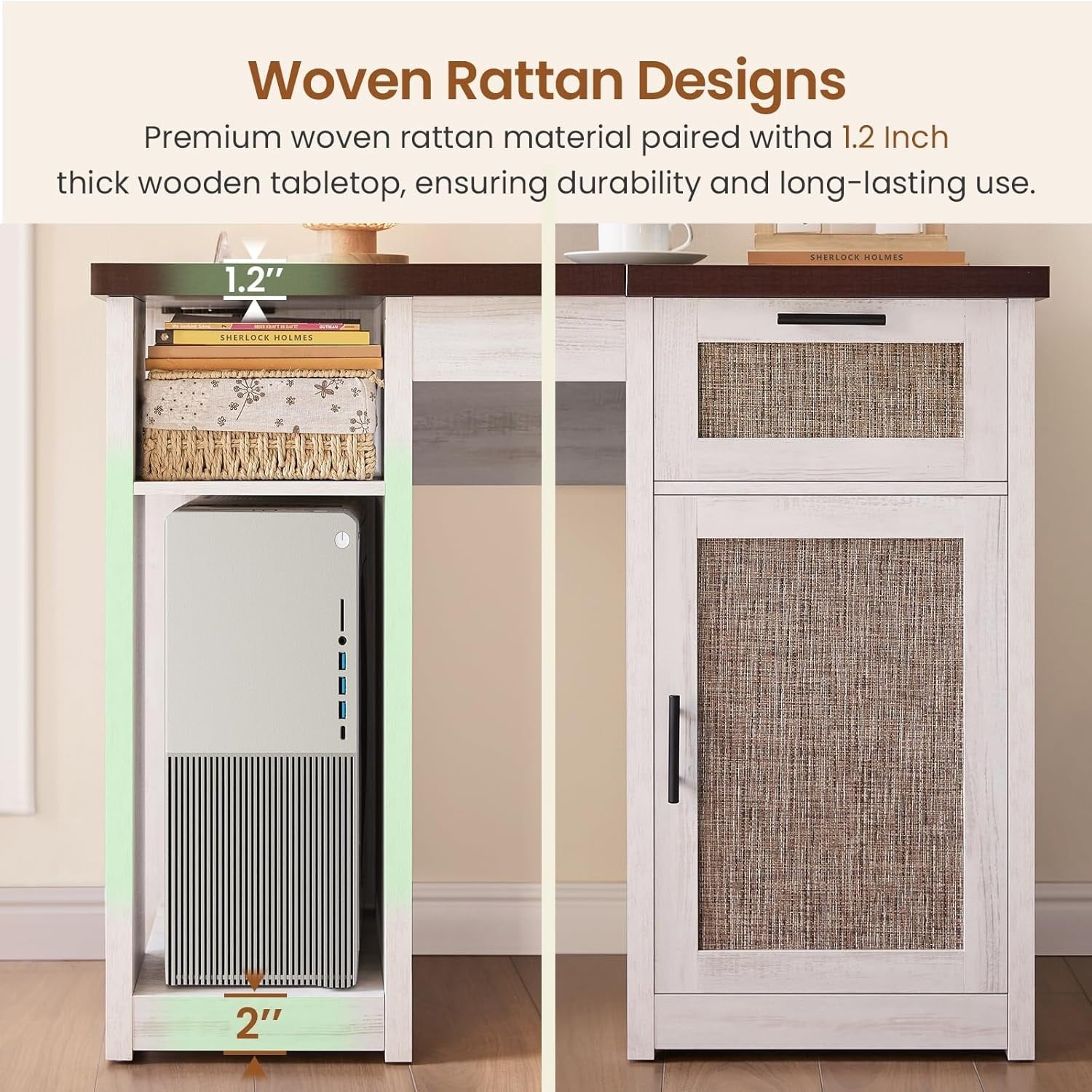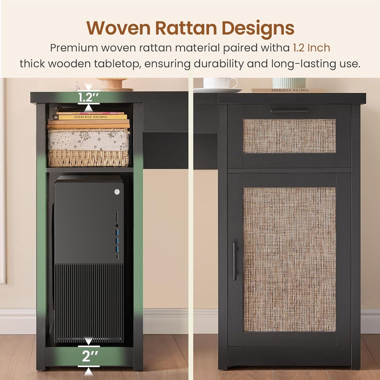 - Construction solide et matériaux de haute qualité : Fabriquée en bois de haute qualité, sa structure robuste et son plateau épais assurent durabilité et stabilité. Les tiroirs et les rangements offrent une organisation pratique pour un espace de travail bien rangé.