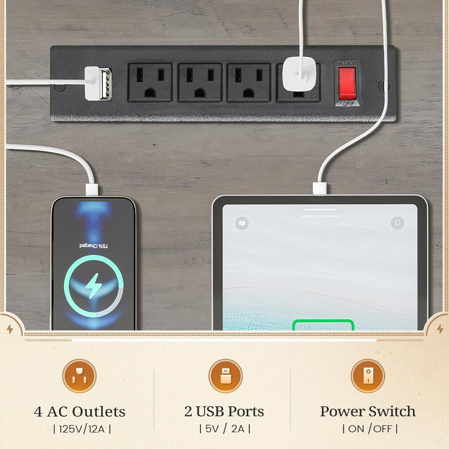 - Prises de courant : ce bureau d'ordinateur est équipé de 4 prises secteur et de 2 ports USB pour recharger facilement votre matériel de jeu, votre tablette, votre imprimante ou votre téléphone. L'interrupteur permet de couper l'alimentation facilement et en toute sécurité, sans avoir à débrancher les appareils.