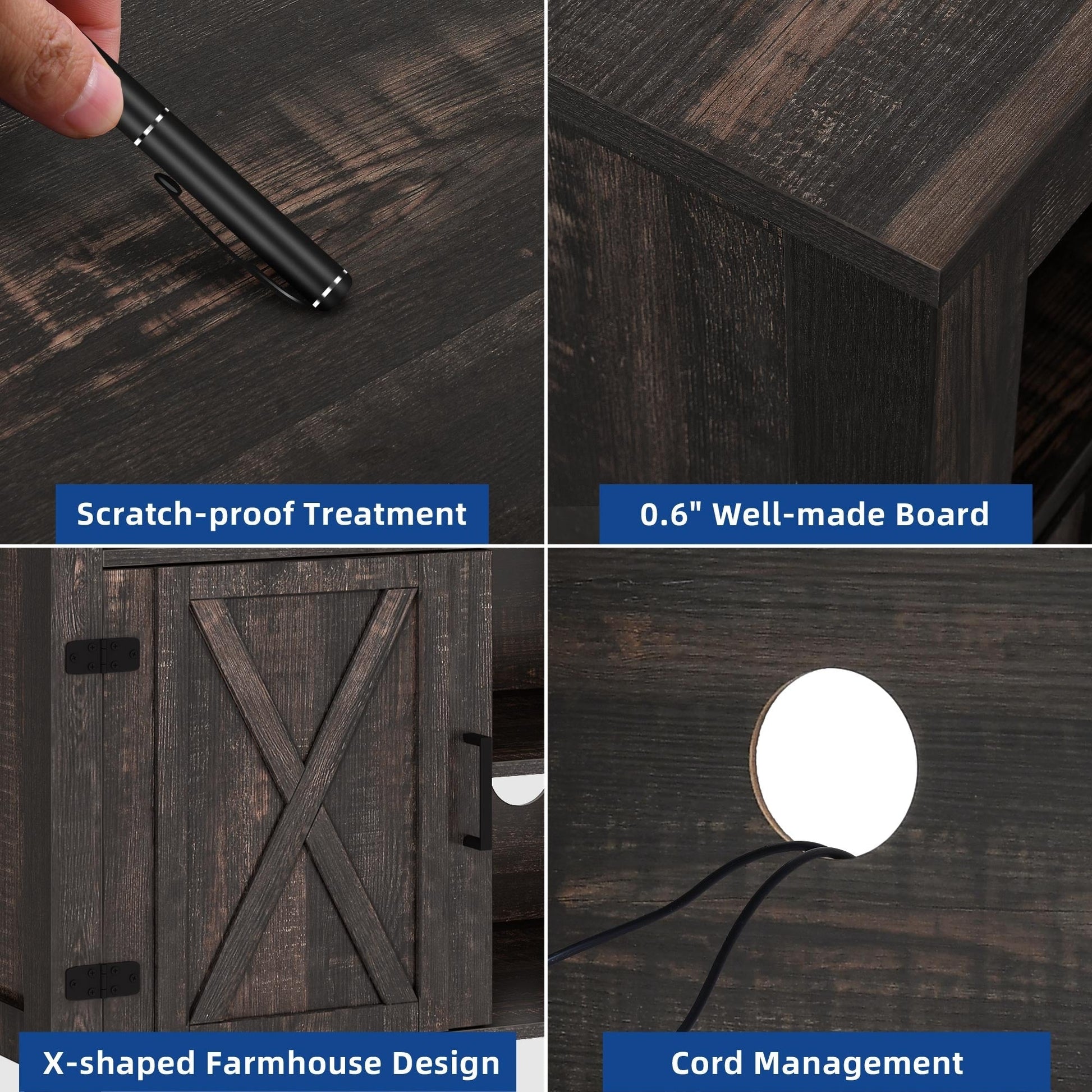 - 3. Profitez d'années d'utilisation : Fabriqué en bois d'ingénierie recouvert d'une finition résistante à l'eau et aux rayures, le meuble TV en bois durable permet des années de plaisir
