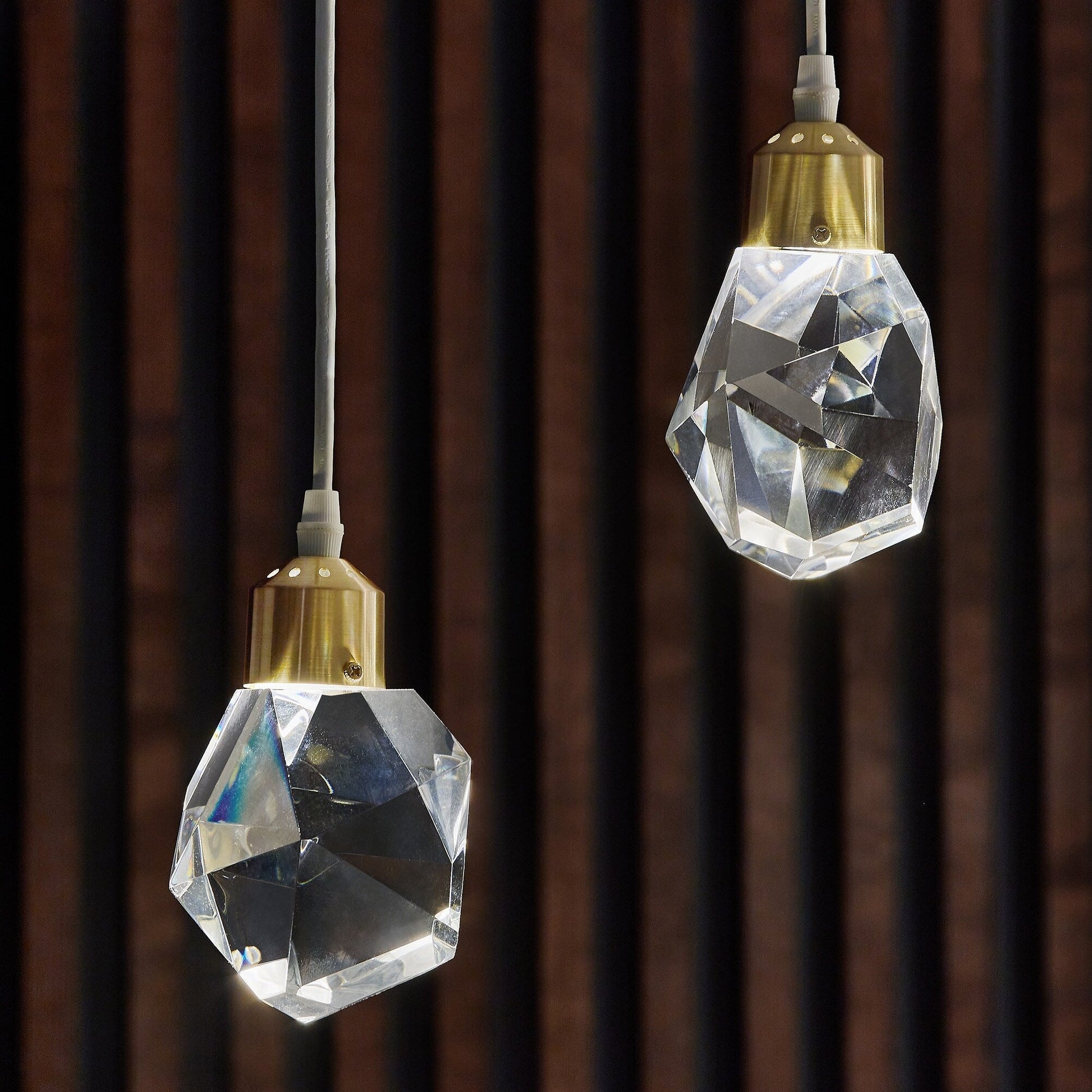 This stunning Crystal Rock LED Pendant / Chandelier is the perfect addition to your kitchen, bar, kitchen island, staircase, entrance, living room, or dining room. The polished brass metal base is corrosion-resistant and durable, while the LED light design is inspired by crystal rock. The high-quality crystal is glittered and translucent, creating an elegant and modern look. The warm white LED light provides a warm and inviting glow. Whether you're entertaining guests or just looking to add some glamour to your space, the Crystal Rock LED Pendant is sure to make a statement.