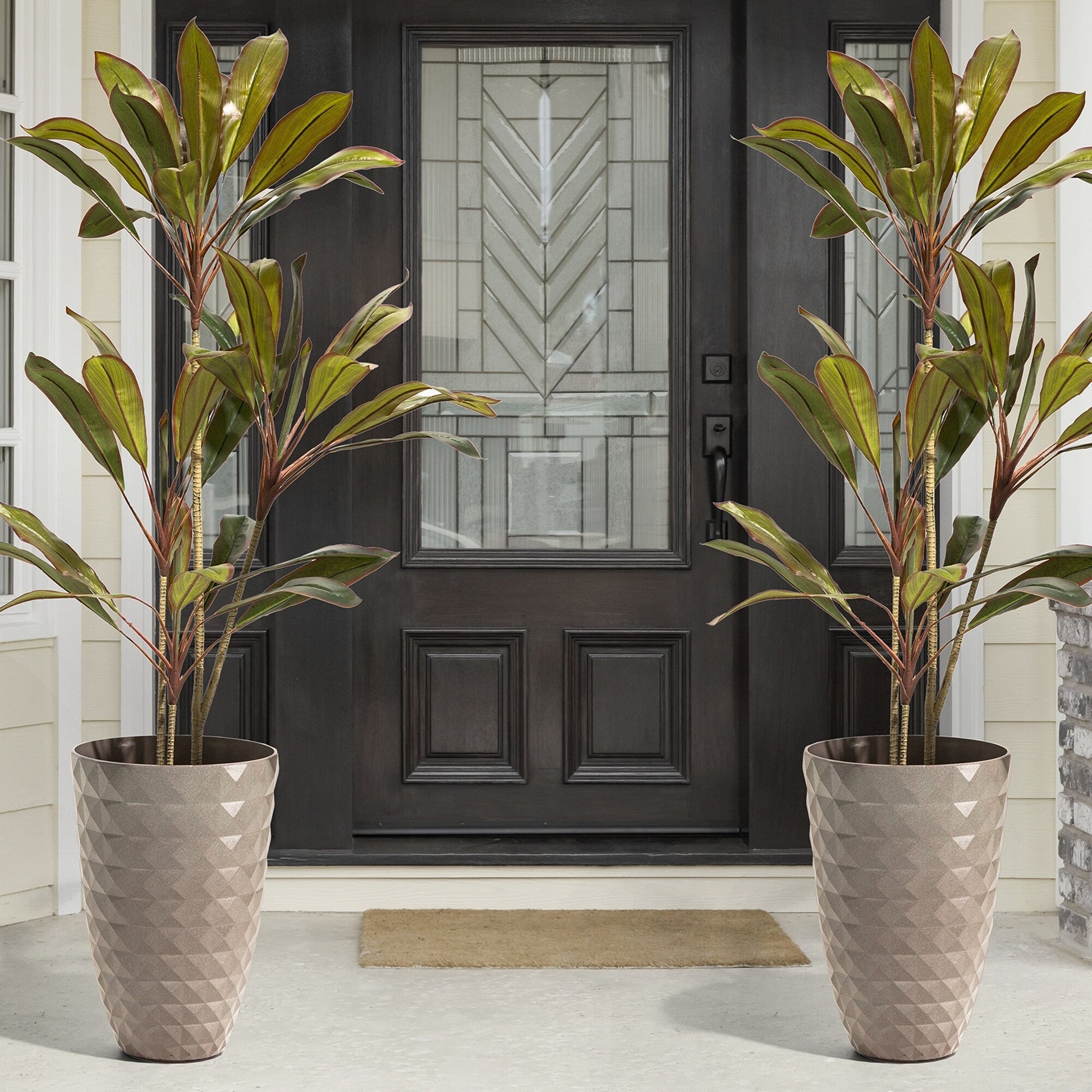 Glitzhome 19.75 H Eco-Friendly Oversized Faux Ceramic Diamond Textured Tall Planter Porch Flowerpot (Set of 2)