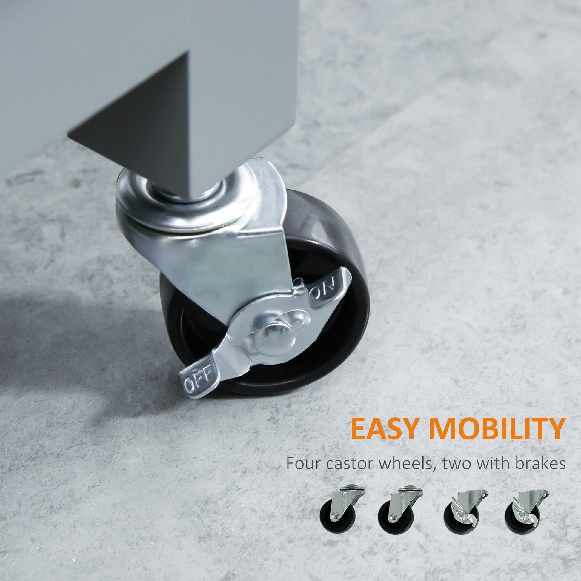 Ce meuble de rangement de cuisine HOMCOM est idéal si vous manquez d'espace et de rangement. Si vous aimez recevoir, remplissez ce chariot de cuisine de tout le nécessaire pour vos invités. Vous pourrez le déplacer facilement ou bloquer deux roulettes pour le maintenir en place toute la nuit. Fini les allers-retours entre la cuisine et le salon, ou optimisez votre espace de rangement actuel grâce à cet îlot de cuisine roulant HOMCOM.