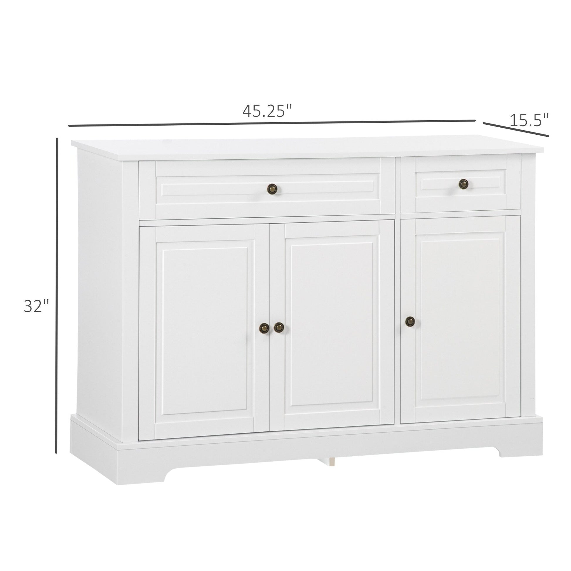 Ajoutez rapidement l'espace de rangement nécessaire et désencombrez votre intérieur avec ce buffet HOMCOM. Son ton neutre confère à ce buffet de cuisine une touche de sobriété. Son placard et son tiroir offrent un espace de rangement généreux pour vos accessoires et ustensiles du quotidien. Personnalisez votre intérieur grâce à l'étagère intérieure réglable qui s'adapte à vos besoins.
