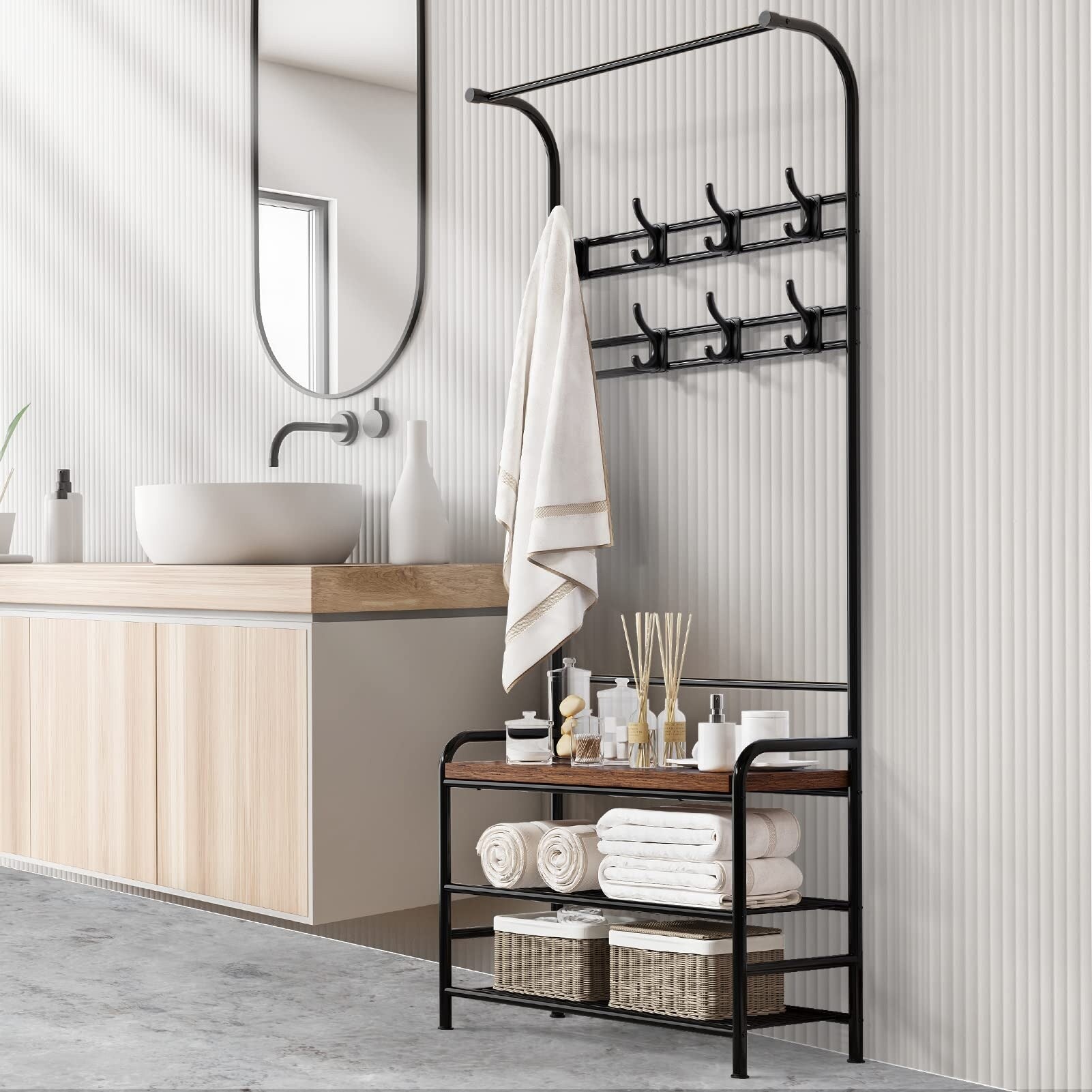 Industrial Entryway Coat Rack with Shoe Bench 3-in-1 Functional Hall Tree