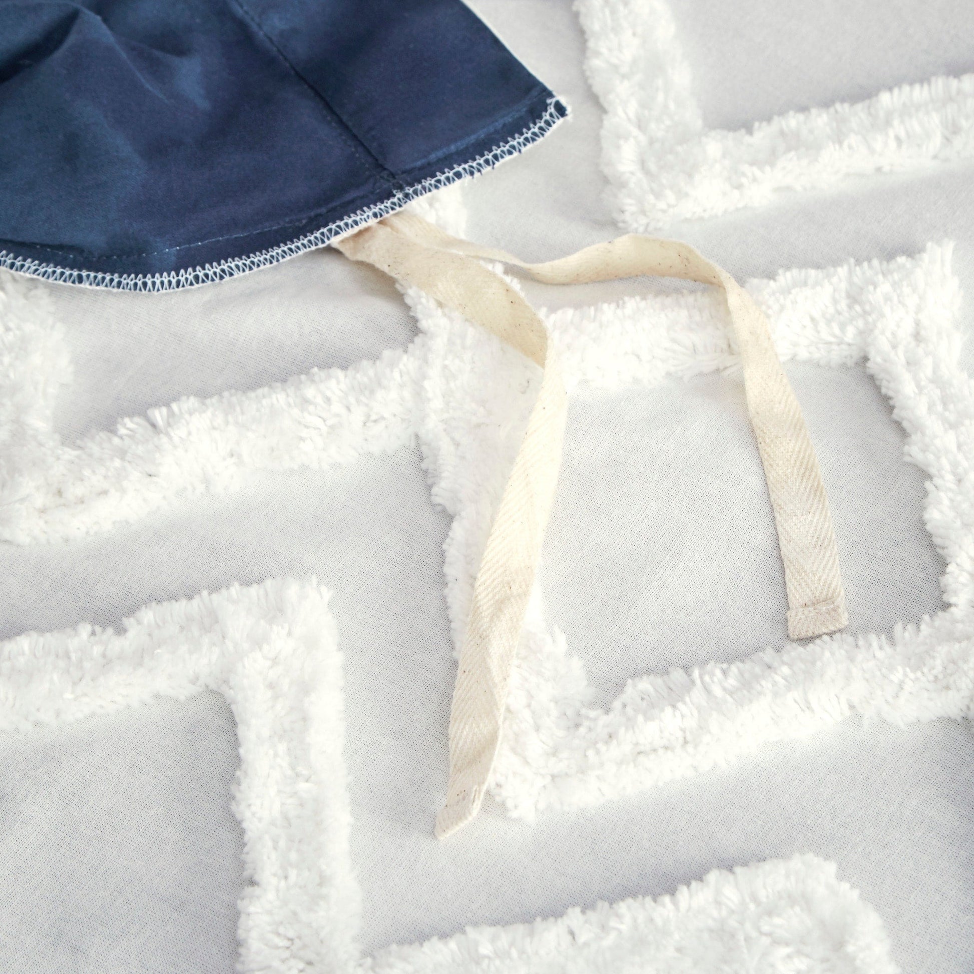 • Farmhouse cotton duvet cover set with tufted white chevron chenille