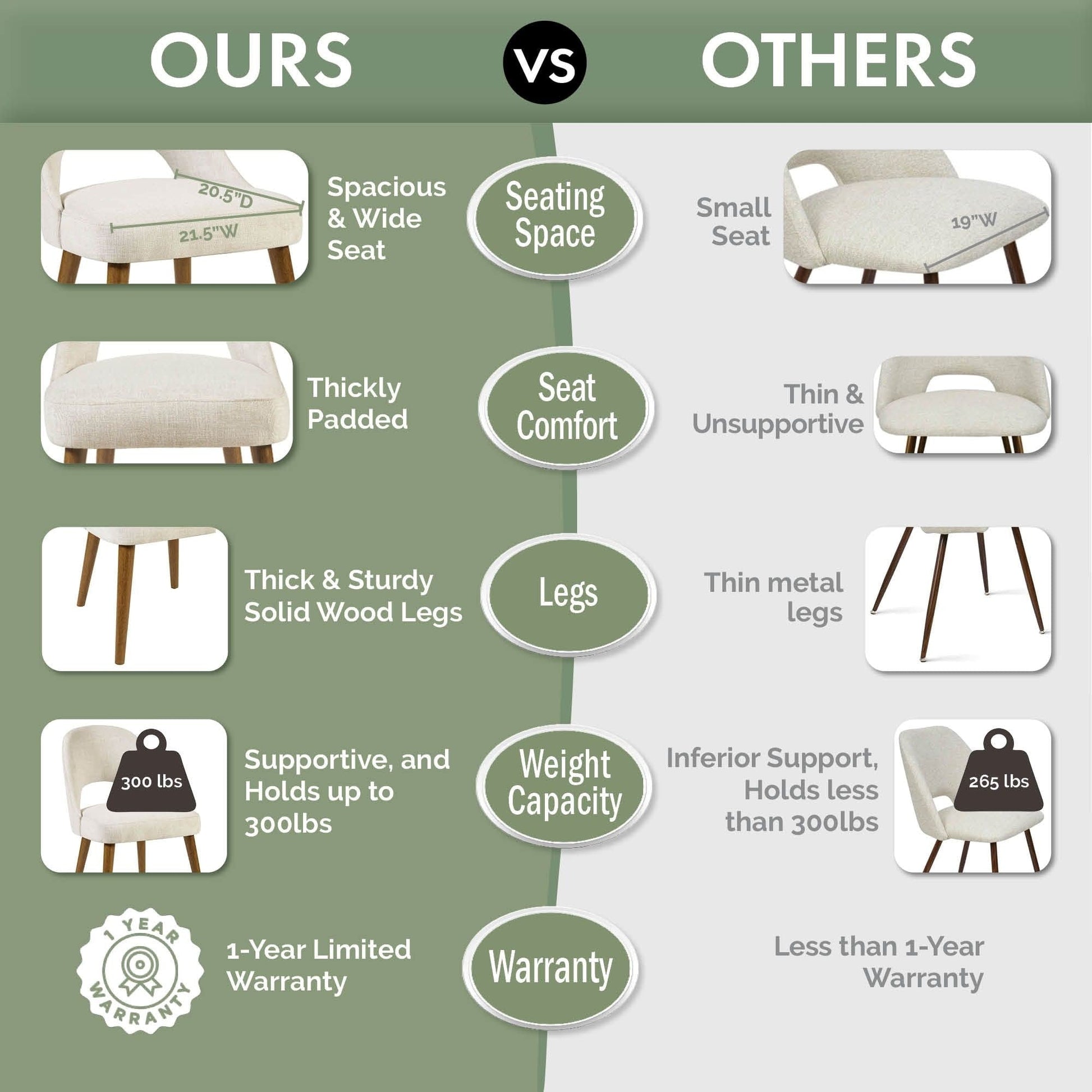 Sublimez n'importe quel espace avec les chaises de salle à manger rembourrées Nola d'INK+IVY (lot de 2). Polyvalentes et modernes, ces chaises du milieu du siècle présentent un dossier incurvé et des pieds en bois évasés pour un design élégant et compact qui se glisse facilement sous les tables. Revêtue d'un tissu doux, résistant et facile d'entretien, l'assise épaisse et rembourrée de mousse haute densité offre un confort et un soutien exceptionnels pour une assise prolongée. Conçues pour durer, chaque chaise supporte jusqu'à 136 kg, tandis que le dossier découpé sert de poignée pratique pour un repositionnement facile. Idéales pour les salles à manger, les salons, les chambres, les entrées, les bureaux à domicile et bien plus encore. Un assemblage rapide et facile des pieds est requis pour plus de commodité.