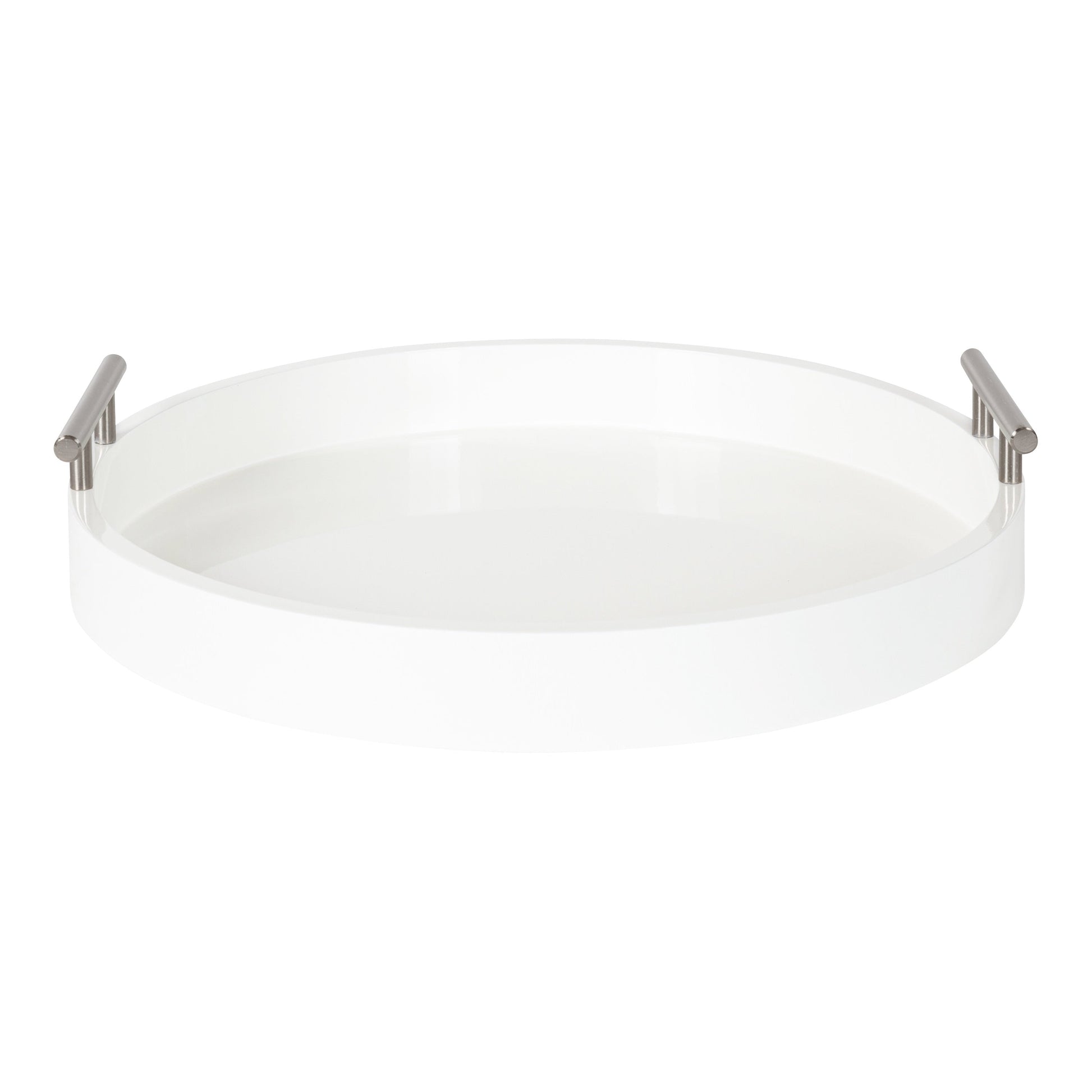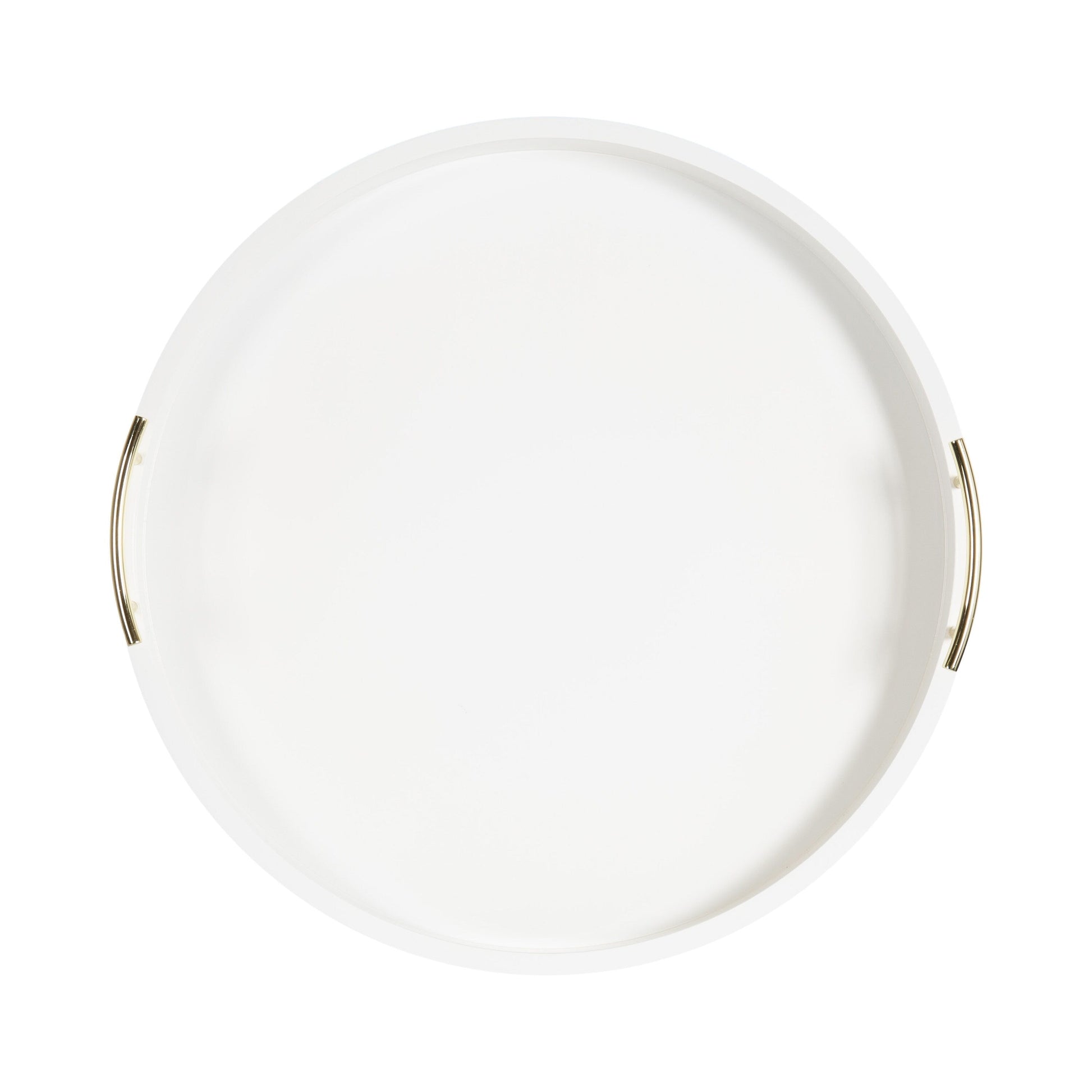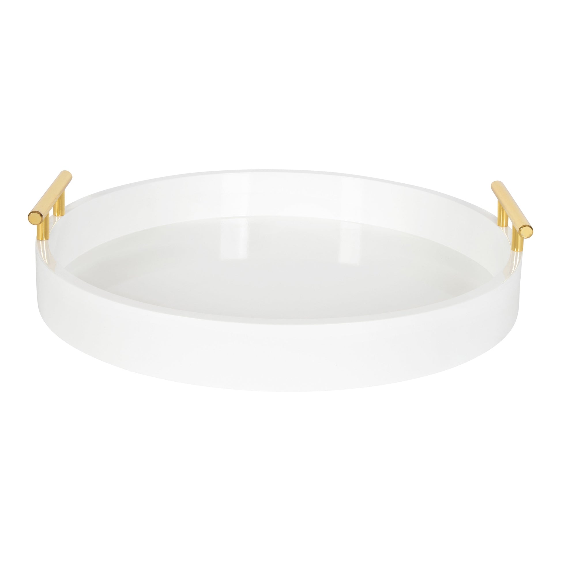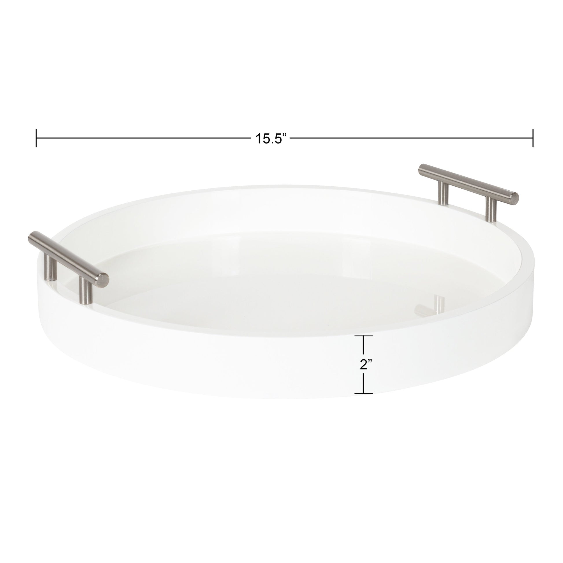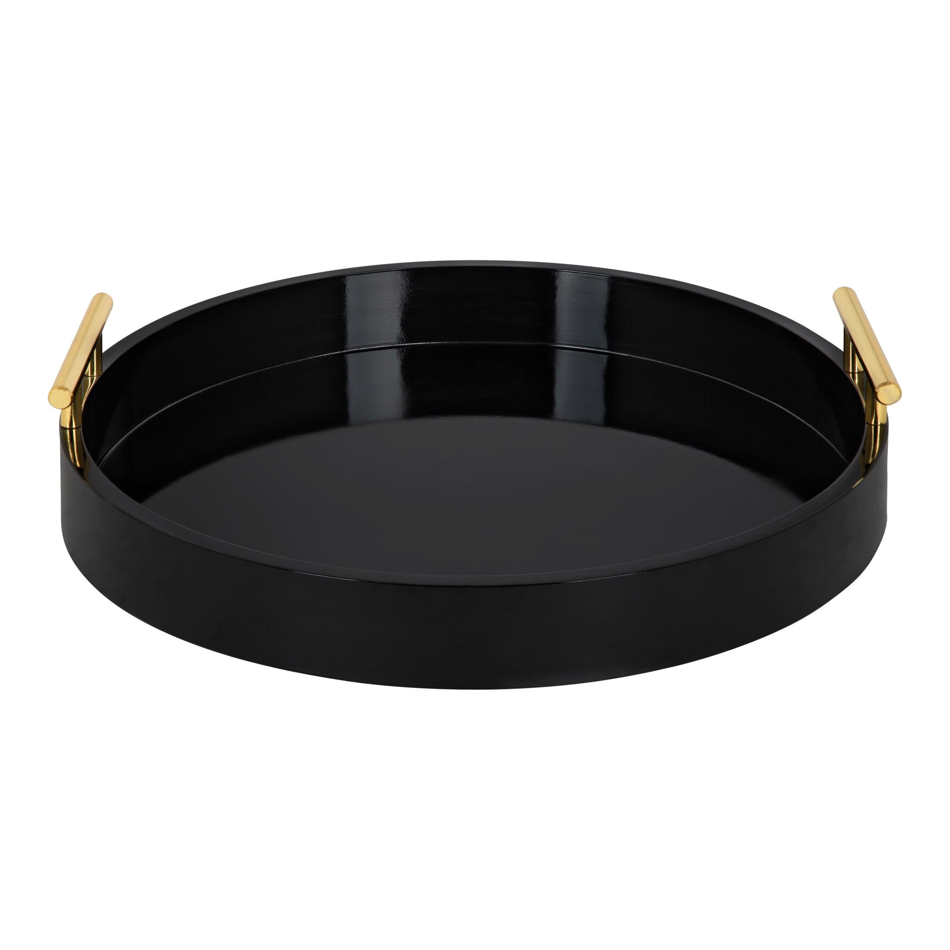 Showcase your favorite items with elegance and ease using the Lipton round decorative tray from Kate and Laurel. Crafted from MDF, this tray boasts a contemporary and glamorous style with metal handles for effortless serving and mobility. Available in a variety of finish colors and two sizes to perfectly suit your unique decor. Protective pads on the bottom ensure your surfaces stay scratch-free. No assembly required.