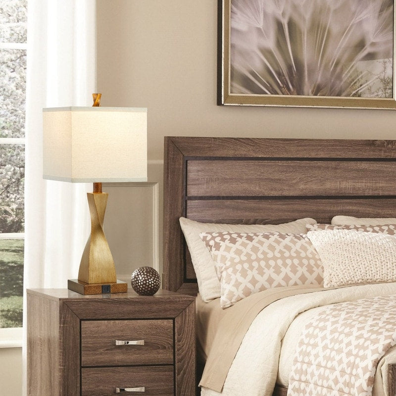 Architecturally designed spiral lamp base with cubic lamp shades, this lamp set is a nice solution for any living space. One USB port and one Type C port included on the square lamp base makes it also perfect for your home office. Distressed finish and contrasting hardware, this lamp set offers a classic country look, add a casual and breezy note.