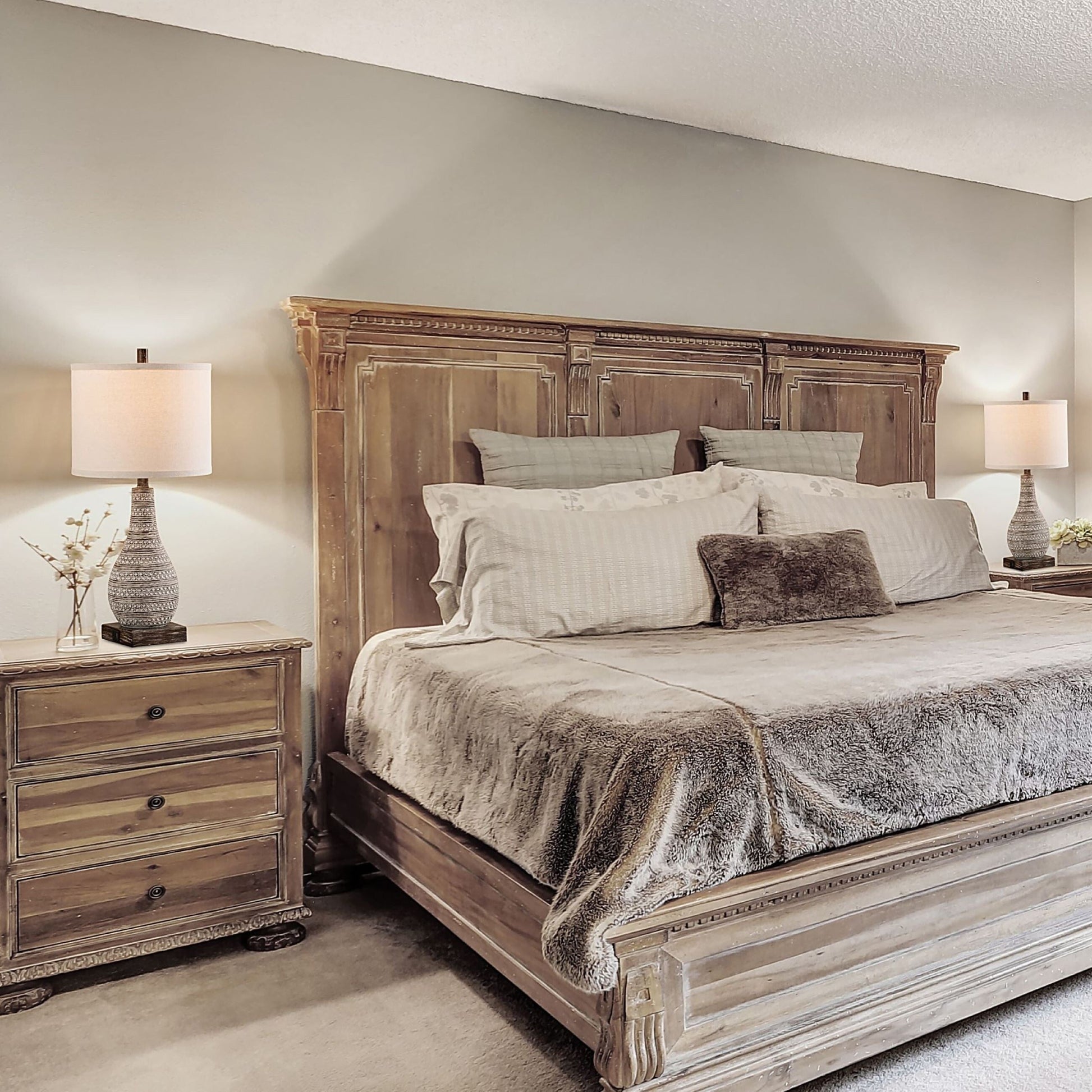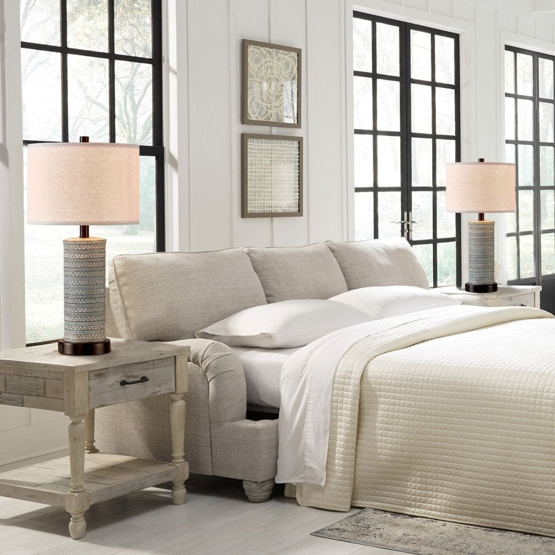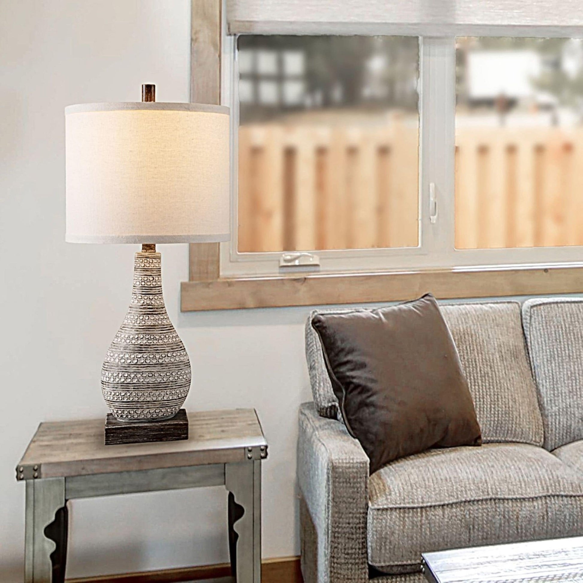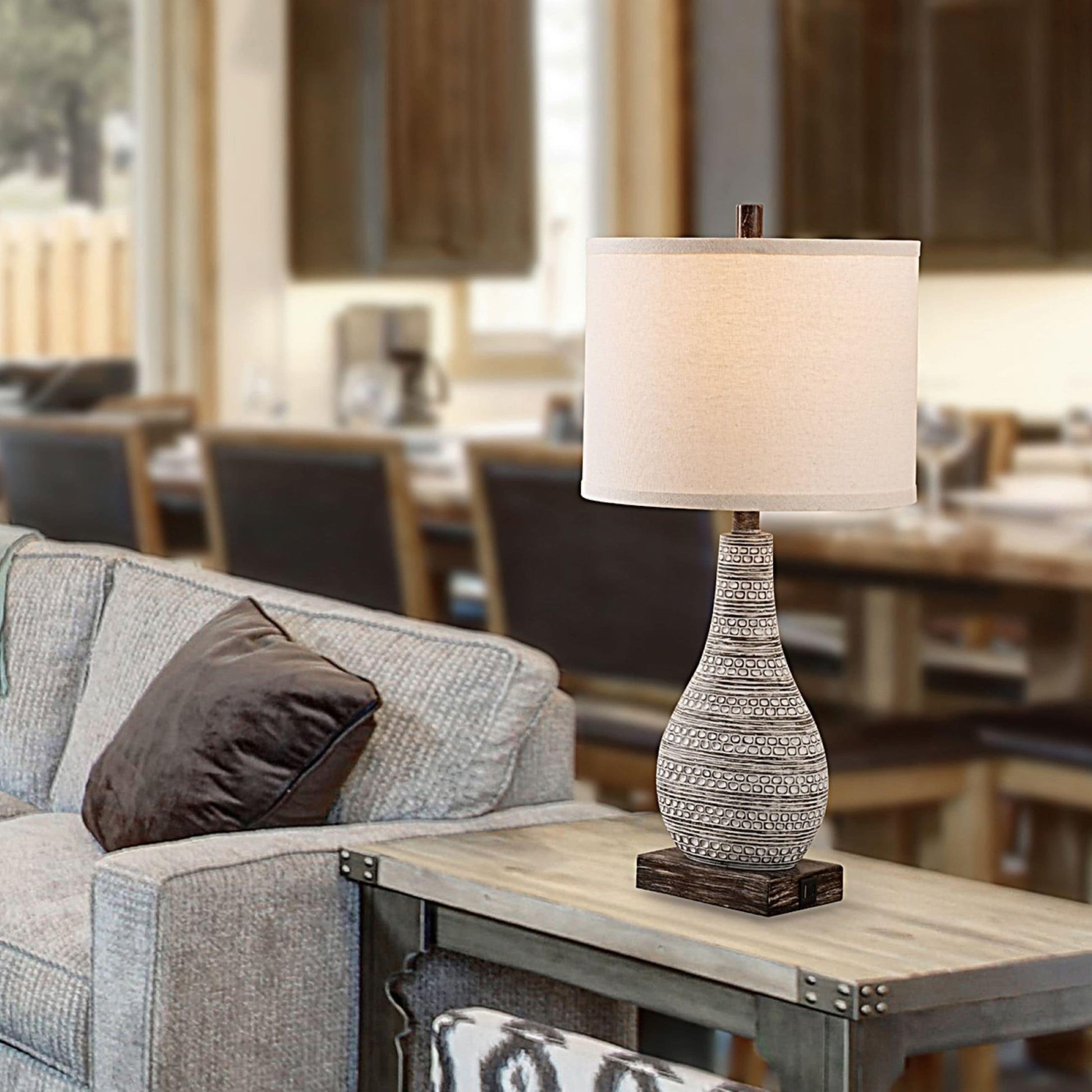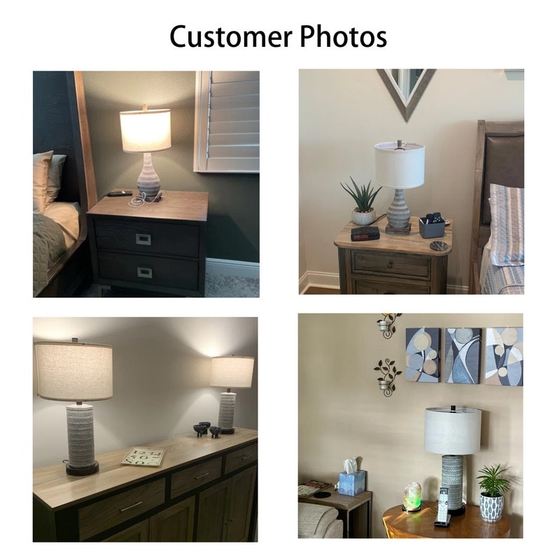 Add a touch of rustic and farmhouse charm to your home with the KAWOTI Touch Control Table Lamp Set. The weathered walnut finish and beige linen lampshade add character and style. Easy to adjust the brightness with a touch to the lamp base, and available for three levels to choose from. This set includes two A19 10W LED bulbs. Plus, AC outlets and USB ports keep your device charging, which is convenient and practical.