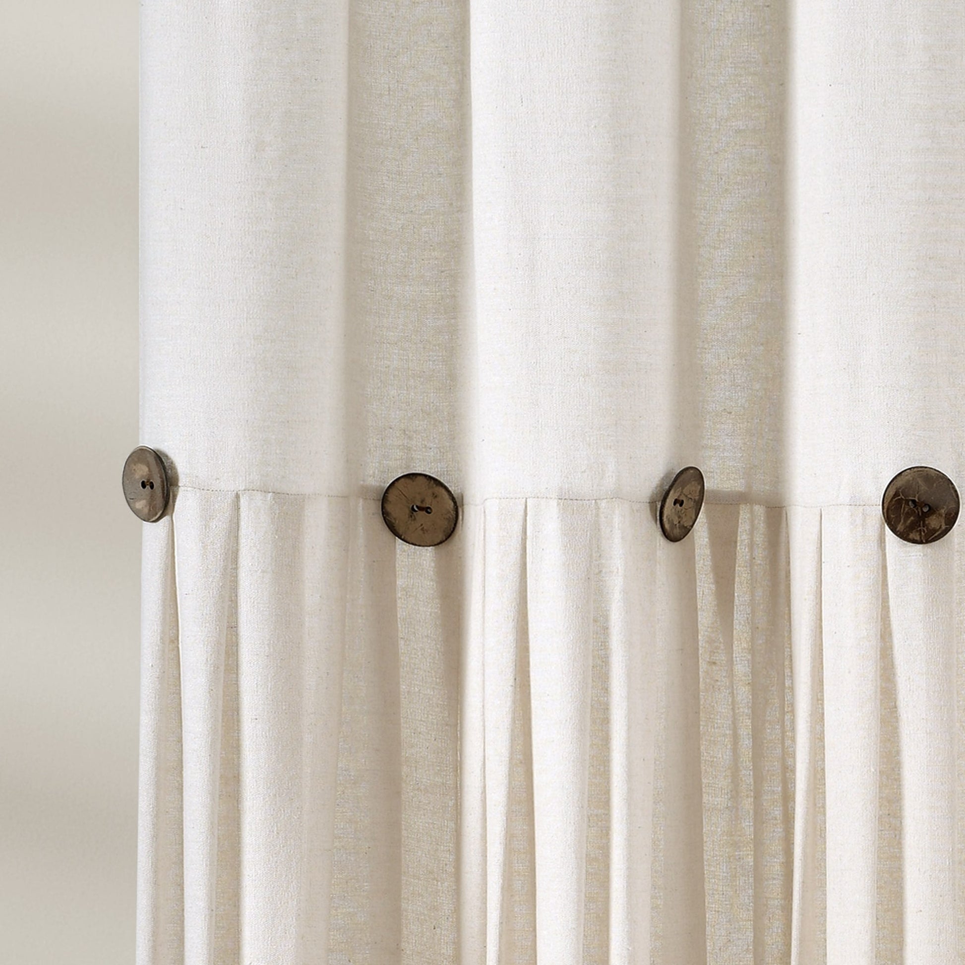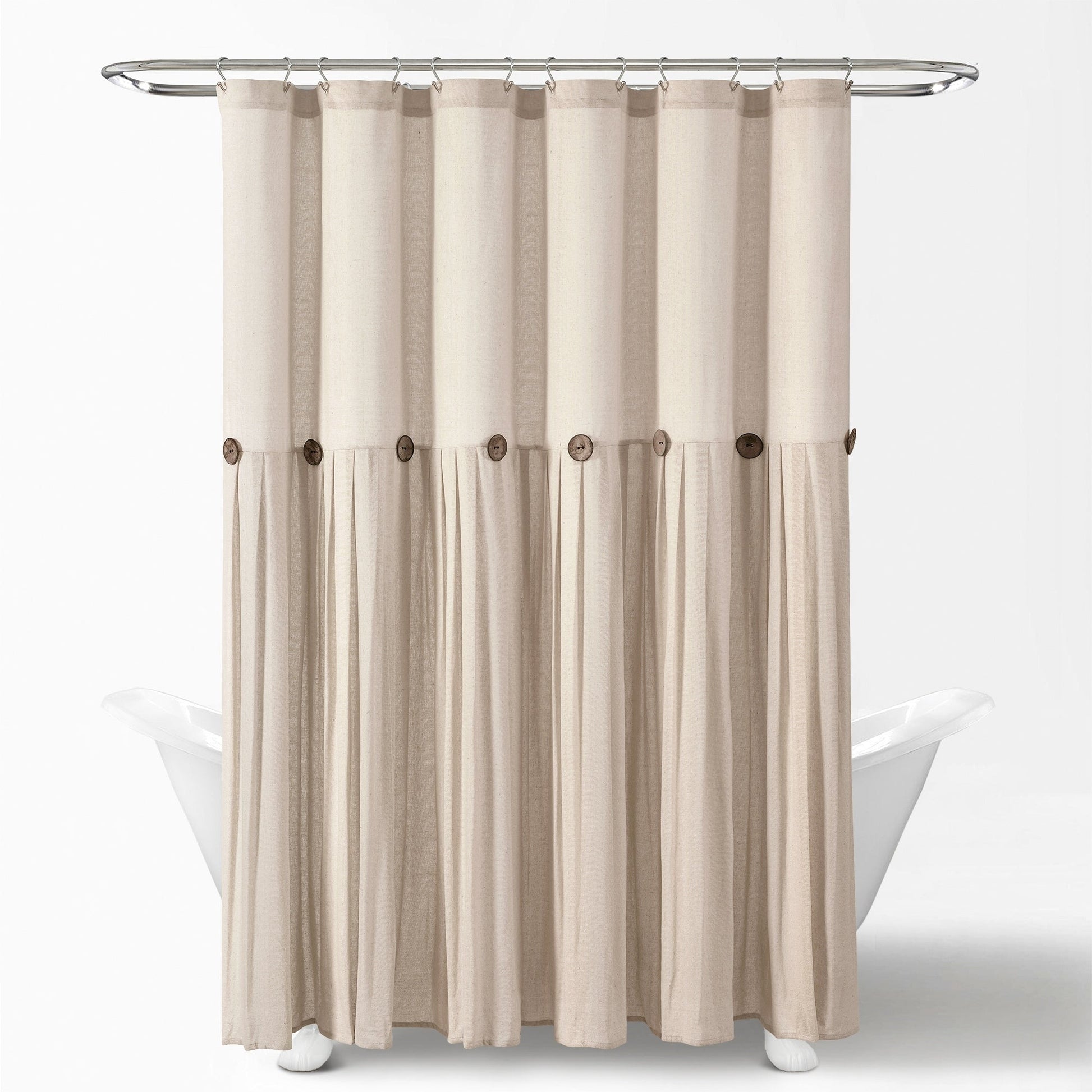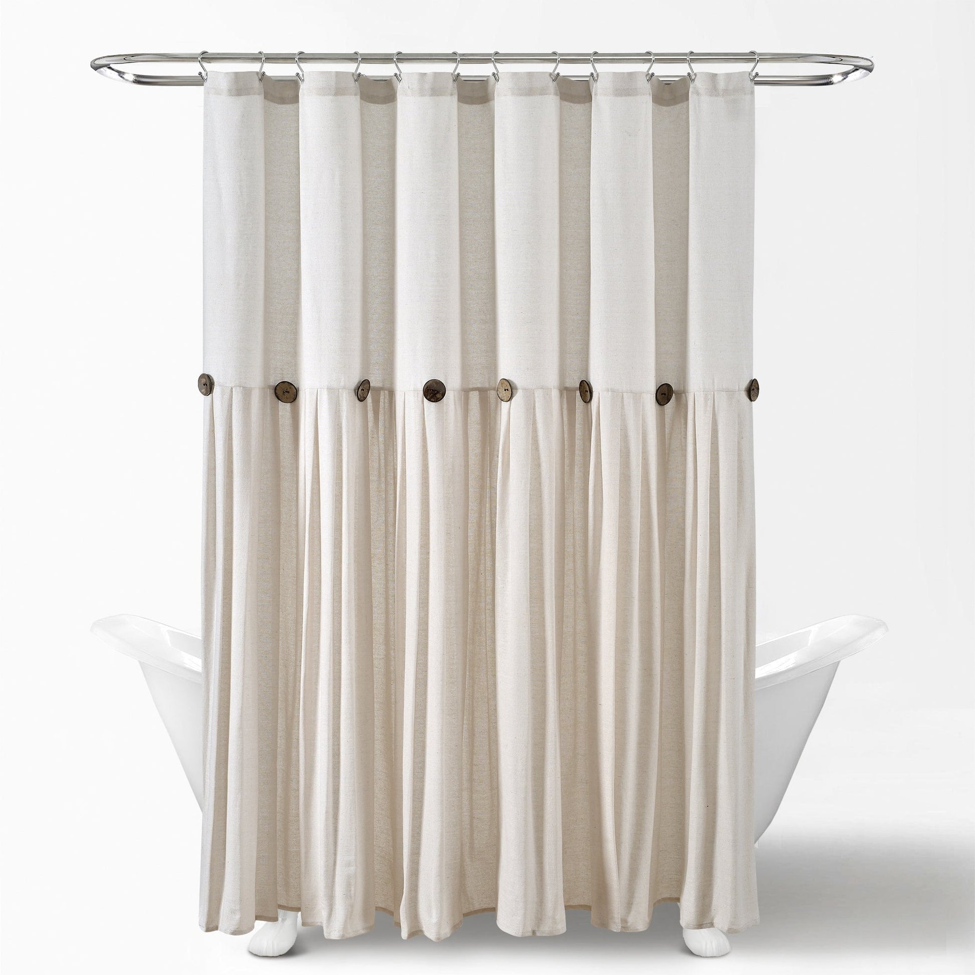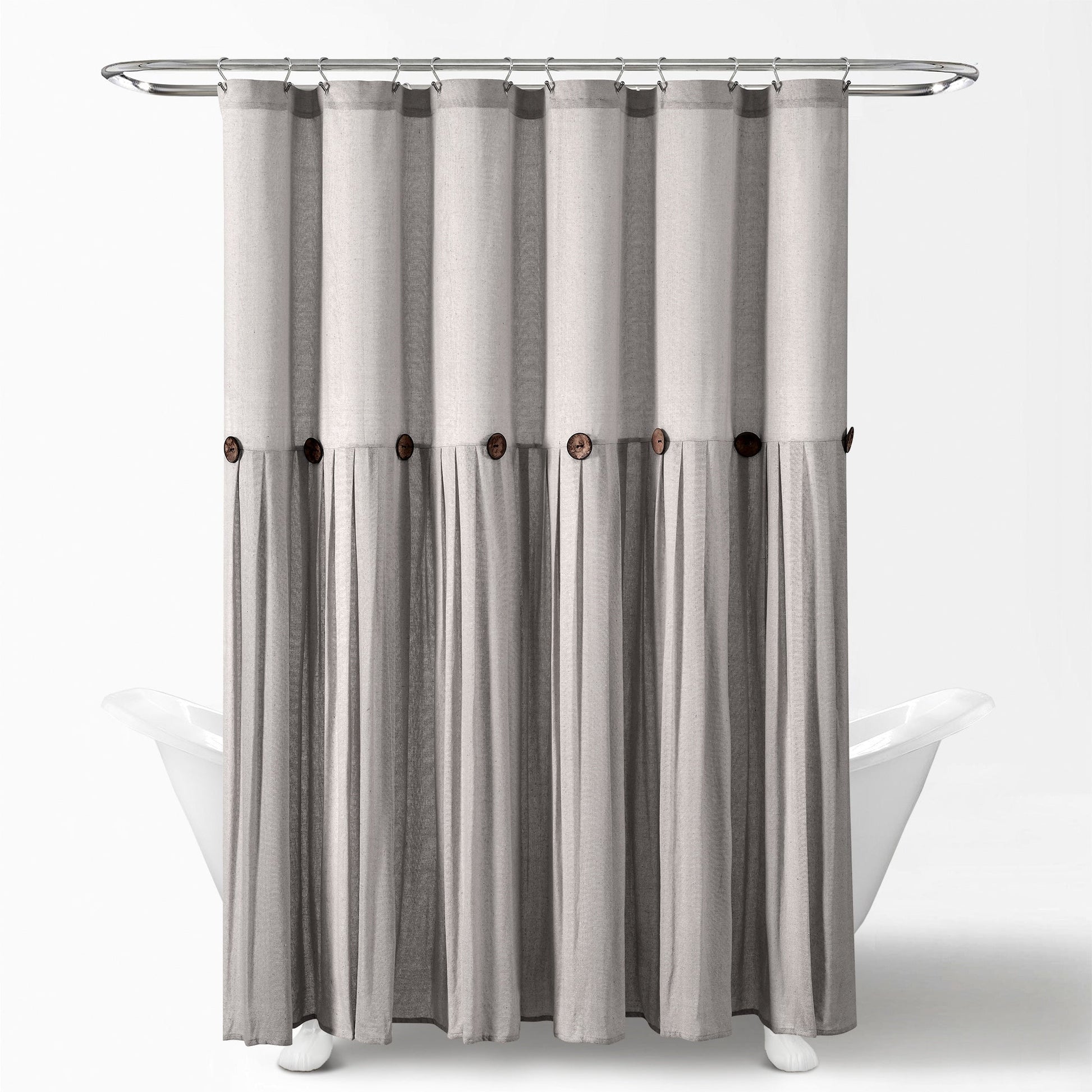 Add a touch of casual elegance to your bathroom with this Lush Decor Two-tone Linen Button Shower Curtain. With its charming button embellishments and pleating, this shower curtain is perfect to brighten up your bathroom décor. Made of a high-quality cotton/polyester blend fabric, this curtain comes in various two-tone color options to best match your bathroom's color scheme. This shower curtain is machine washable and easy to maintain.