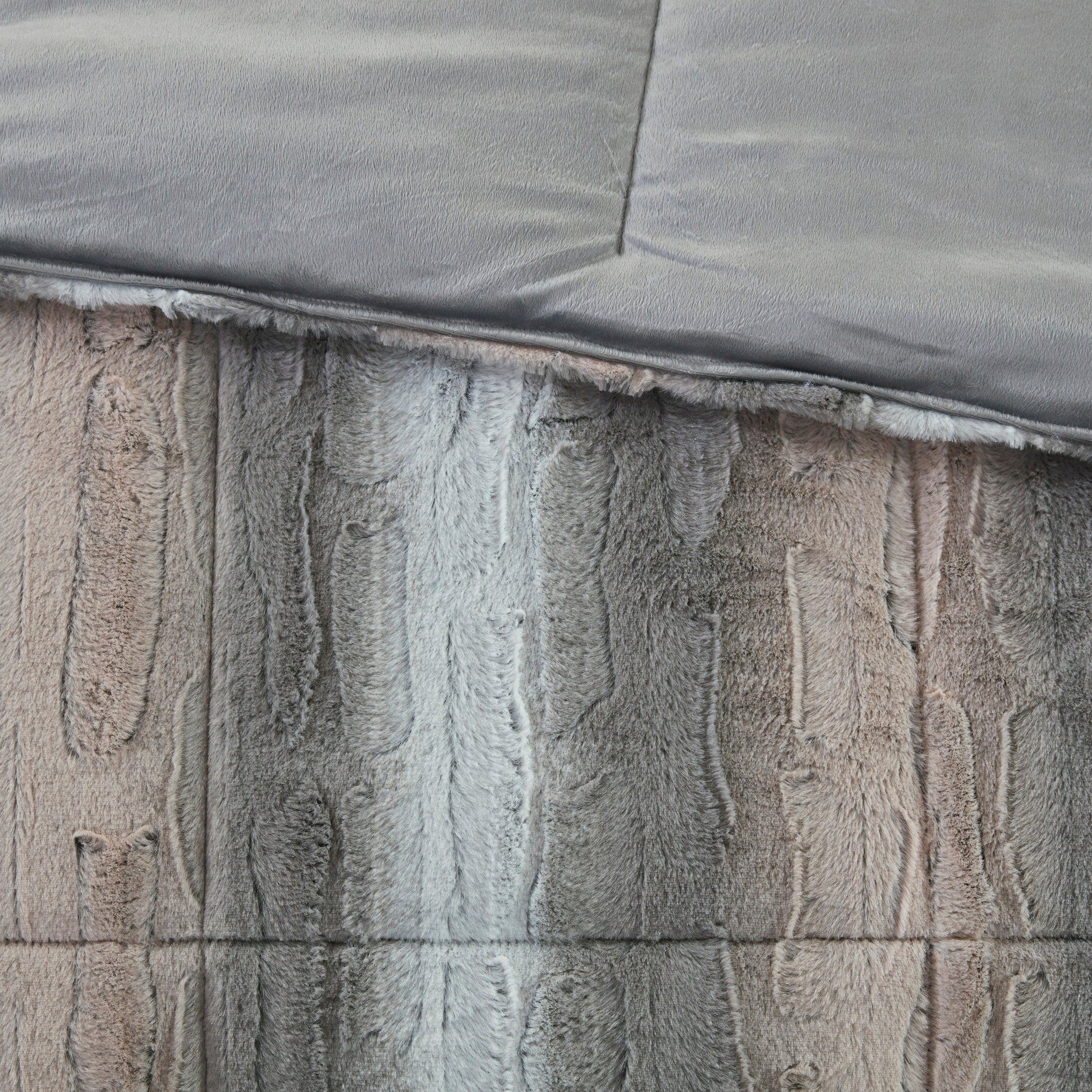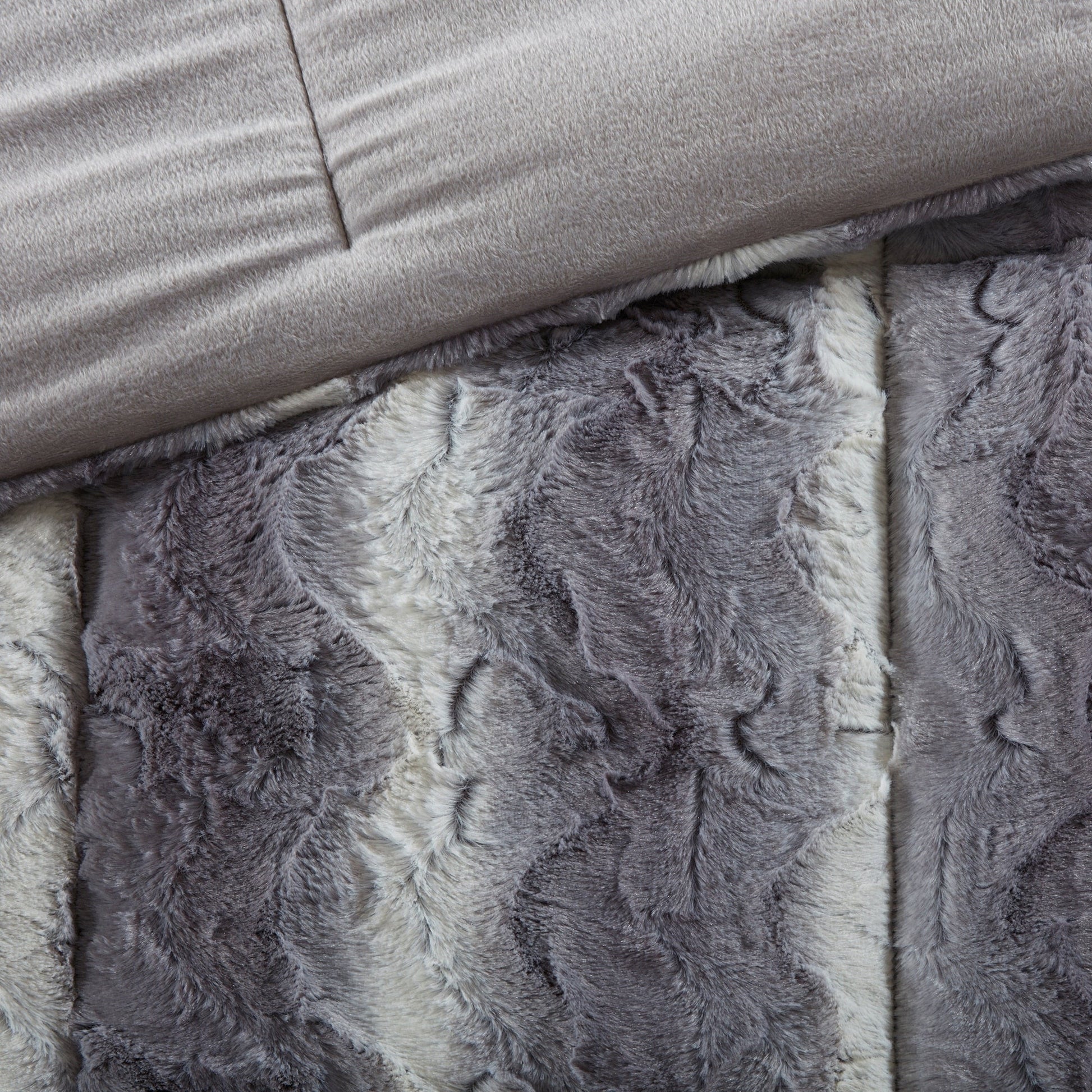 - Soft faux fur comforter set with end-to-end box quilting to secure filling