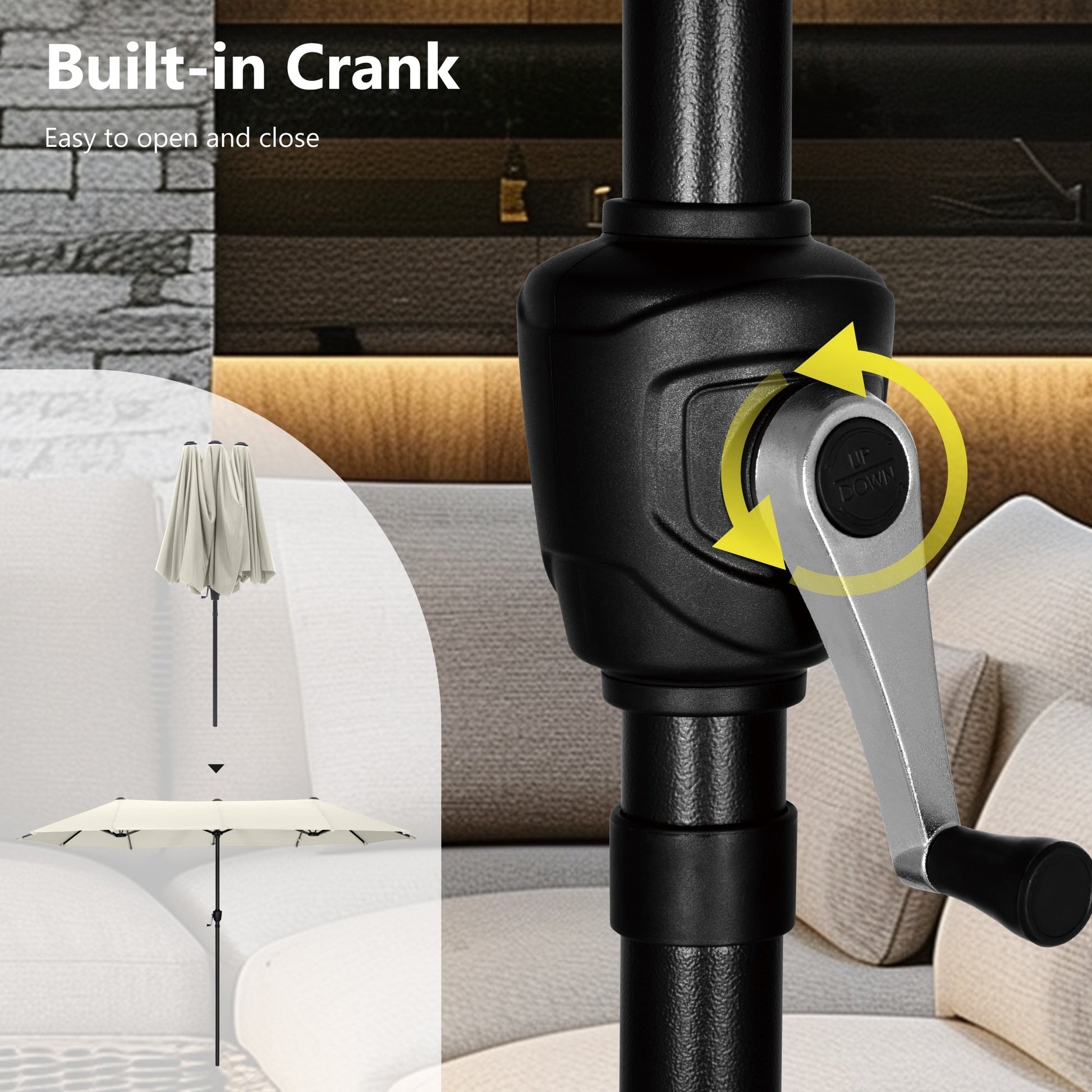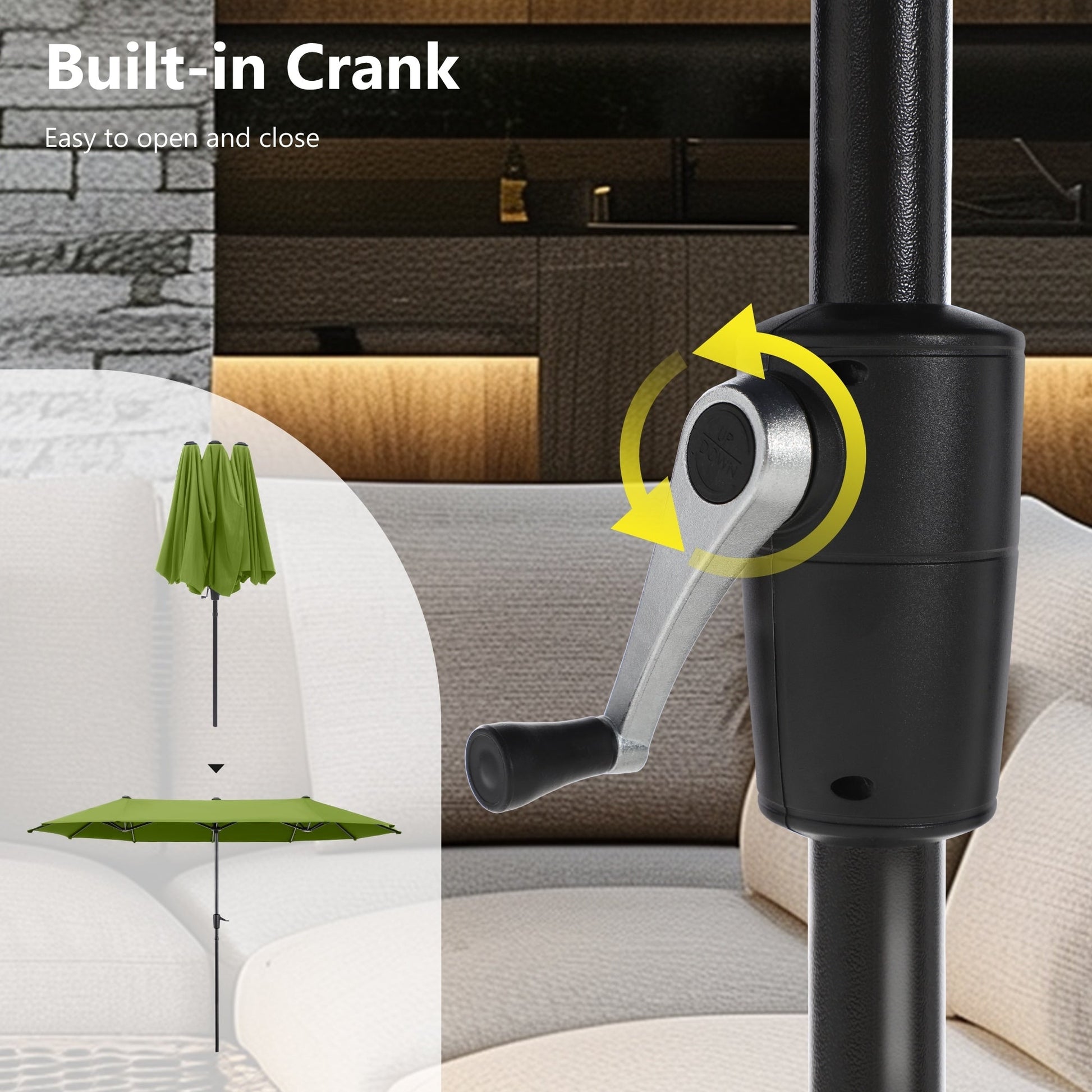- Smooth-turning crank lift system for easy opening and closing