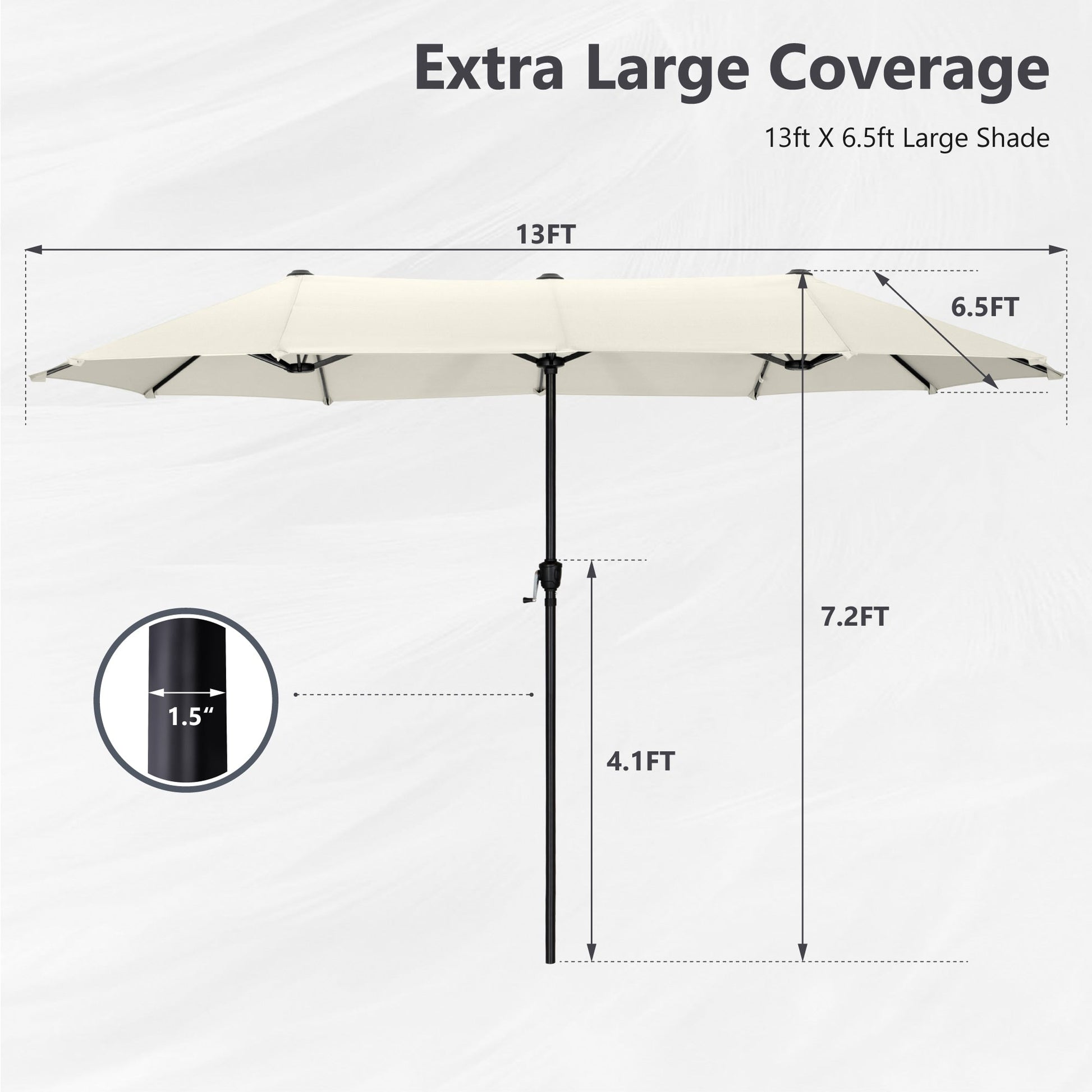 - Extra-large shade area of 13ft x 6.5ft, perfect for residential or commercial use