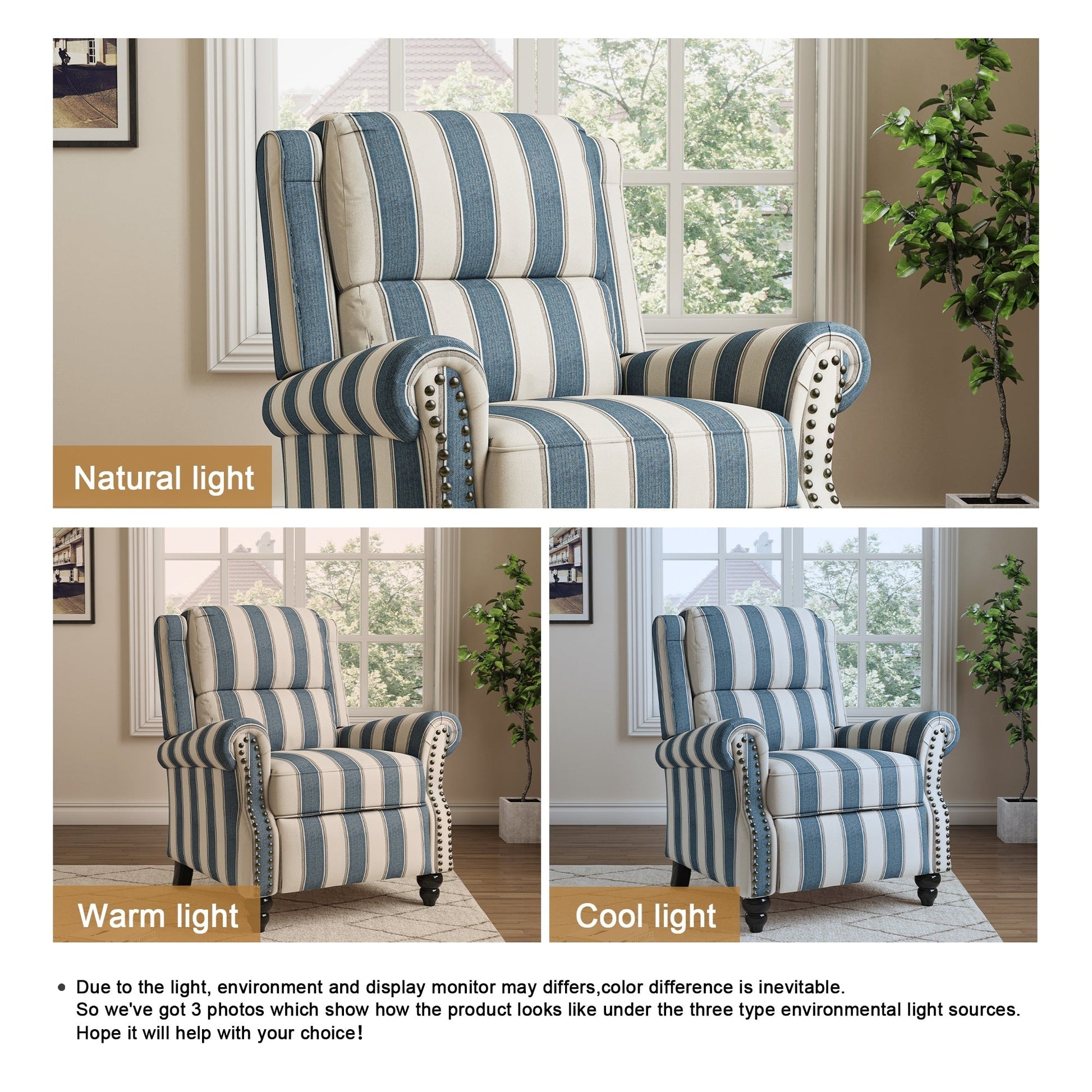 Sublimez votre espace détente avec ce fauteuil inclinable élégant et polyvalent, conçu pour allier style et confort. Son mécanisme d'inclinaison fluide, parfaitement contrôlé par le corps et les pieds, vous permet de trouver facilement la position idéale pour une détente totale. Rembourré de mousse haute densité au niveau de l'appuie-tête, des lombaires, du dossier et des accoudoirs, il offre un soutien complet du corps et soulage la pression pendant que vous vous détendez. Que vous regardiez la télévision, lisiez ou fassiez une sieste, ce fauteuil inclinable offre l'équilibre idéal entre confort et style. Deux options haut de gamme sont disponibles : un similicuir lisse pour une finition moderne et facile d'entretien, ou un tissu en lin confortable aux motifs floraux ou rayés, apportant une touche décorative et chaleureuse, idéal pour une esthétique plus dynamique ou traditionnelle. Avec ses finitions cloutées et son large choix de couleurs et de motifs, il s'intègre parfaitement à tout salon, bureau ou étude, faisant de lui à la fois une solution d'assise fonctionnelle et une pièce maîtresse élégante pour votre intérieur.