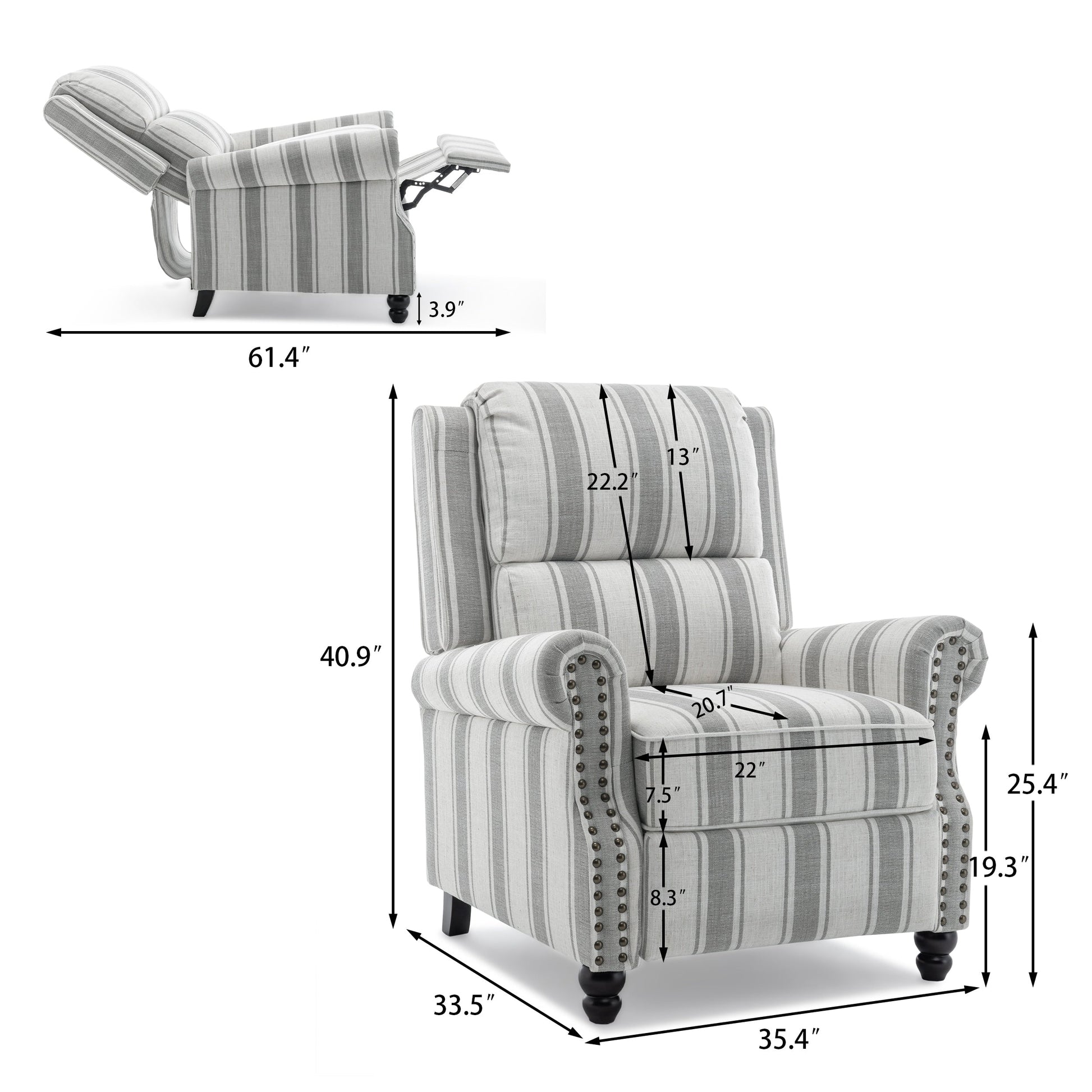 Fauteuils inclinables manuels avec garniture cloutée