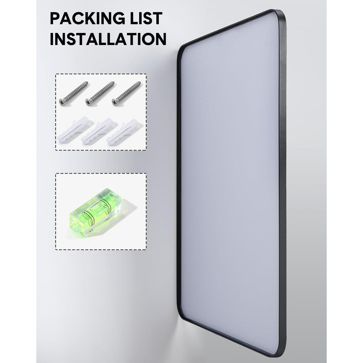 【Quick Installation】Valuing your precious time, our mirrors are engineered for a quick and easy setup. Thanks to the provided hanging strips, you can go from unpacking to admiring your reflection in just 3-5 minutes, embodying the essence of elegance and practicality.