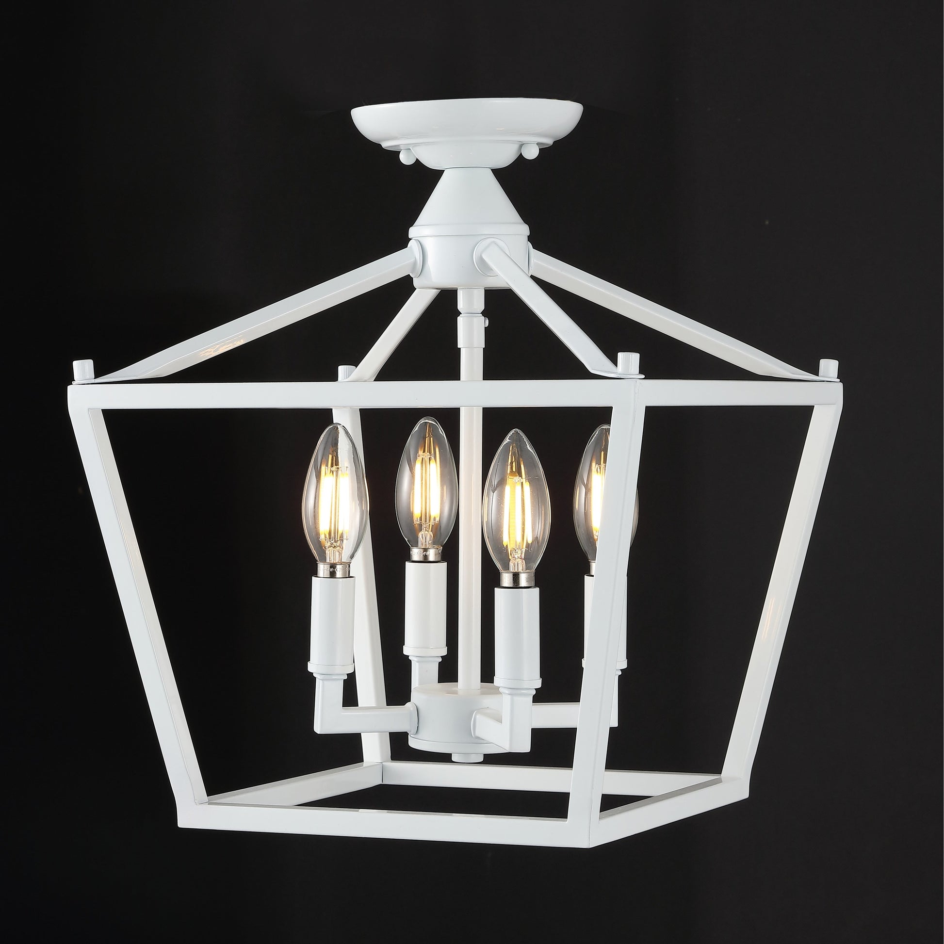 Milton Mini Lantern 4-Light Iron Modern Farmhouse LED Flush Mount, by JONATHAN Y
