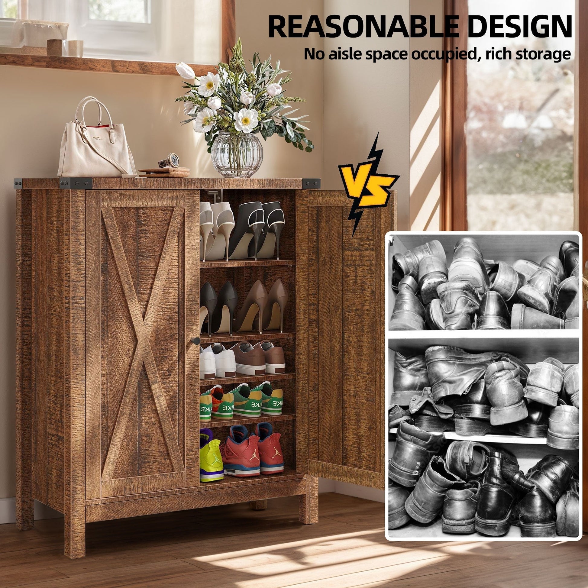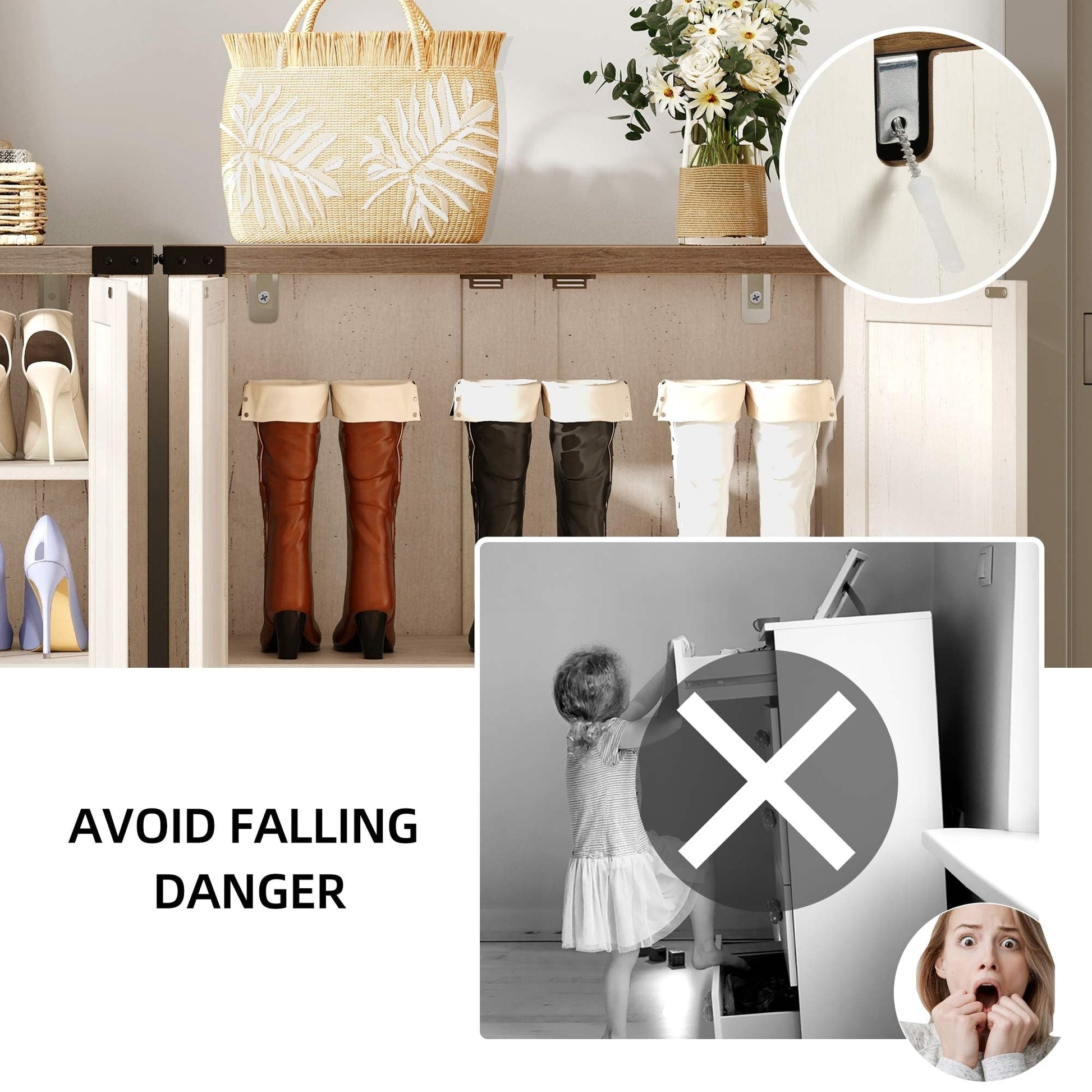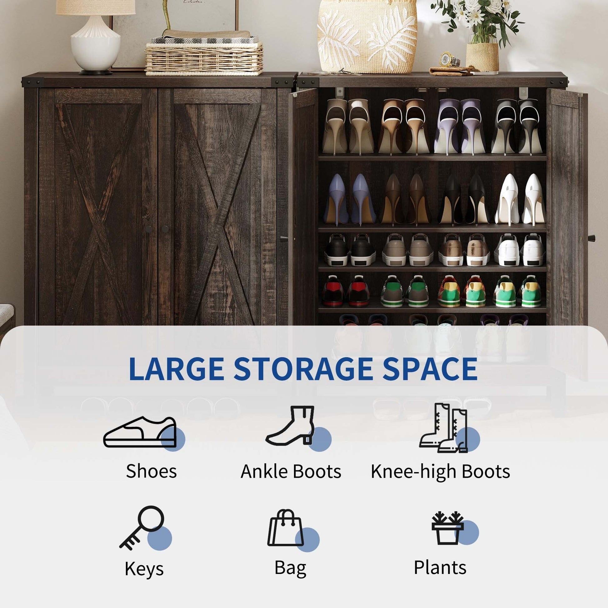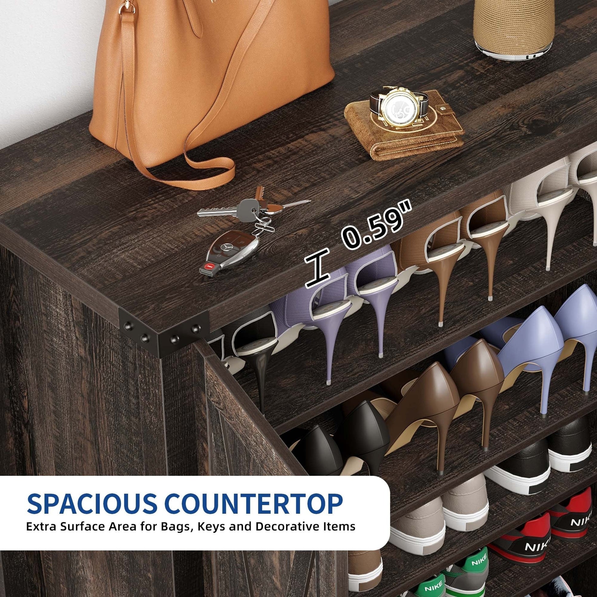 - Grand espace de rangement pouvant accueillir 15 à 20 paires de chaussures et petits objets.