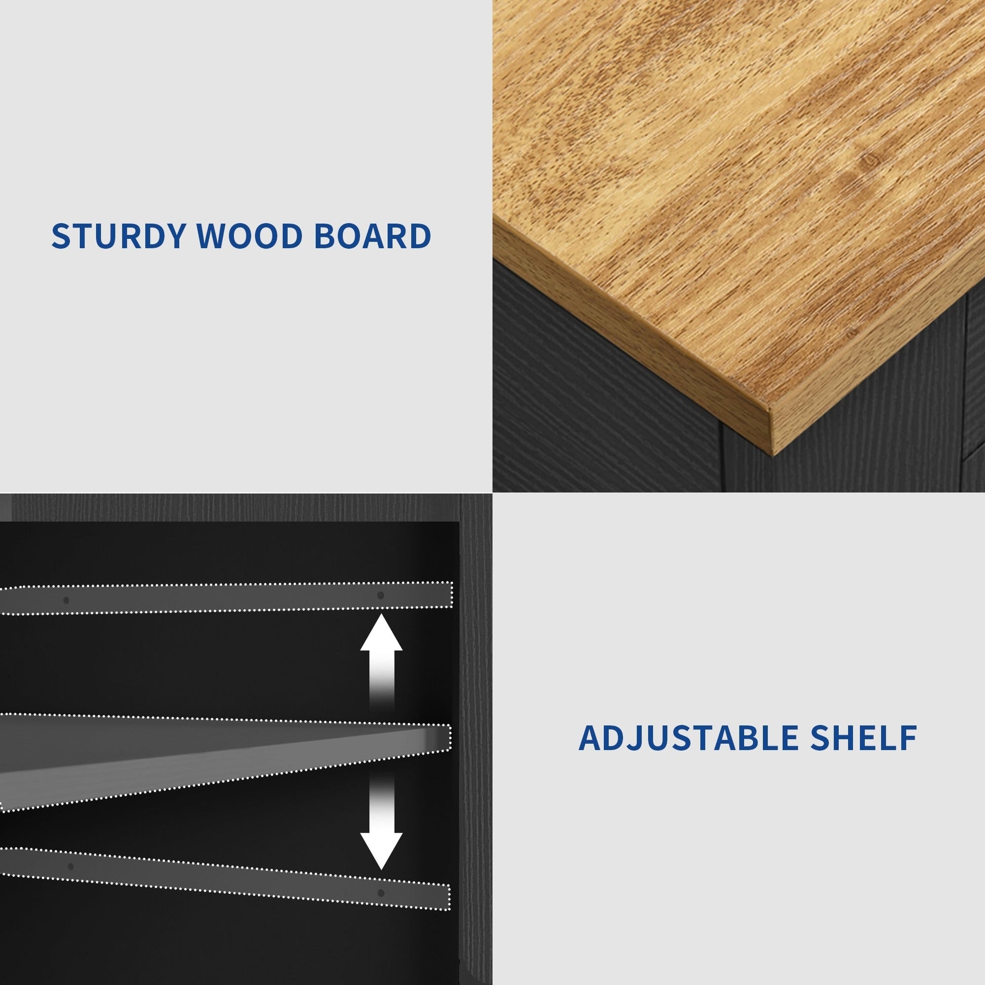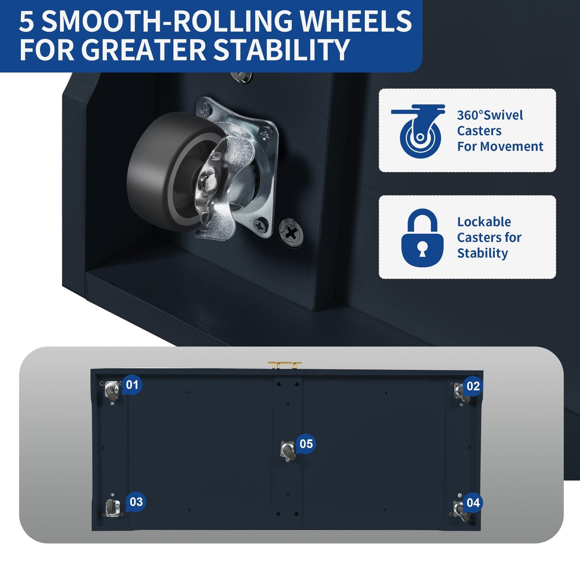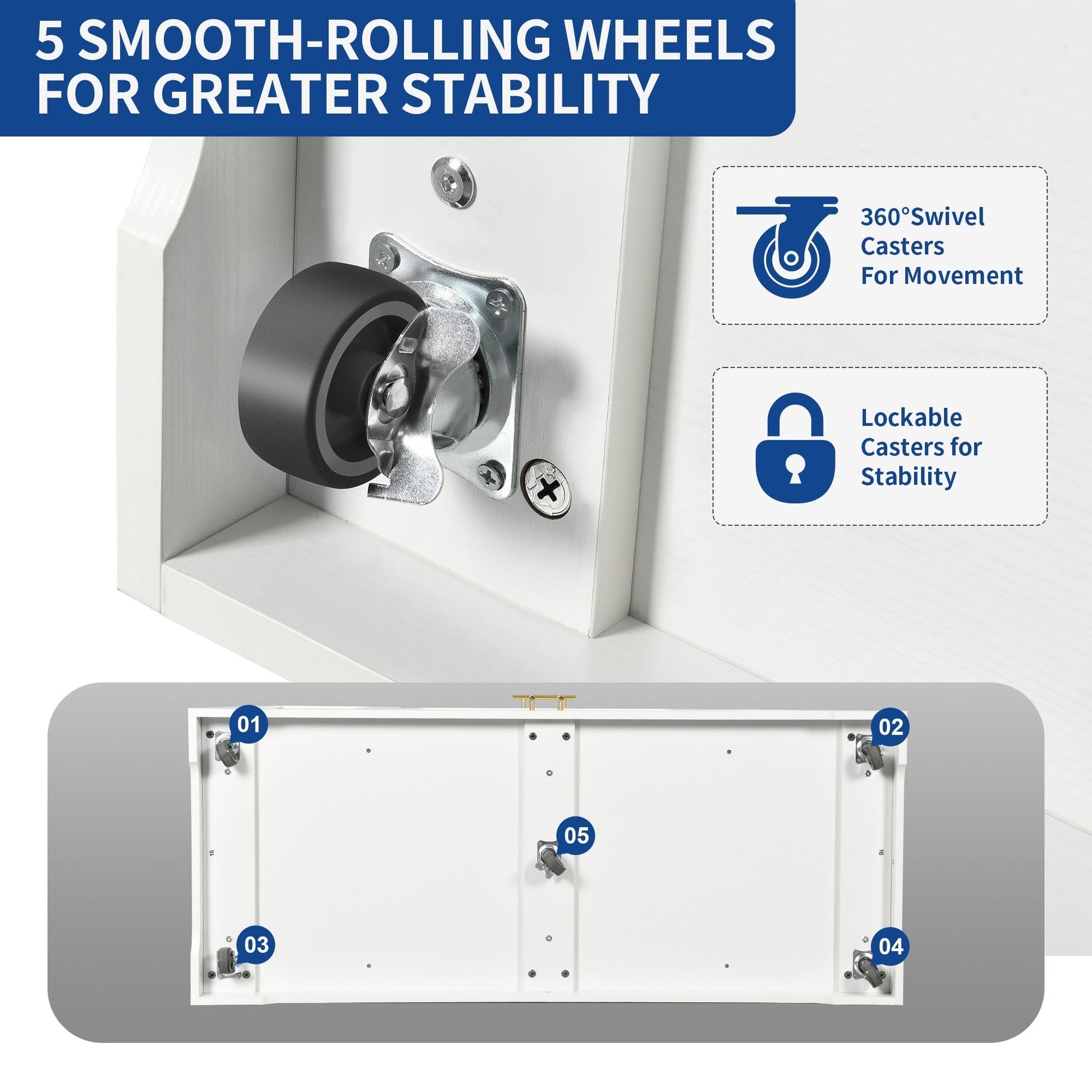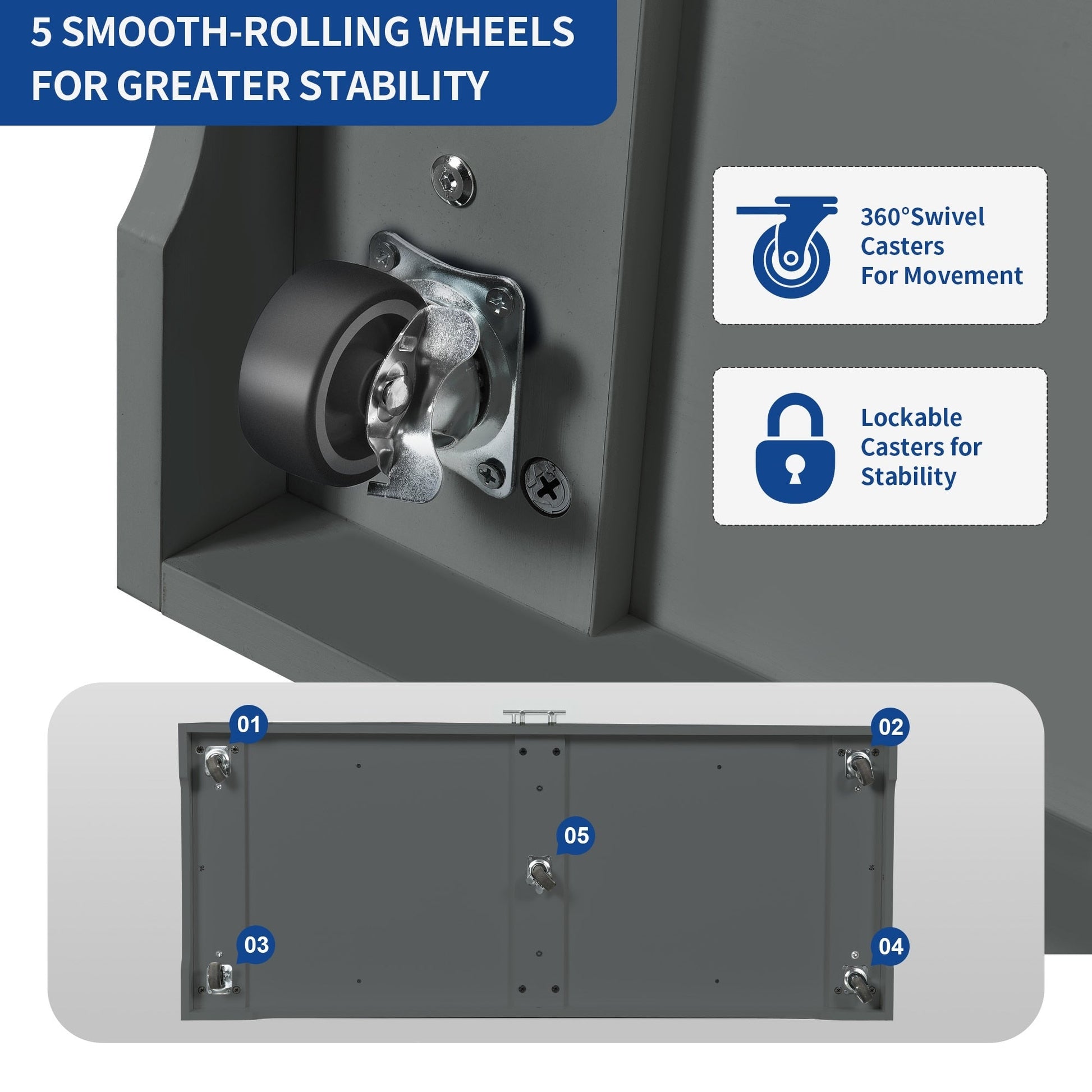 Découvrez notre meuble basculant pour poubelles ! Cet accessoire indispensable à votre îlot central vous permet de garder votre cuisine et votre salle à manger propres et fraîches en rangeant en toute sécurité une poubelle de 40 litres (non incluse) pour éviter les odeurs. Il offre un grand espace de rangement avec deux tiroirs pour les ustensiles, la vaisselle et les fournitures de bureau, ainsi que trois étagères latérales ouvertes pour les épices. L'étagère réglable à l'intérieur du meuble permet de ranger divers ustensiles de cuisine. Ce chariot polyvalent est équipé de roulettes verrouillables pour un déplacement facile et un verrouillage pour la préparation ou le rangement des aliments. Idéal pour les cuisines, les salles à manger et les restaurants, ce meuble est fabriqué en panneaux MDF certifiés CARB phase II. Le montage est simple et les instructions sont claires.