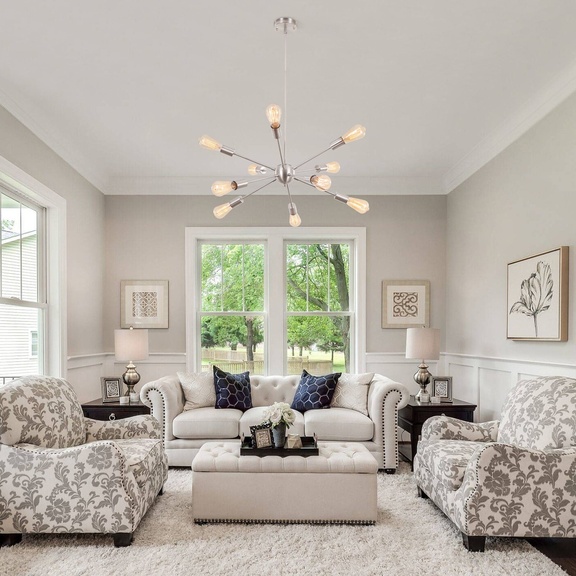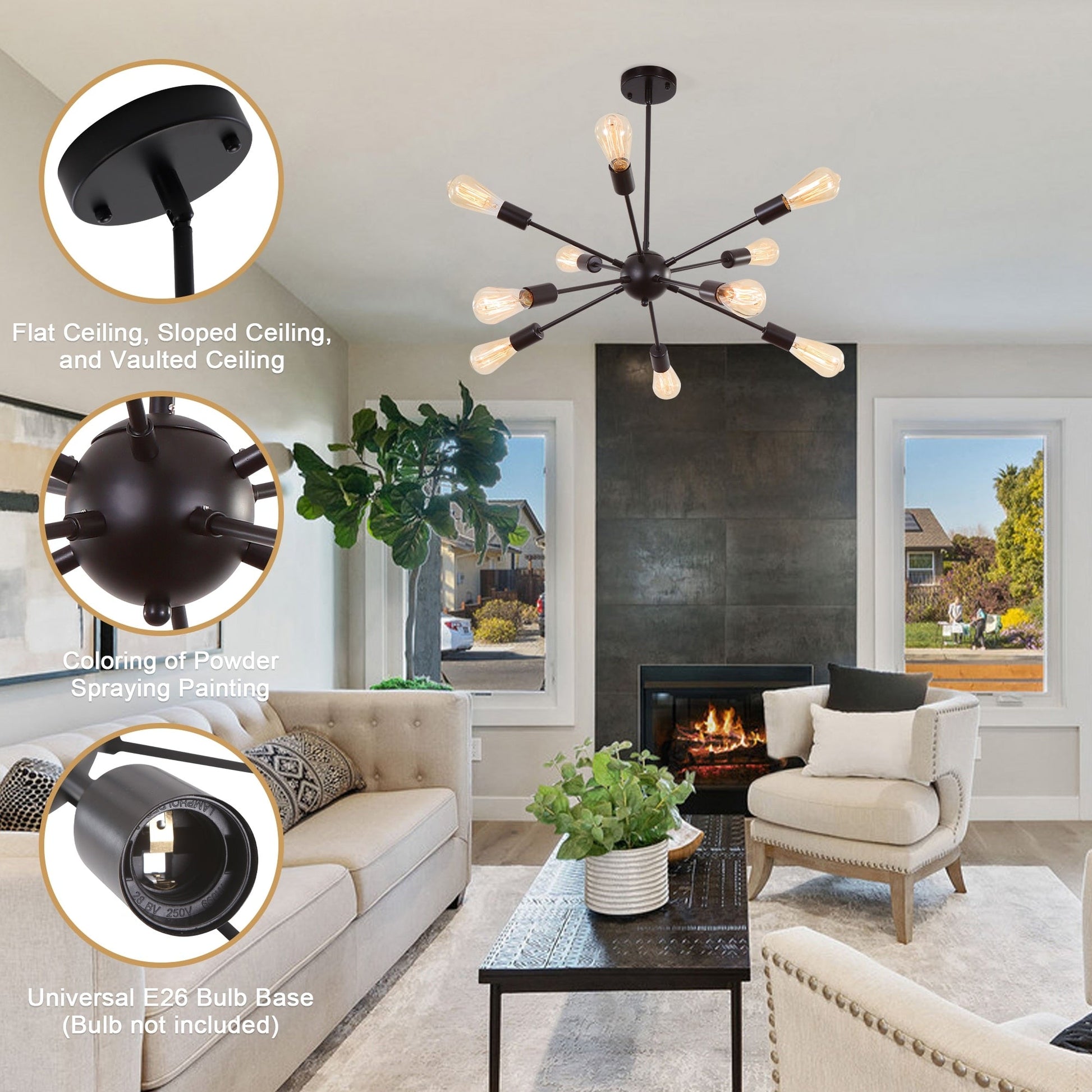 - 💡 Bulb Requirement & Dimmable: This sputnik light requires 10 x standard E26 bulbs. It is compatible with LED, CFL, Halogen and Fully dimmable with a compatible dimmer switch and bulbs to create an atmosphere that makes you comfortable. (Dimmer switch and bulbs are not included)
