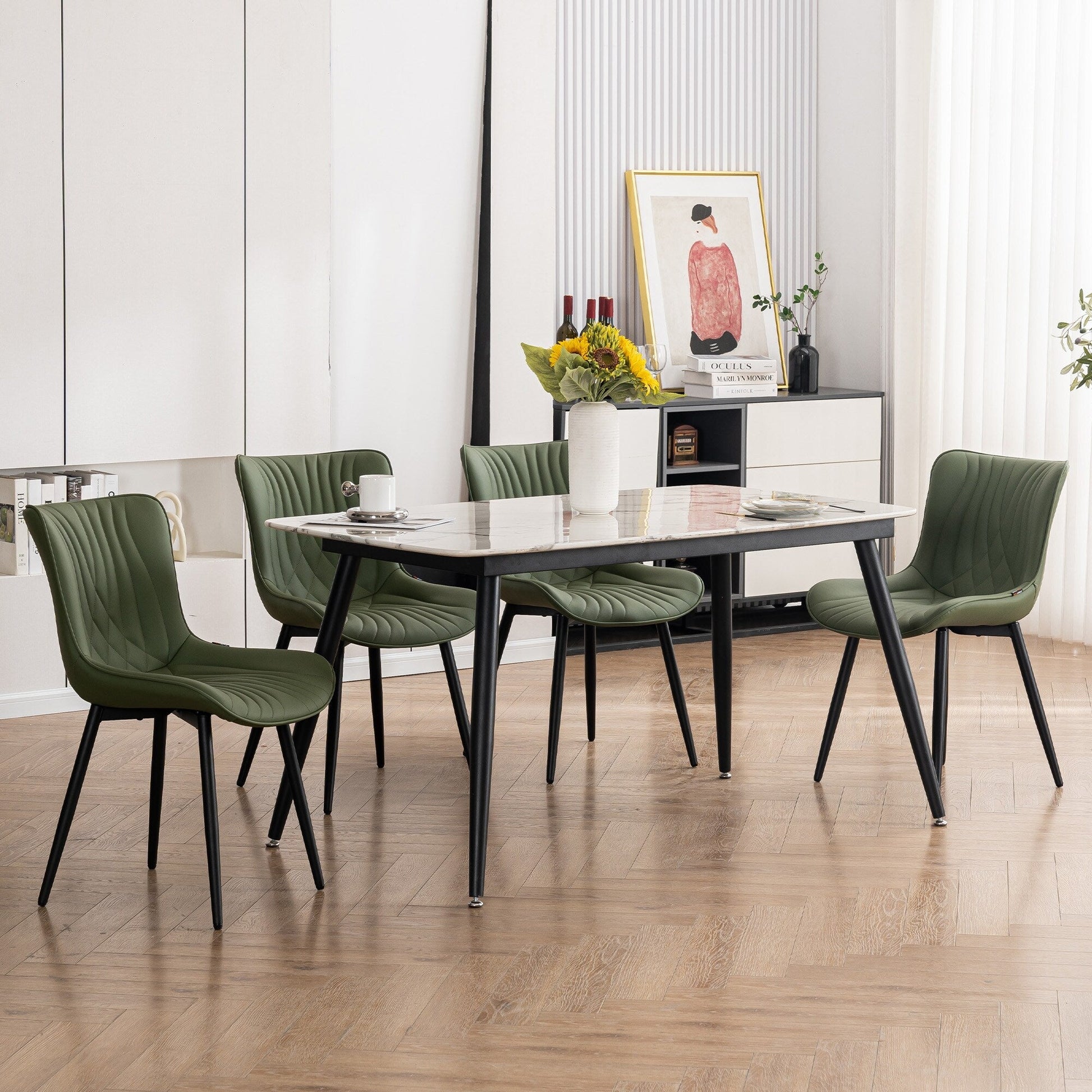 💞 Embellissez votre salle à manger avec un ensemble de chaises qui non seulement dynamisent votre décoration, mais épousent également les courbes de votre corps pour un confort accru. Avec leur jolie bande en queue de baleine, leurs assises en cuir et leur structure en métal robuste pour une durabilité accrue, ces chaises multi-matériaux accentuent leur style contemporain. Sans accoudoirs, nos chaises sophistiquées se glissent facilement dans les espaces vides de la table pour un gain de place optimal et offrent un équilibre parfait entre style élégant et fonctionnalité. Polyvalentes, ces chaises de cuisine et de salle à manger conviennent à une grande variété d'environnements : salles à manger, cuisines, salons, chambres d'amis, salles d'attente et même maisons de vacances. Elles peuvent servir de fauteuils de lecture confortables, de coussins d'angle confortables, de fauteuils de maquillage, de fauteuils de salon, etc.