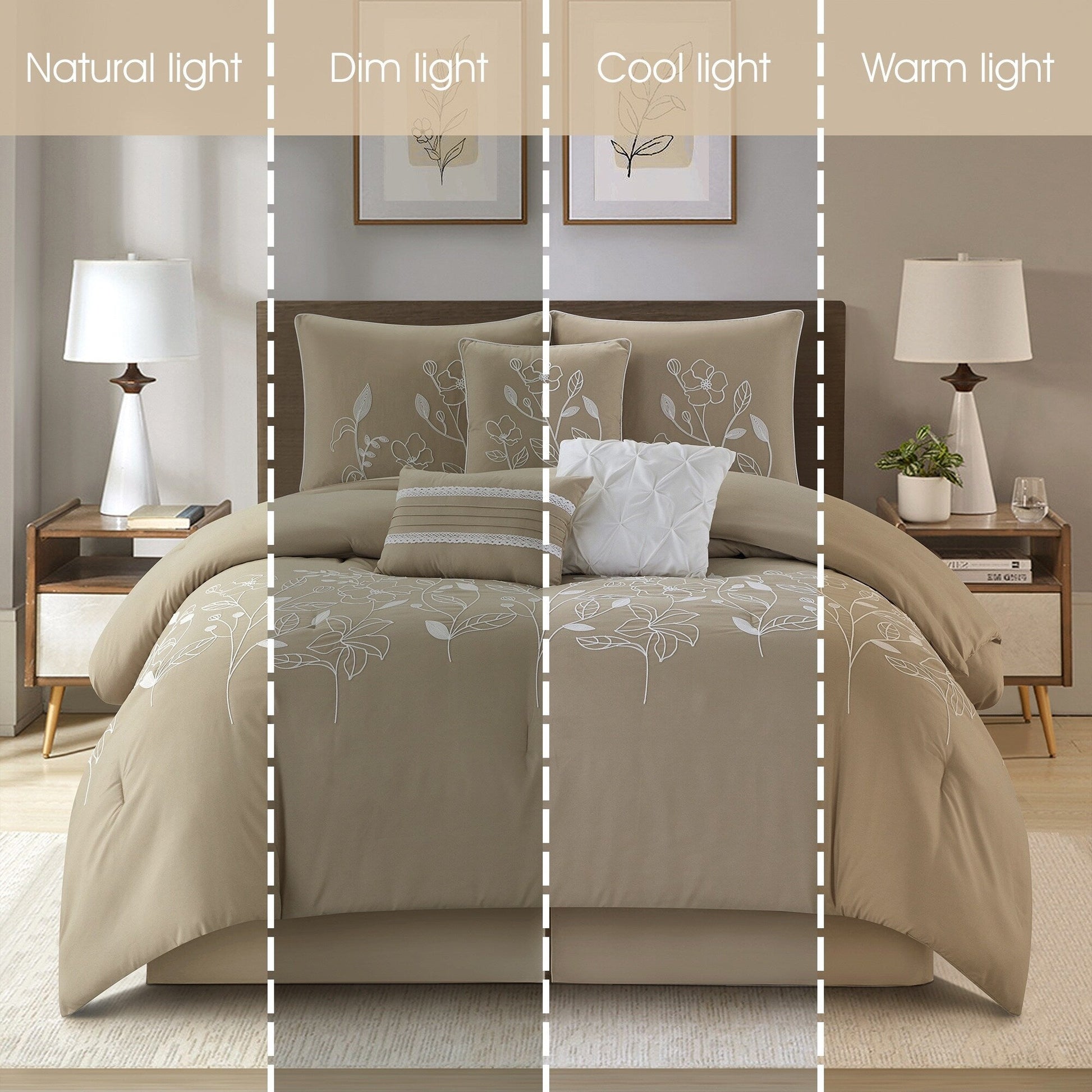 Sublimez votre chambre avec notre ensemble de couette 7 pièces, confectionné avec expertise pour insuffler un style chic et un thème botanique captivant à votre espace. Grâce à une technique de broderie au point de chaînette complexe, cet ensemble met en valeur un superbe motif floral 3D, ajoutant profondeur et sophistication à votre décoration. Polyvalent en toutes saisons, cet ensemble est aussi pratique qu'élégant. Soigneusement confectionné en microfibre brossée, reconnue pour sa respirabilité et sa grande résistance à la traction, cet ensemble assure durabilité et confort tout en offrant une douceur irrésistible.