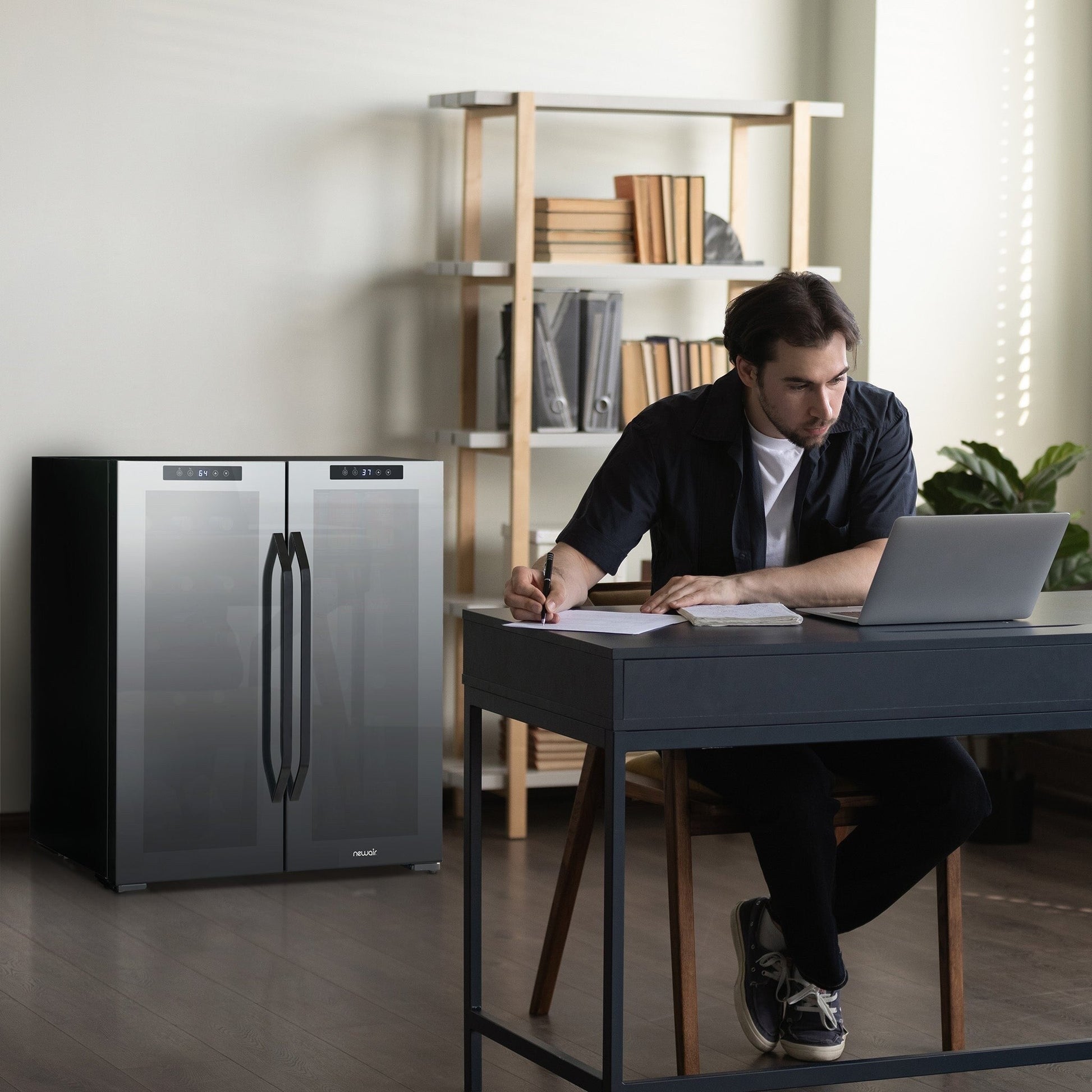 Réfrigérateur à vin et boissons Newair, 18 bouteilles et 59 canettes, deux zones de température, autonome, contrôle numérique de la température