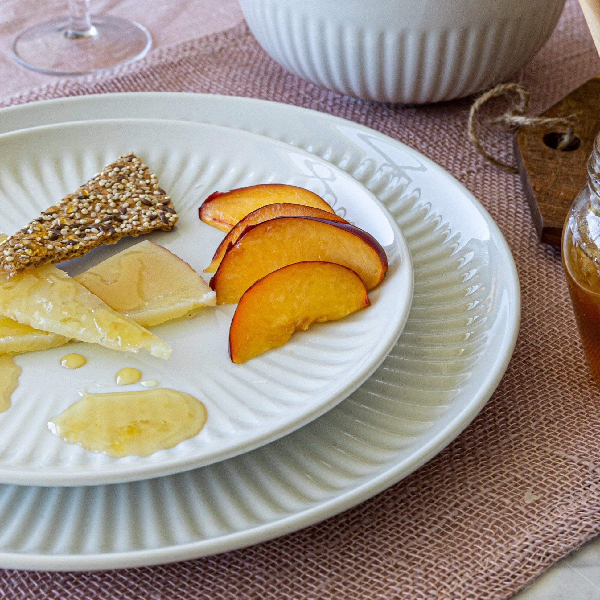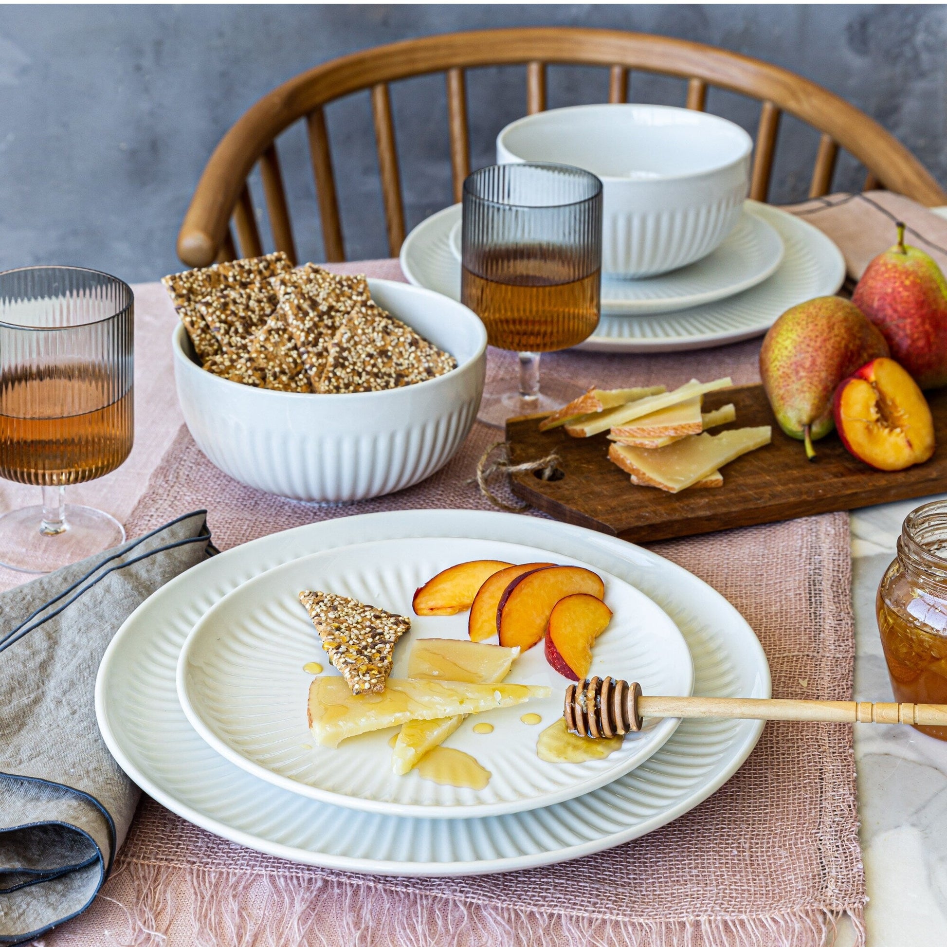 Service de table cannelé en porcelaine blanche Over and Back, 24 pièces