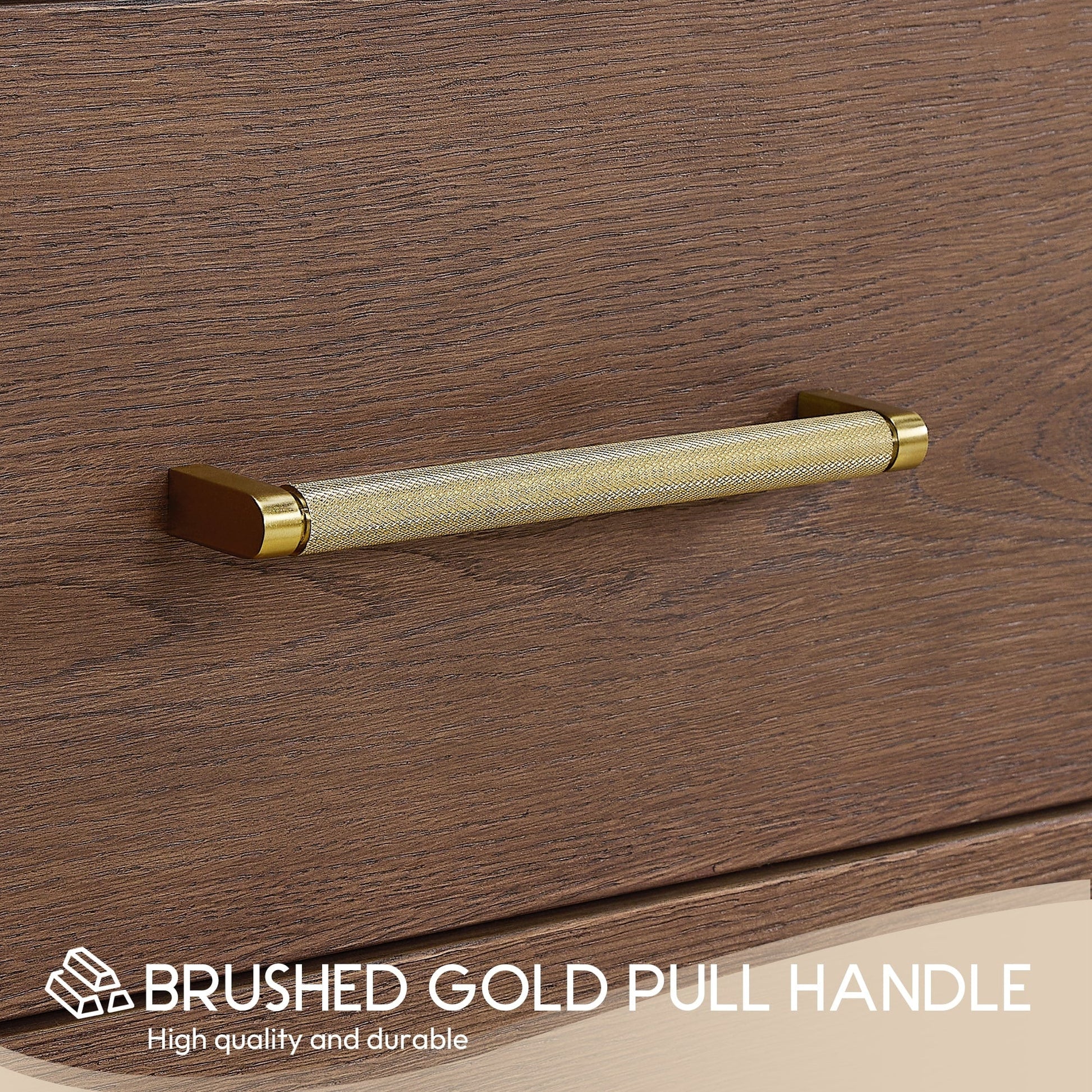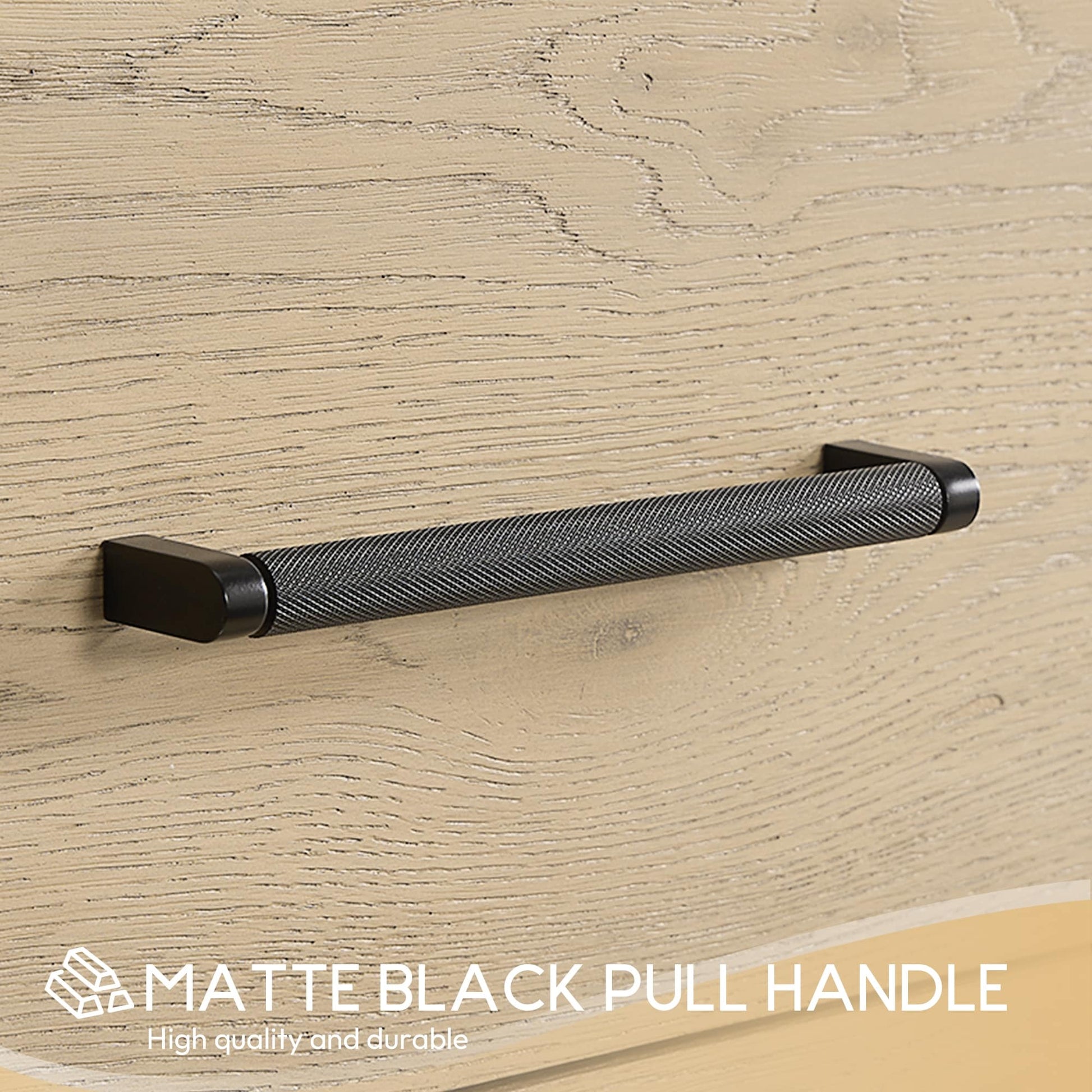Quincaillerie : la finition or brossé ou noir mat apporte une touche de style élégant et de contraste. La poignée moletée en alliage de zinc robuste ajoute une touche de style classique et un contraste époustouflant avec le bois texturé.