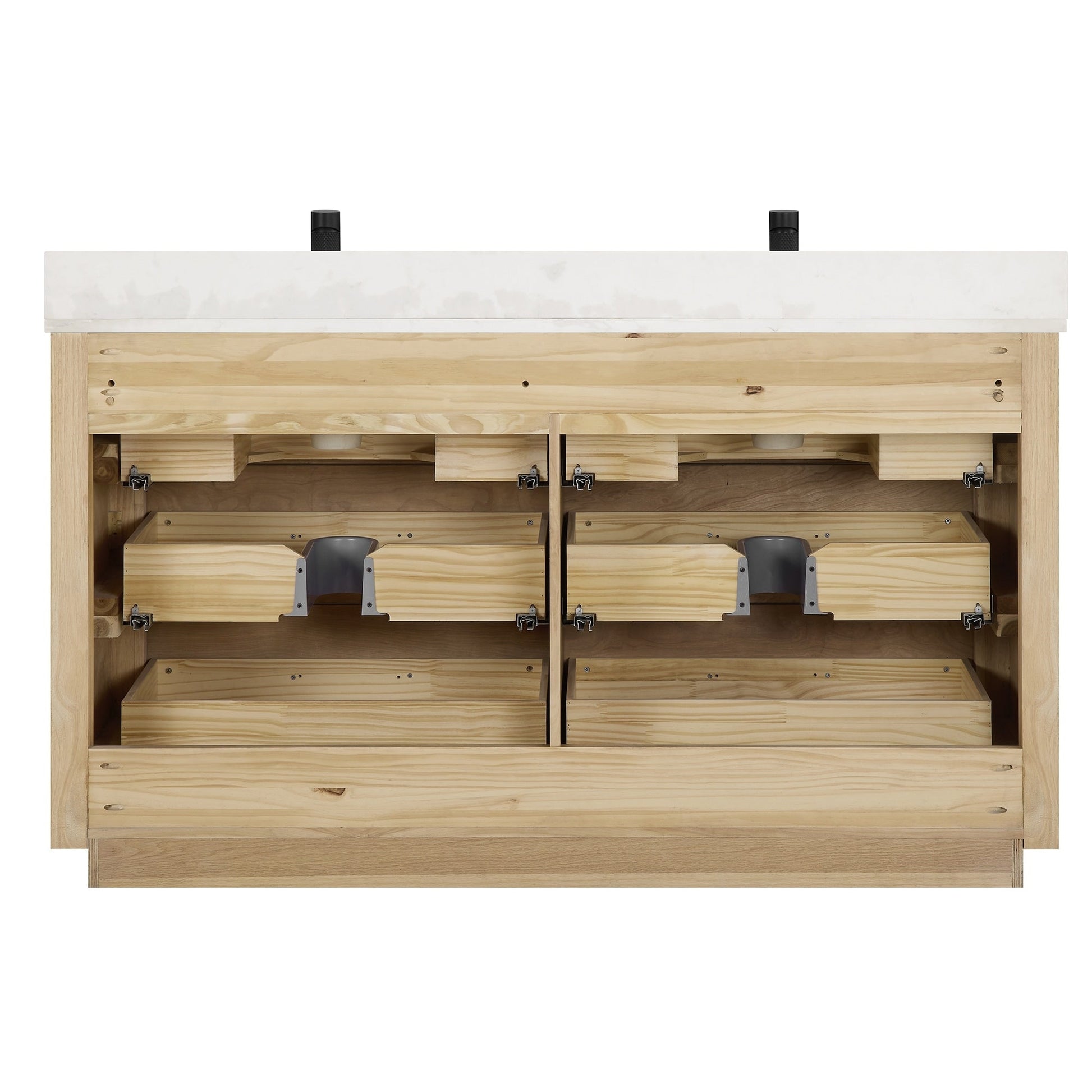 60 pouces - Six tiroirs à queue d'aronde robustes à fermeture douce sont dotés de cloisons intégrées pour un accès facile à tous vos articles de toilette.